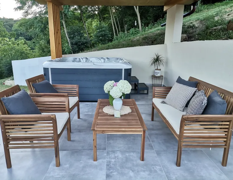 Relax with the whole family at this peaceful place to stay. A house in nature in a peaceful environment and the proximity of Terme Sveti Martin provides complete pleasure and rest for the soul and body. Relax with beautiful nature, relax in the jacuzzi on the terrace with a beautiful view with the sounds of crickets, birds chirping and frogs croaking. Treat yourself to the vacation you deserve and enjoy the natural beauty of this area and our Villa Magnolia! We look forward to seeing you! Your hosts, Željka and Damir The space Our holiday home consists of a kitchen with a dining room, a living room with a sofa bed, 1 bedroom with a double bed and a bathroom. The house has an exit to the terrace. On the terrace there is a seating set and a jacuzzi that is available all year round and offers a beautiful view of nature and hills. You can also listen to music via Bluetooth. On the ground floor of the house there is another larger terrace with a large table and a summer kitchen. Guest access All the rooms in the house are available.