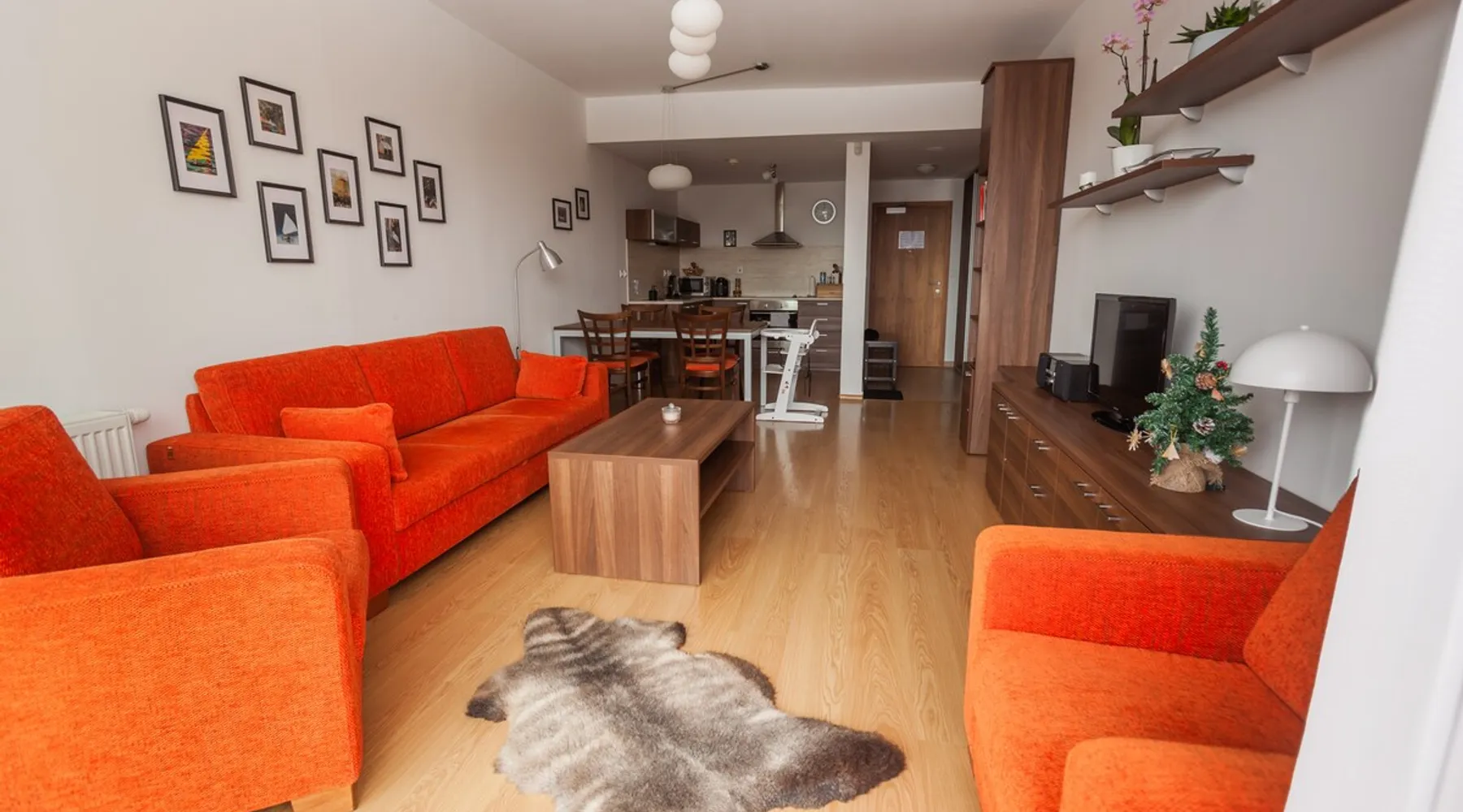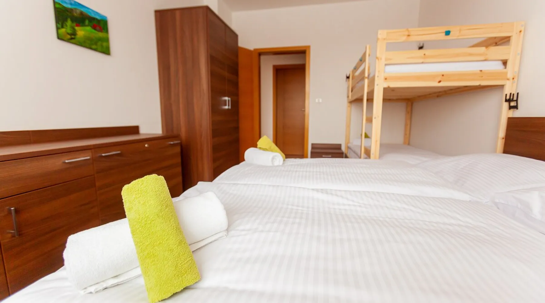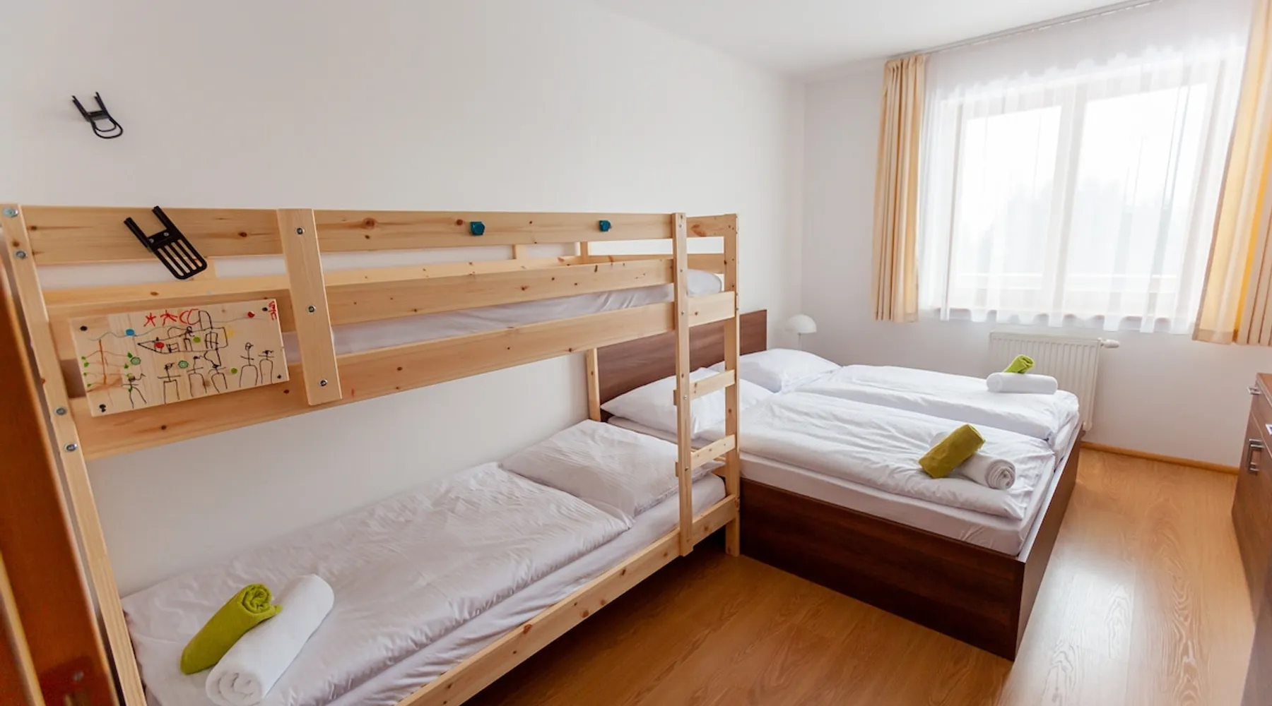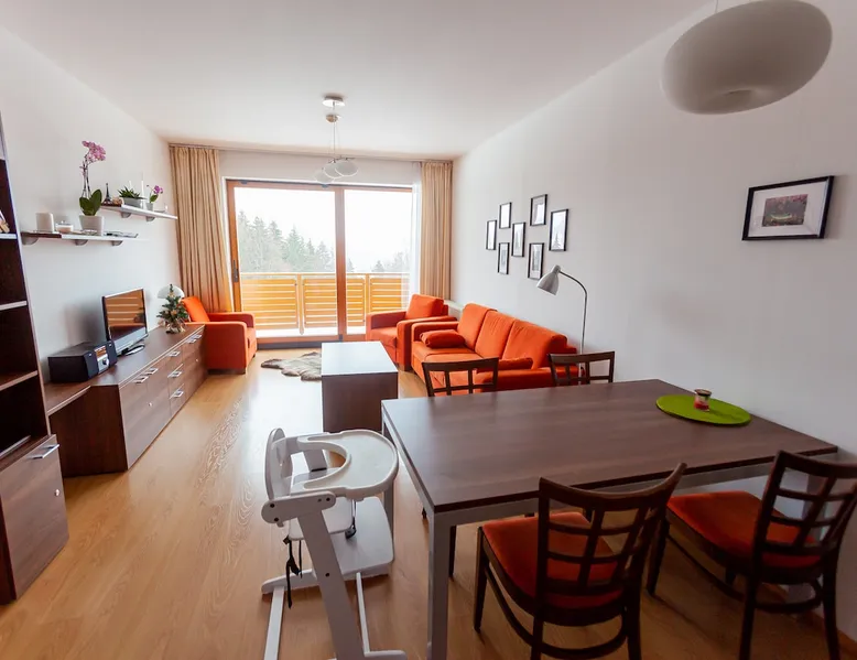 Accommodation in an apartment with beautiful mountain view is part of the Residence hotel, where you can use all services including restaurant, children's corner, playground, minizoo, fitness, wellness and massages. Located just 350m from the ski slope of Záhradište. The apartment has its own ski room and private garage, well-equipped kitchen, bunk bed and toddler bed and chair for the little ones. The apartment also includes a child seat that you can use for free.