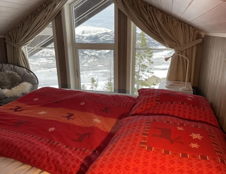 The Fjellspurven (Bergspatz) is 800 m away. In winter you can go directly to the cross-country ski trail and be at the ski lift in about 500 m. In summer time, the 85 square meter all-round veranda offers plenty of time to relax. The area is ideal for hiking, fishing, swimming..... Other things to note With our Norwegian mountain hut, a dream come true for us as a family. We fell in love with the small village of Vrådal in 2017. In 2021, our Fjellspurven (Norwegian for mountain sparrow) was completed in 2021. The cabin is located at about 800 m in a cul-de-sac with beautiful views of Lake Nissersee, Vravatn and the small village of Vrådal. Behind the wooden house is the cross-country ski trail and about 500 m away is the ski lift, which can be reached directly from the cottage in good snow conditions. Ground floor: The cabin has underfloor heating. In the living area with open kitchen and oven, there is 1 bedroom with a 1.80 m wide box spring bed. From the bedroom and the living area, a door leads to the 85 sqm terrace around the cabin. From here you can admire the great sunsets and ascents. You can always find a place in the sun/ in the shade. The bathroom with shower and vanity is adjacent to the 4-person sauna with a door. A large kitchenette with extensive equipment is at your disposal : fridge/freezer combination, induction hob, dishwasher, oven, hand blender, hand blender. Top floor: Upstairs are two bedrooms. In a bedroom with panoramic views of the valley of Lake Nissers and Lake Vråvatn, there are also two box spring beds 0.90 m x 2.00 m, which can be provided as desired, together as a double bed or individually . In the 2nd bedroom, two box spring beds 0.80 m x 2.00 m can also be adjusted as desired. Both bedrooms connect a small hallway, where there is also a small guest toilet. Directly adjacent to the cottage is a spacious storage room where there is a vacuum cleaner, microwave and a washing machine. In addition, there is wood for the furnace. One sled, 2 snow slippers and 2 pairs of snowshoes are welcome to be used. Free, fast WiFi , SATELLITE TV, Sonos box, electricity and the wood for the stove are included in the final price. Other: Well behaved dogs are welcome! Surroundings: In winter, Vrådal offers 8 lifts and 18 slopes in a snow-safe winter sports paradise. From mid-November to early April, the runs are passable. There is something here for winter sports enthusiasts of every level. Whether downhill, tobogganing or longboarding, the ski resort offers everything in a very charming setting. Cross-country skiing enthusiasts can look forward to 40 kilometers of well-developed trails. Ski school, snow park and horse sleigh…. There is something for everyone. In summer, the wonderful nature in Vradal invites you to experiences in the mountains, in the forest or at the nearby lake Nisser. The children can let off steam on playgrounds and ski runways, fishing enthusiasts also enjoy themselves. In the village of Vradal directly there is a supermarket where you can buy all provisions. But there are also plenty of experiences, for example, a trip with the historic steamer M/S Fram on the Nisser and a golf course. Vradal also convinces with its convenient location not far from many other exciting places in southern and eastern Norway, so it is an ideal starting point for excursions to natural and cultural sights in the surrounding area.