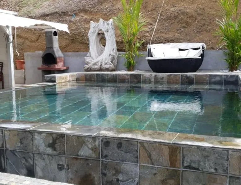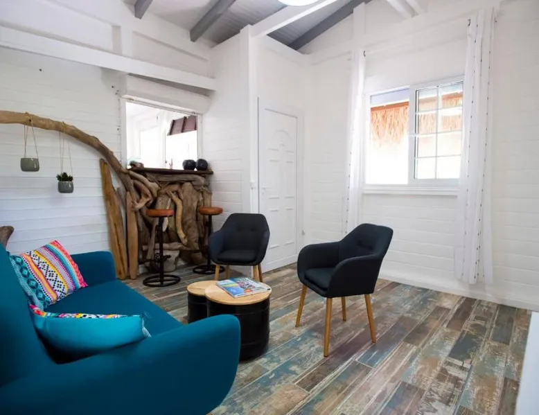 Elegant Accommodations: Micha BAYALOCATION in Le François offers a comfortable apartment with two bedrooms and a living room. Guests enjoy a sun terrace, garden, bar, and a year-round outdoor swimming pool. Free WiFi is available throughout the property. Modern Amenities: The apartment features air-conditioning, a fully equipped kitchen, and a dining area. Additional amenities include a terrace with garden views, a pool with a view, and a mini-bar. Free on-site private parking is provided. Convenient Location: Located 8.1 mi from Martinique Aime Cesaire International Airport, the property is surrounded by boating opportunities. A paid airport shuttle service and car hire are available. The reception staff speak English and French. This bungalow's standout feature is the pool with a view. Boasting a private entrance, this air-conditioned bungalow includes 1 living room, 2 separate bedrooms and 1 bathroom with a walk-in shower. In the kitchen, guests will find a stovetop, a refrigerator, kitchenware and an oven. Featuring a terrace with garden views, this bungalow also offers soundproof walls and a flat-screen TV with satellite channels. The unit has 2 beds.