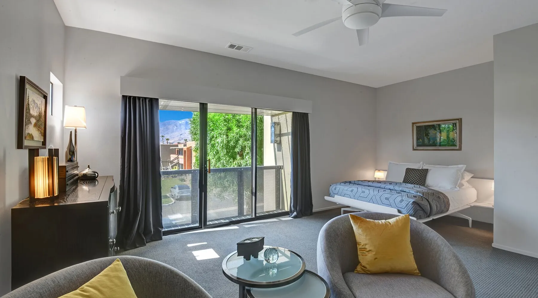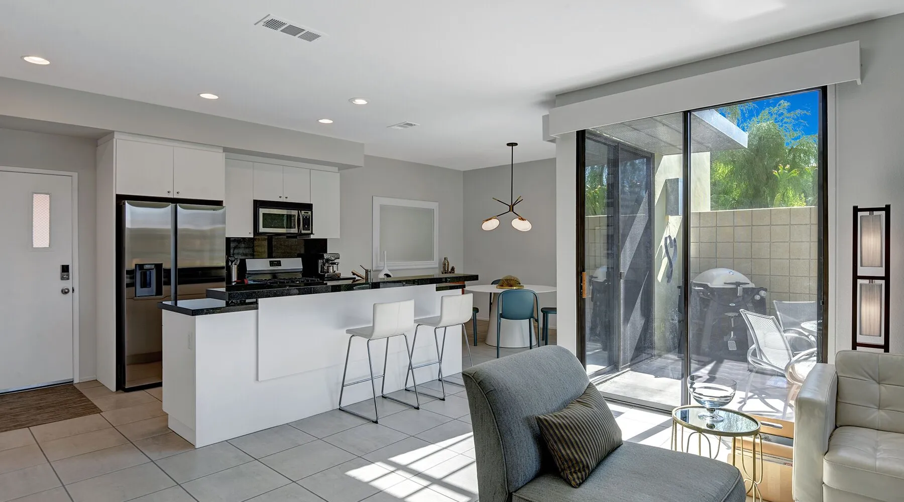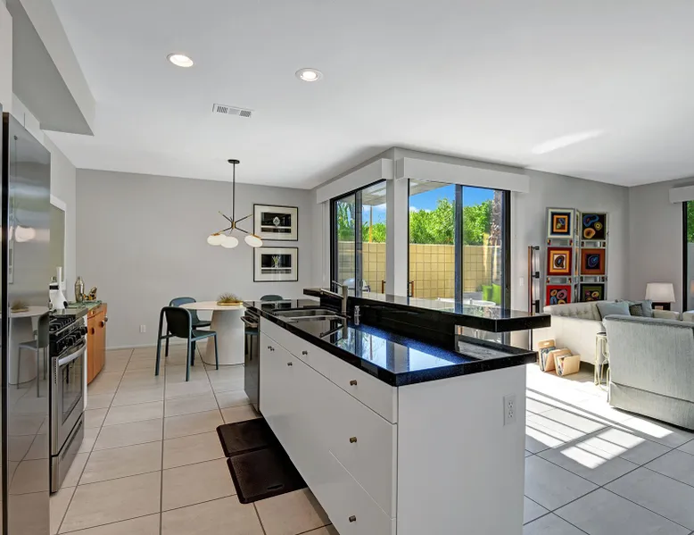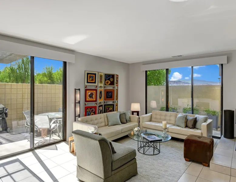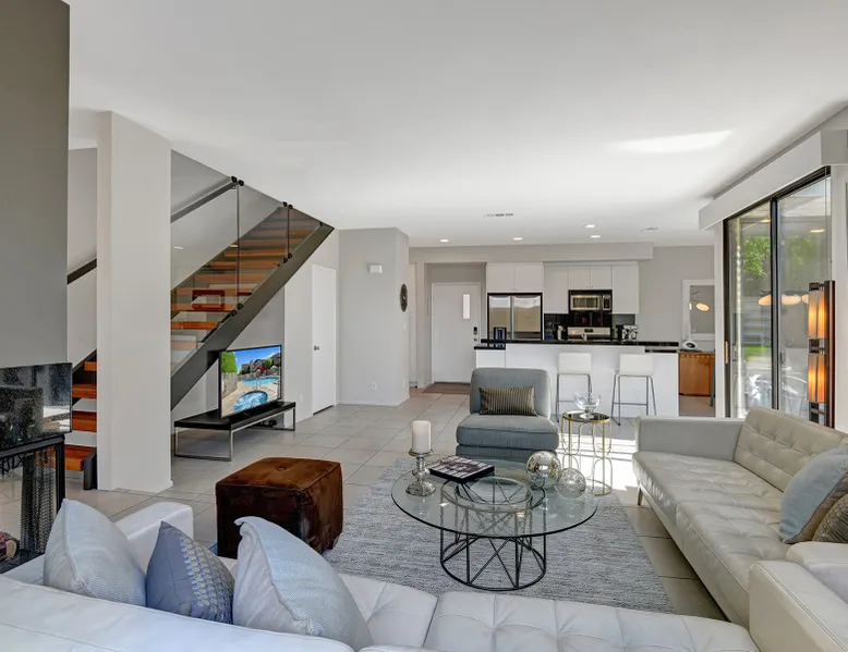 This 2 bedroom, 2.5 bath townhouse is in the heart of downtown Palm Springs! 48@ Arenas is the perfect respite in the rear of a quiet complex. Mountain views from the main level and primary bedroom put nature into perspective. We are close to terrific hiking trails w/ amazing views of the valley all the while within blocks of restaurants/bars, cafes, spas, a casino, a world class museum, live entertainment, movies & shops. This is also our home away from home. We have been happy to share our Palm Springs retreat with family and friends over many years. Ours is not a corporate run curated property. We do not subscribe to professional linen services and pay for someone to match the art work with the couch! We shop at Macy’s for Hotel Collection and Charter Club sheets and towels. Our furniture has been collected from Crate and Barrel, Room & Board, IKEA, Natuzzi, Brown and Jordan, and Tropitone. Our art reflects who we are and the life experiences we have been fortunate to have. A couple of pieces are by an award winning painter, my father, Norman Wesley. By choosing to stay with us you choose to accept and respect our home for what it is. Palm Springs is our home and a community that we love. It is our privilege to share our personal space with others who we hope will love Palm Springs as much as we do! Form and function abound in the contemporary furnishings throughout this condo. The kitchen is fully supplied for the chef, baker & cocktail maker. The full sized laundry is tucked away next to the kitchen. Upstairs, each of the spacious bedroom suites are welcoming retreats with rich linens, plush towels, and from the primary suite views of the Santa Rosa mountains! The primary suite has a large walk-in shower. The guest suite has a shower over tub, functions as a gym, office, and sleeps 2 on a queen-sized murphy bed. Not to be forgotten, the patio has a Weber BBQ, we provide free WIFI, & expanded cable. Winter season rentals are 2 months minimum in duration. Copy & paste our Matterport Tour: https://my.matterport.com/show/?m=jKhM5UY76FU&brand=0&ts=1