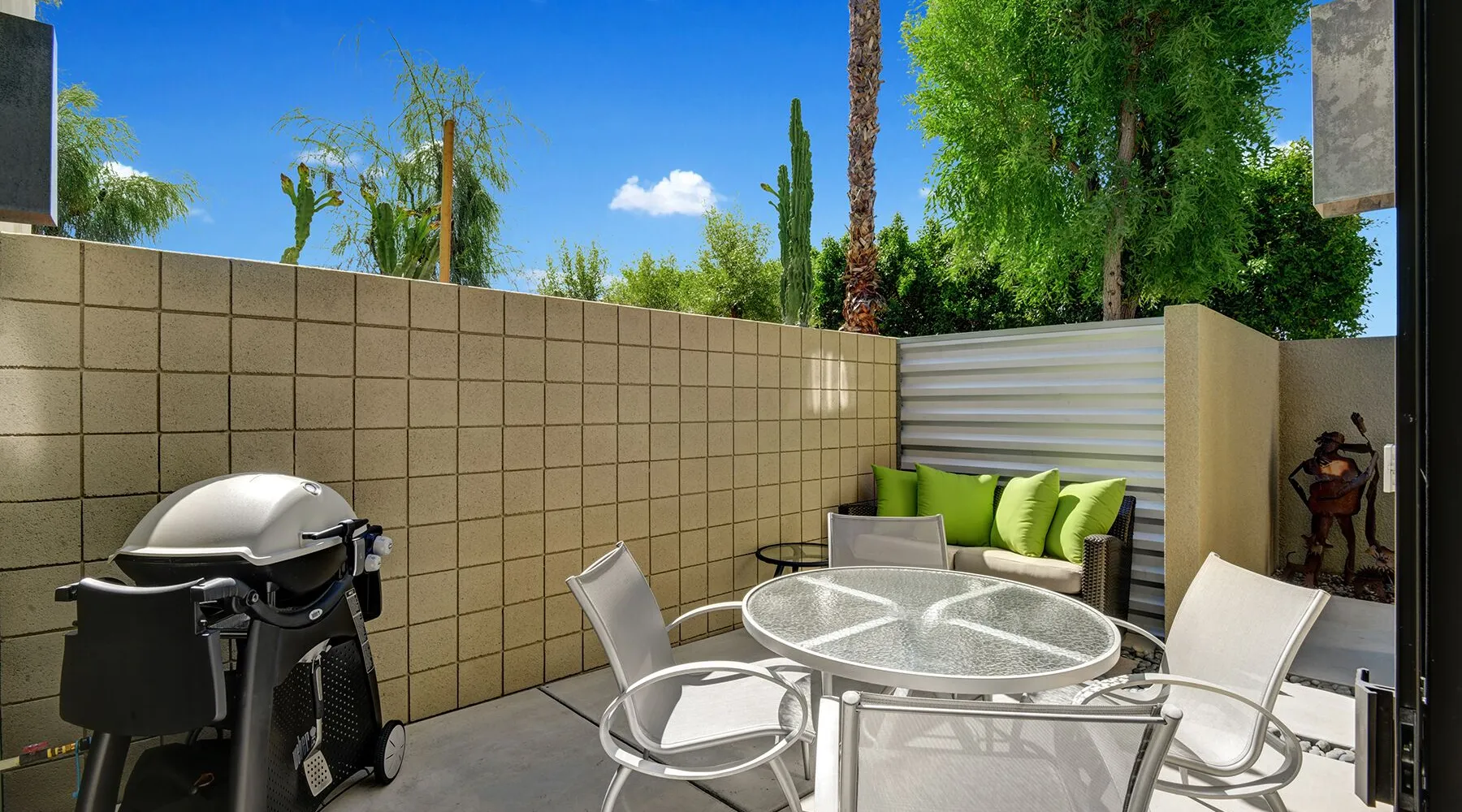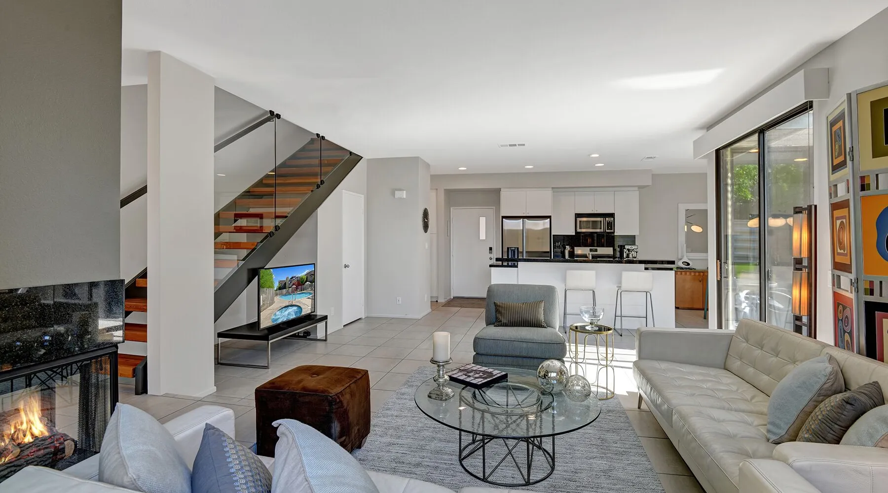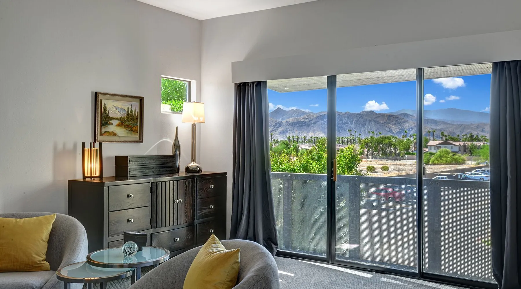 This 2 bedroom, 2.5 bath townhouse is in the heart of downtown Palm Springs! 48@ Arenas is the perfect respite in the rear of a quiet complex. Mountain views from the main level and primary bedroom put nature into perspective. We are close to terrific hiking trails w/ amazing views of the valley all the while within blocks of restaurants/bars, cafes, spas, a casino, a world class museum, live entertainment, movies & shops. This is also our home away from home. We have been happy to share our Palm Springs retreat with family and friends over many years. Ours is not a corporate run curated property. We do not subscribe to professional linen services and pay for someone to match the art work with the couch! We shop at Macy’s for Hotel Collection and Charter Club sheets and towels. Our furniture has been collected from Crate and Barrel, Room & Board, IKEA, Natuzzi, Brown and Jordan, and Tropitone. Our art reflects who we are and the life experiences we have been fortunate to have. A couple of pieces are by an award winning painter, my father, Norman Wesley. By choosing to stay with us you choose to accept and respect our home for what it is. Palm Springs is our home and a community that we love. It is our privilege to share our personal space with others who we hope will love Palm Springs as much as we do! Form and function abound in the contemporary furnishings throughout this condo. The kitchen is fully supplied for the chef, baker & cocktail maker. The full sized laundry is tucked away next to the kitchen. Upstairs, each of the spacious bedroom suites are welcoming retreats with rich linens, plush towels, and from the primary suite views of the Santa Rosa mountains! The primary suite has a large walk-in shower. The guest suite has a shower over tub, functions as a gym, office, and sleeps 2 on a queen-sized murphy bed. Not to be forgotten, the patio has a Weber BBQ, we provide free WIFI, & expanded cable. Winter season rentals are 2 months minimum in duration. Copy & paste our Matterport Tour: https://my.matterport.com/show/?m=jKhM5UY76FU&brand=0&ts=1