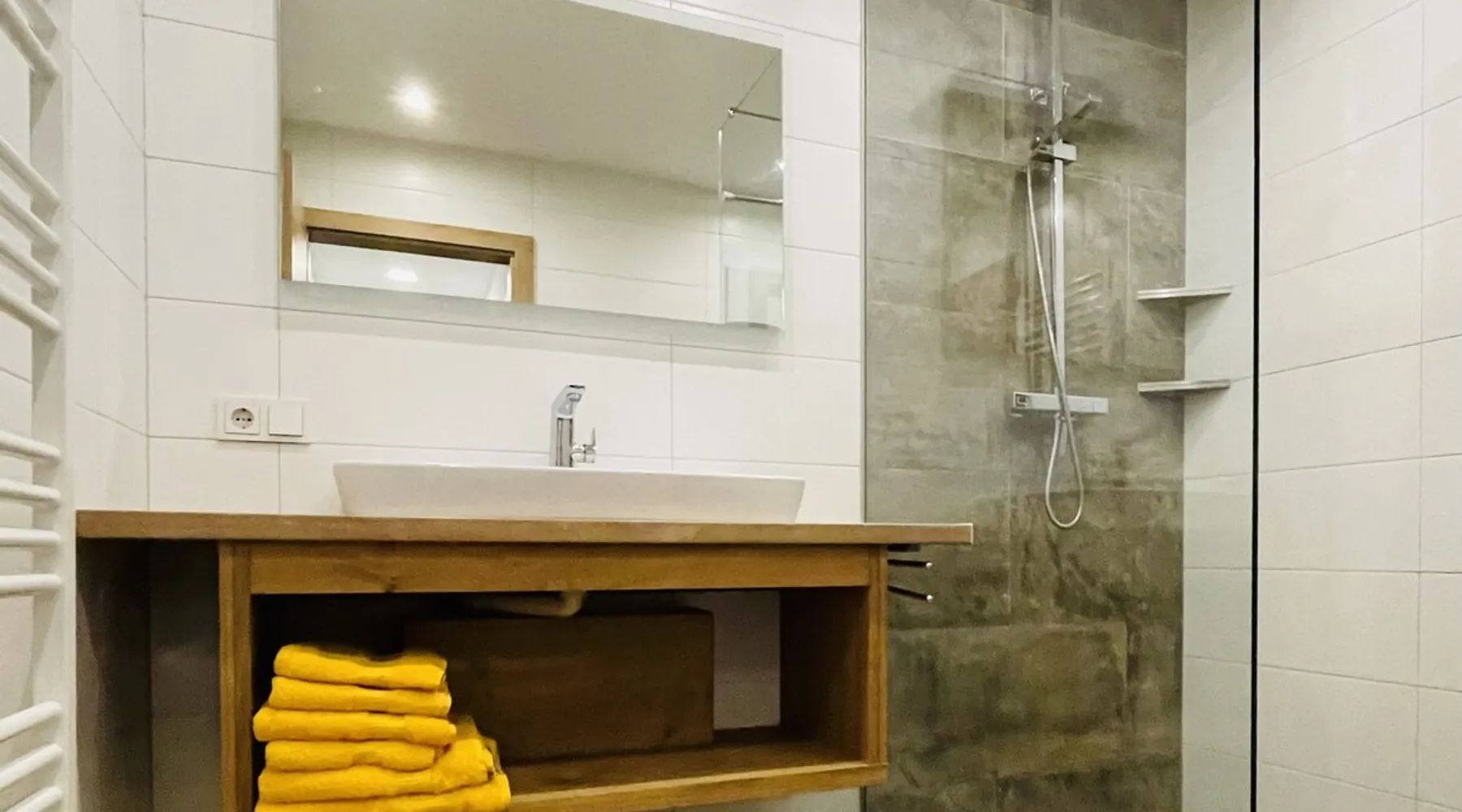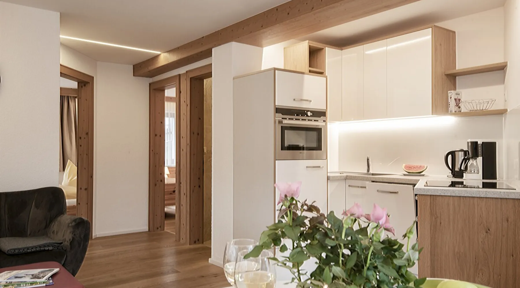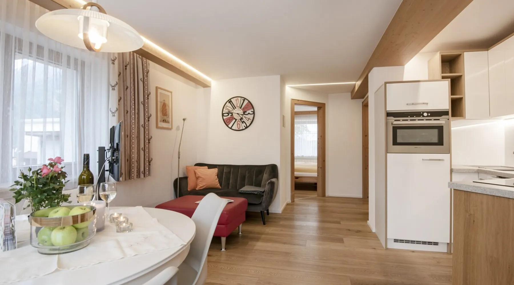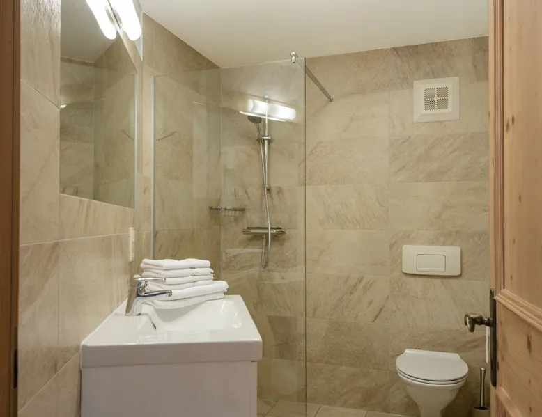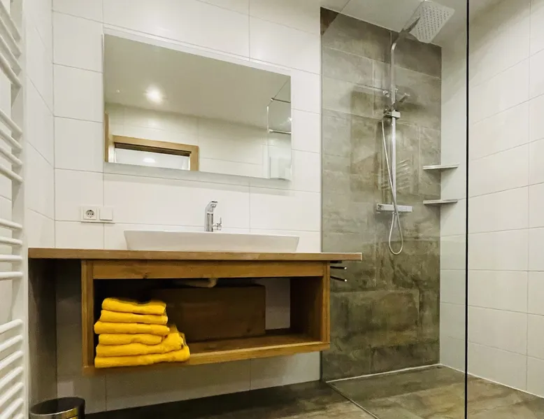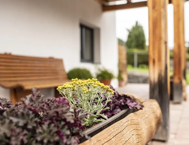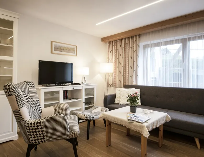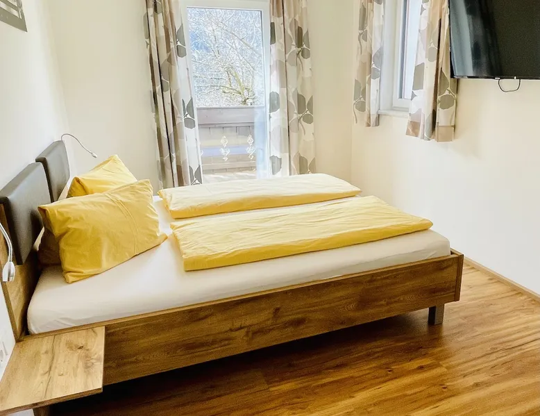 Are you looking for recreation in a unique natural landscape during your vacation? Then you are exactly right with us! We offer lovingly furnished, newly renovated, light-flooded, comfortable apartments for 2 - 5 people with separate bedrooms. Each apartment has a terrace or a large balcony with a wonderful view. More information on our website The space For up to 5 people The apartment offers a modern kitchen (fully equipped with dishwasher, ceramic hob, fridge, coffee maker, complete cooking and dining utensils, etc), a cozy living room with dining area, 2 bedrooms with their own modern bathroom with a glass walk-in shower and an additional guest toilet. In the living area there is another sleeping possibility The large terrace in front of the apartment faces east/south/west and is equipped with terrace furniture -ideal for eating and drinking on the balcony You have a fantastic view of the mountains! Attention: the 2nd bedroom has a separate entrance