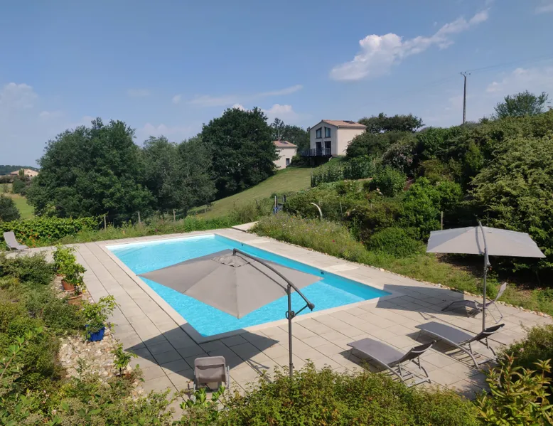 Discover this charming 45 m² cottage, ideal for a relaxing stay. Enjoy a south-facing terrace where you can savor local specialties and admire breathtaking views of the valley. A unique setting: - Design: A perfect blend of modernity and vintage style for a warm and elegant ambiance. - Bright and private: Flooded with natural light and with no overlooking neighbors. - Swimming pool: A large saltwater pool (14 x 6 m) surrounded by paved sun decks with loungers and parasols, accessible without time restrictions (except for our furry friends). The accommodation: - The cottage accommodates up to 4 people, with living space spread across two levels: Upstairs: - A walk-in shower with stunning views of the valley. - A Queen-size bed. On the ground floor: - A fully equipped kitchen with high-quality appliances (oven, microwave, SMEG refrigerator, etc.). - A living area with a convertible sofa (2 places), TV, connected speaker, and DVD player. - A large wardrobe for storage. - On the terrace: Garden furniture (table, chairs, and parasol) for alfresco dining. Amenities available: - Air conditioning, Wi-Fi, connected speaker. - Leisure equipment: ping-pong table, pétanque balls, badminton rackets. - Access to the barbecue and washing machine upon request. Additional options: - Fouta (beach towel): €4. - Electric bike rental: €20 for half a day, €30 for a full day. Other practical information: - Swimming pool: Proper swimwear required (traditional swimsuits). - July/August: Minimum stays of 7 nights, from Saturday to Saturday. Arrangements possible for last-minute bookings. We also offer two other cottages, Fer Servadou and Mauzac. Contact us for more information or to book your stay today!