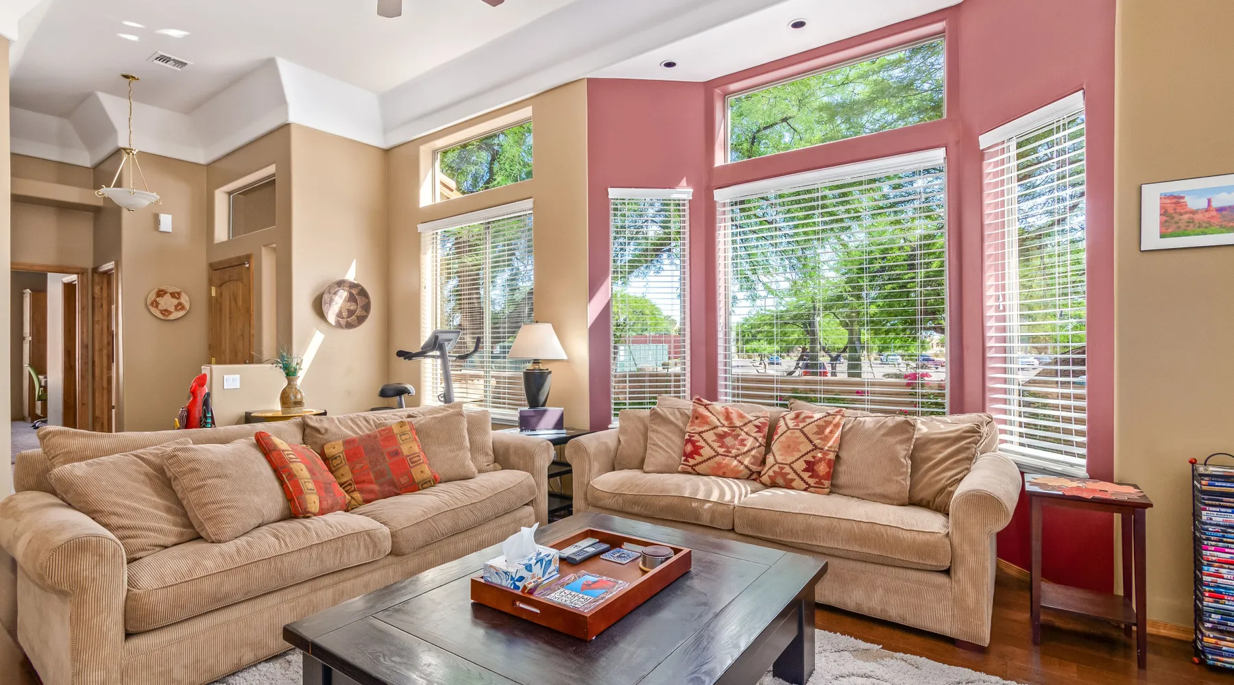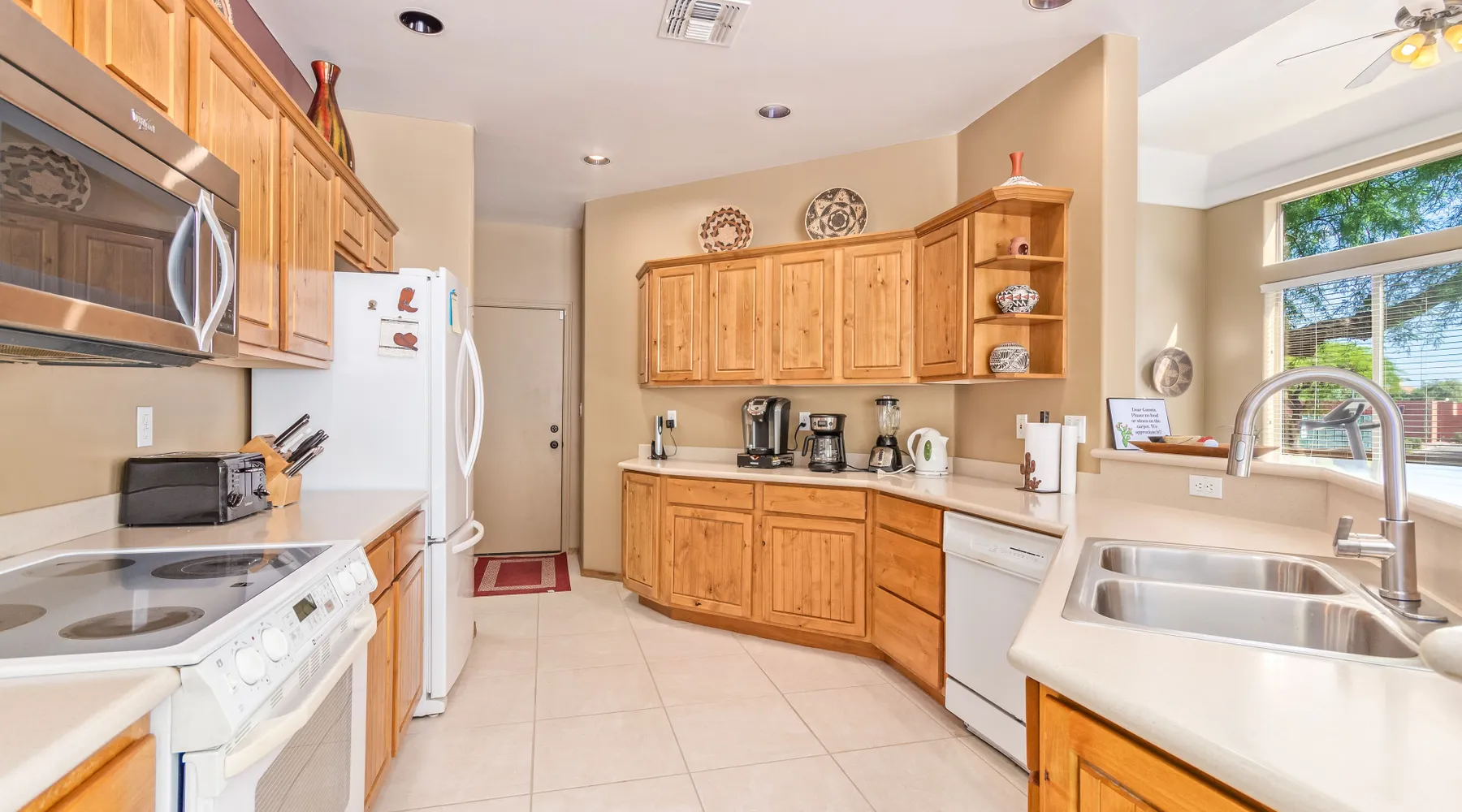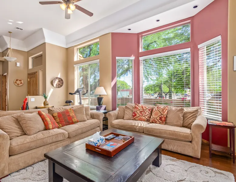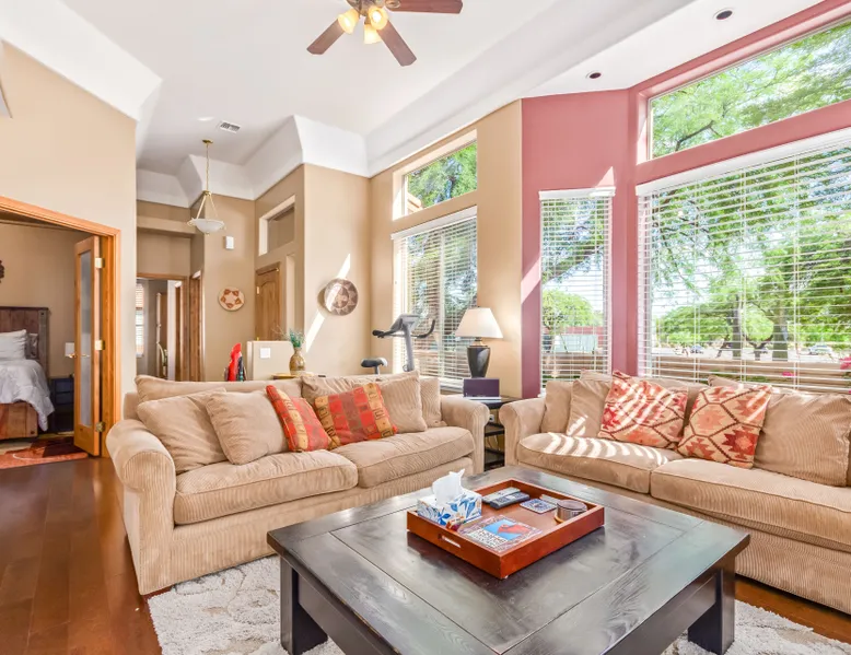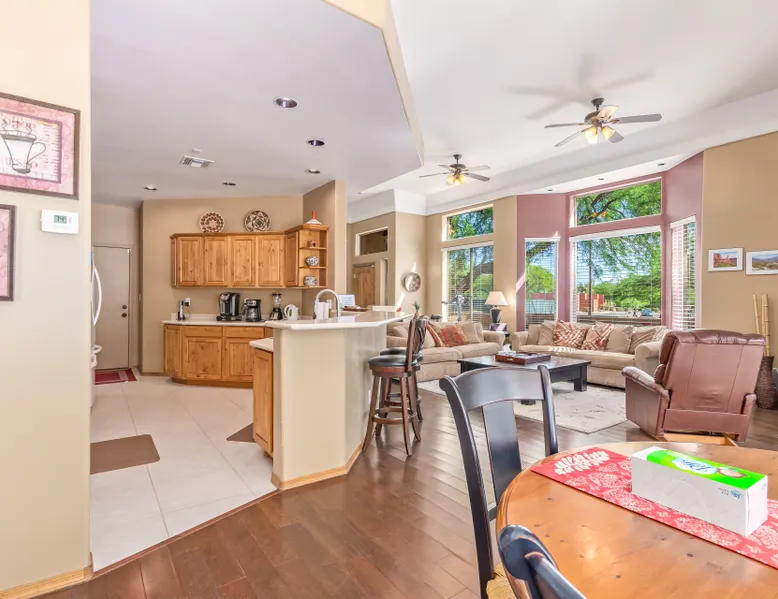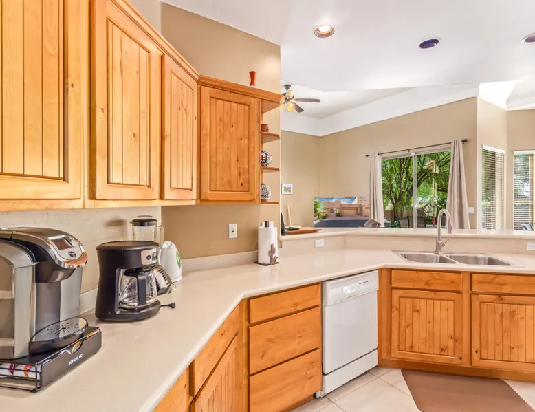 Come relax in Style! Very few homes in the Phoenix area are on a hill. Driving up to this elevated property you will pass the golf course as you approach the base of Red Mountain. This property is Beautiful!! Soaring 10 foot high flat ceilings and natural wood doors and an open floorplan give this property a rich and elegant appeal. Close to really great restaurants and hiking, biking trails and the Salt River for all kinds of recreation! This is a split 3 bedroom 2 bathroom. The sleeping arrangement is 2 King size beds, 1 Queen size bed. It is 1600 sqft single level Mountain and city light views, private rear yard. Free WiFi, Free Wireless Internet This gorgeous community is located on elevated ground at the base of a mountain which is rare in the Phoenix area. Sleeping arrangement: 1 King Master Bedroom 1 Queen 2nd Bedroom 1 King 3rd Bedroom This home is located in Red Mountain Ranch which is a master planned community in NE Mesa just off the 202 freeway. Located across from Red Mountain Ranch Country Club. (A semi-private Golf Course, there are public tee times) It features all of the amenities of a country club with an award winning golf course, country club with restaurant and bar, fitness center, tennis and pickle ball courts, junior Olympic pool and spa. The country club is open to the public so you have the option to join. There are various levels of membership. The best short term option is a Pickleball Family Membership...$125 sign up plus $88/month. Member must be present with family or guests. It Includes access to tennis and pickle ball courts as well as the junior Olympic 75 foot heated lap pool and spa. Other memberships are available; you can find details on the Red Mountain Ranch Country Club website. A brochure can be emailed upon request. In an effort to be good neighbors, we want to keep the noise and traffic to a minimum. We have additional rules below. We do make exceptions to these rules on a case by case basis. Quiet Hours are 10pm - 7am (no one is allowed outside front or back during this time) Groups of all adults under 50 years old MAY not be accepted. Travelers without reviews MAY not be accepted. Primary guests under 40 years old MAY not be accepted. Bookings less than 7 days in advance MAY not be accepted. Guests booking under someone else's account MAY not be accepted. Guests paying with someone else's card MAY not be accepted. No parking on the driveway or street parking at all times. The two car garage is available and overflow parking is located just outside the gate within a very short walk. There is a limit of 6 people (adults and children combined) allowed at the community pool. No events allowed like birthday parties, wedding dinners, reunions etc. Mid stay cleanings are required on all reservations over 15 days in order to lessen the volume of cleaning required at check out. Additional visitors are limited. Guests staying and visitors cannot exceed 8 adults at any time. TPT #: 21586101