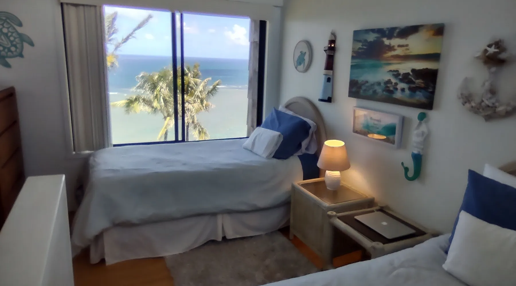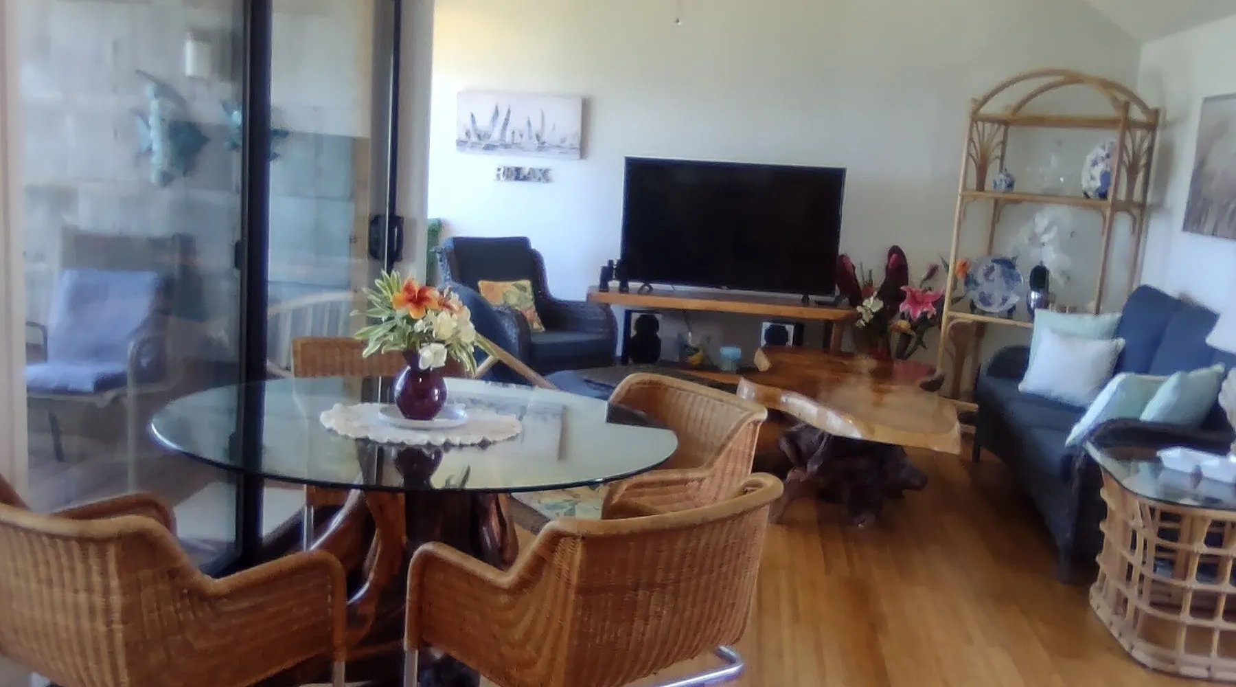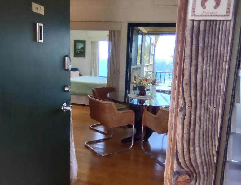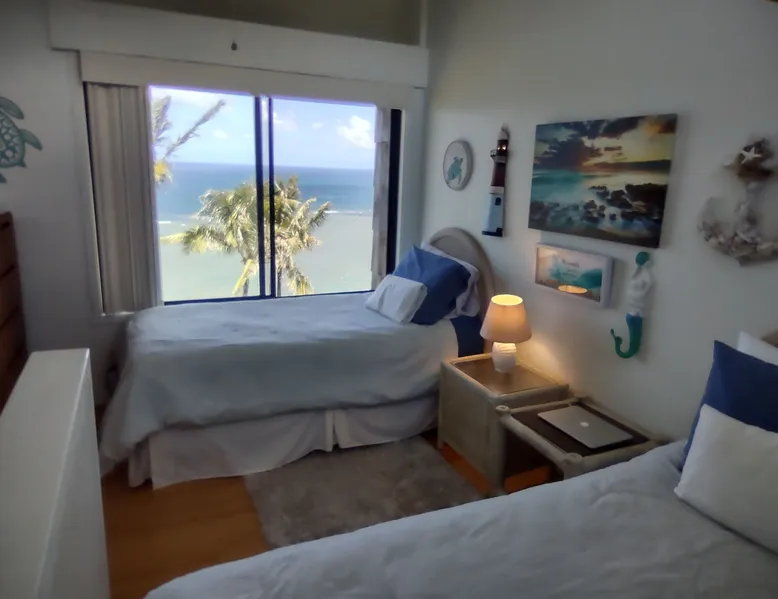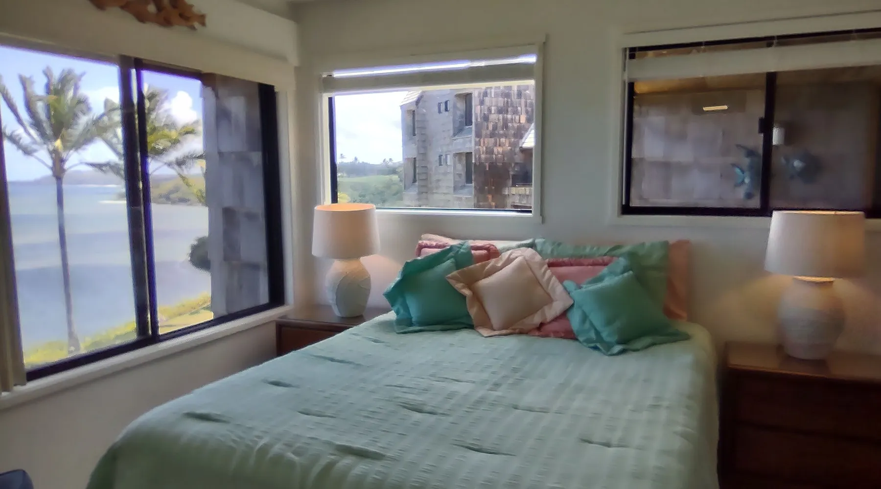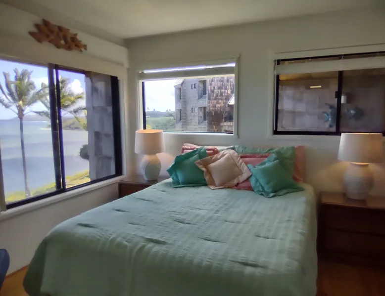 On a green ocean bluff in the middle of the blue Pacific Ocean, on the north shore of Hawaii's northernmost island -- "The Garden Isle" -- is where you'll find Sea Lodge -- a small condominium complex perfect for your next vacation escape. Sea Lodge II is the newer of the two adjoining Sea Lodge condo complexes (built in the 70's). It's small, quiet, comfortable and laid back -- like Kauai. Come to relax, breathe in the fresh ocean breeze and get lost in the view: gorgeous sunrises, white rolling surf, rainbows, perhaps a passing ship or two and beautiful sunsets. PLEASE NOTE: Some vacation management companies try to portray in their listings that Sea Lodge as a "resort", which sets the wrong expectations for first time guests. Both Sea Lodge I & II are residential condos, with individual owners -- so there is a HUGE variation between units. Some Sea Lodge condos are not well maintained. We like to think ours is (!) and we welcome all feedback for continued improvements. Because Sea Lodge II is located at the end of a quiet cul-de-sac in Princeville, we're off the beaten path but not isolated. We're walking distance from all the resort amenities of Princeville. World class golf, restaurants and shopping are nearby. The Westin Hotel, the St. Regis Princeville Resort, and Hanalei Bay Resort are all less than 2 miles away and the seaside town of Hanalei is less than 5 miles away. There are several beautiful golden sand beaches within 2 miles of Sea Lodge II including Puu Poa Beach and Hideaways. Several more are just a short drive away, like Hanalei Bay and Anini, but the biggest surprise is the hidden beach just below Sea Lodge. You'll have to hike down a jungle path to get to it, but it's worth it. (VRBO may say it is a six minute walk, but no... definitely not -- more like 15 minutes!!) Our two bedroom (NB: the second bedroom is the upstairs loft with its own full bathroom, but no bedroom door) condo still needs some renovation from its original 1970's style -- an ongoing project we've been chipping away at. Until then, while the condo isn't the most modern in Princeville it has ocean views that never grow old!! If you enjoy golfing, there is a full set of clubs available for your use :-) We can quote a discounted nightly rate, if you let us know your situation _before_ booking specific dates. Use the "Contact host" link (not "Book now") or for a faster response and better di scount conta ct us first -- be sure to watch the video tour with closed captioning on (press the CC icon). The video is available by searching on YouTube for Sealodge H7. (VRBO has removed video display from property listings) Important note: the condo like most at Sea Lodge does not have A/C or central heat. There really isn't a need for either ...there is *excellent* air flow through the condo. So, if you really need air conditioning, keep looking :-) Because this is our island home, the kitchen is stocked with not just tableware, plates, pots & pans, etc. and also with basic cooking supplies like flour, sugar, baking powder, pasta, etc. You're welcome to use that you need, and please replace if you use the last of it. We ask that you not use the dishwasher (there is a drying rack) and limit use of the garbage disposal to be noise friendly to the downstairs neighbor. Please note: By default there is an 'additional guest' surcharge, per guest, per night, for more than 2 people, and a maximum occupancy of 4. This can be waived under certain circumstances, so please inquire by email before booking. Mahalo. --Sylvia & Gryphon