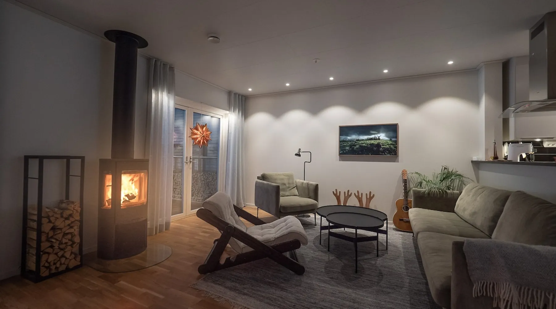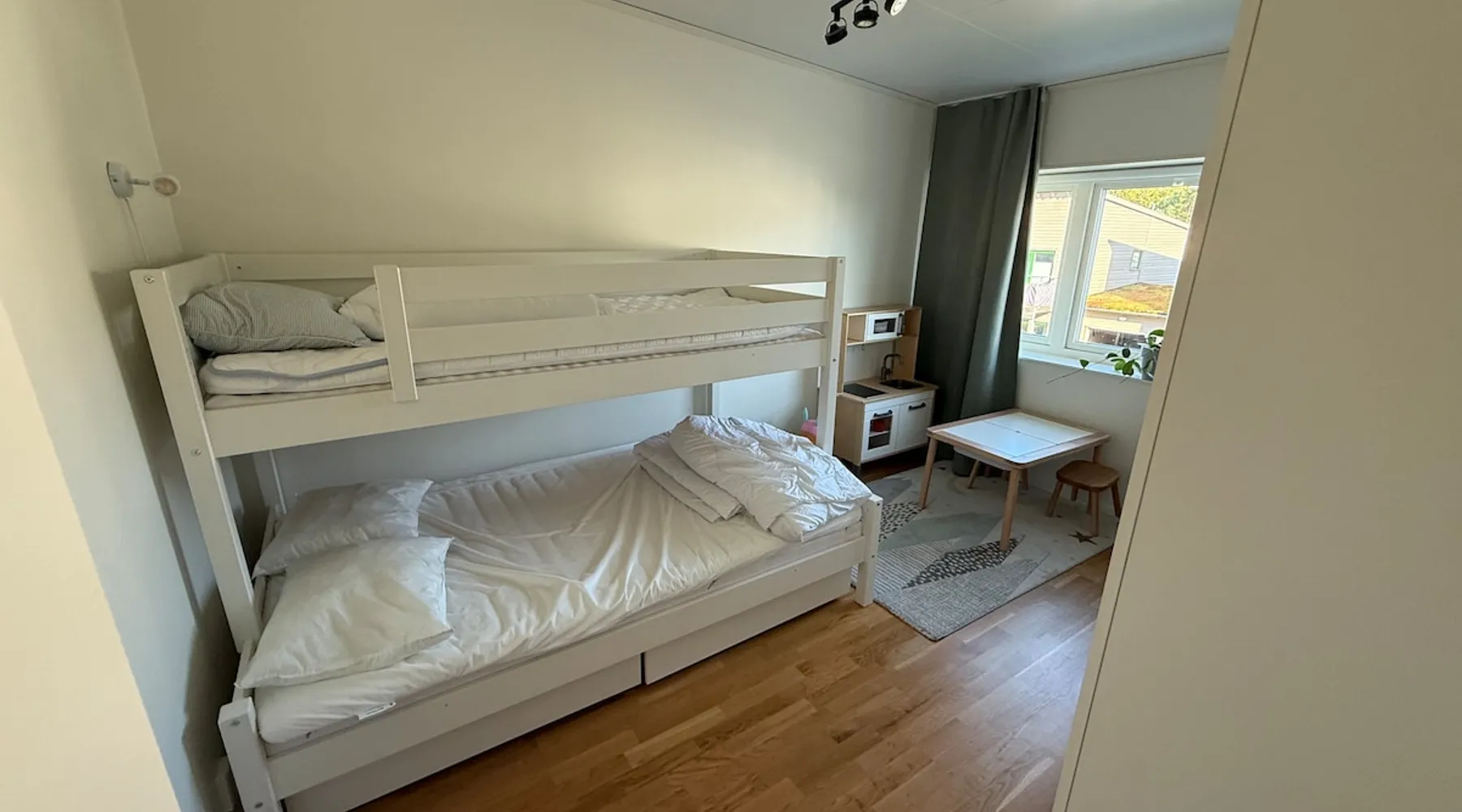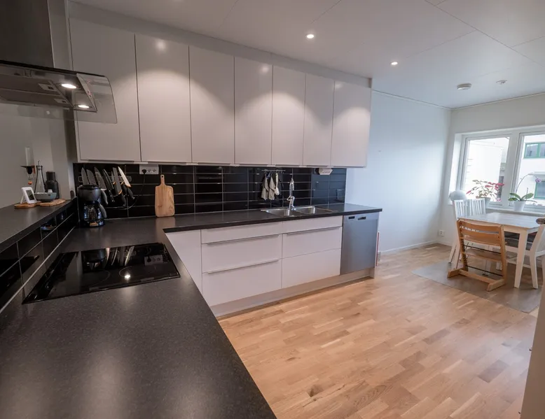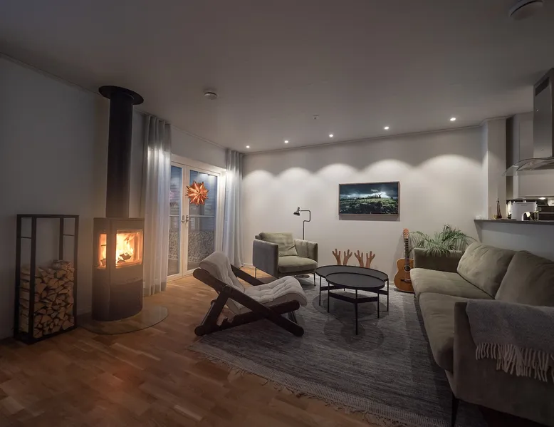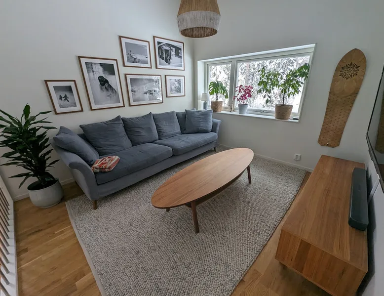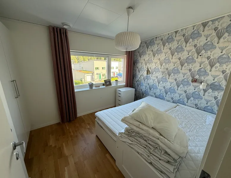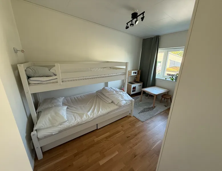 To the family with children or you who want to be close to Östersund ski town or the city center. The house is 128 sqm and is located in a quiet area close to nature. Behind the house, there are electric light tracks that connect to the ski stadium. 3 km to the city centre. (The winter photos are taken by Ambition real estate.) The space On the ground floor there is an open plan between kitchen and living area. There is also a laundry room and a bathroom. Upstairs there are TV rooms as well as 3 bedrooms with a double bed, a family bed and a baby cot. Guest access Free parking