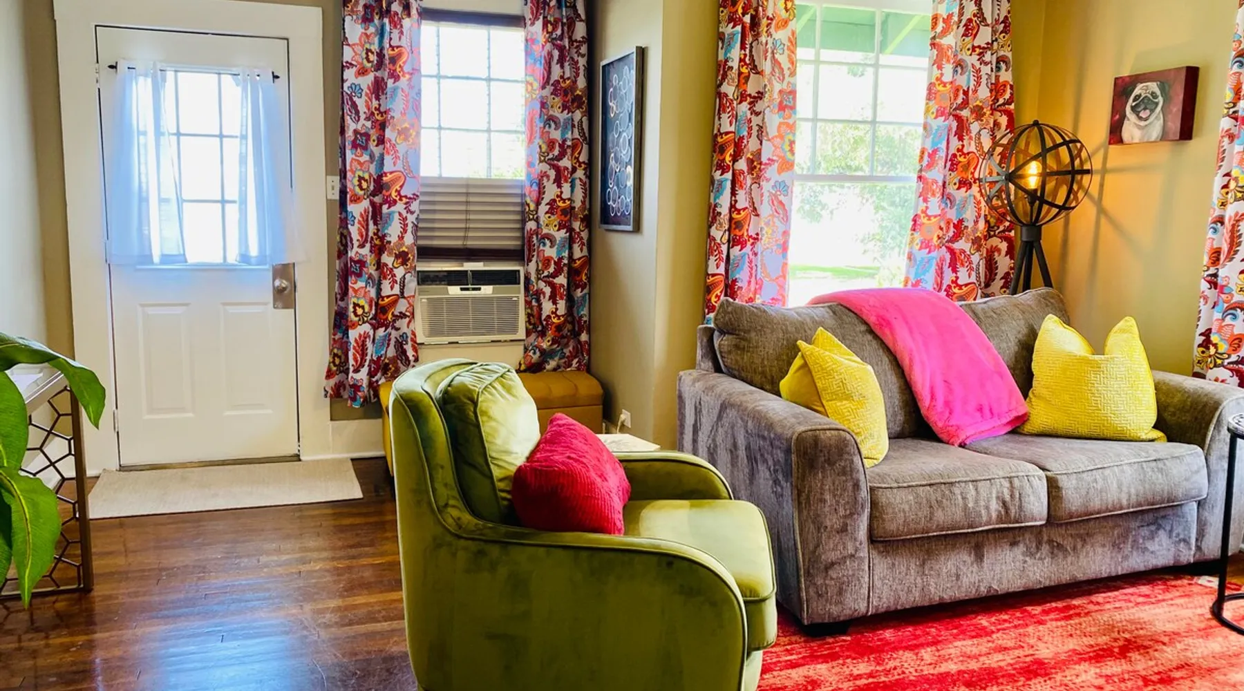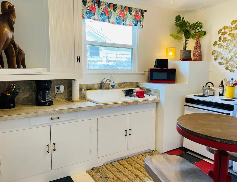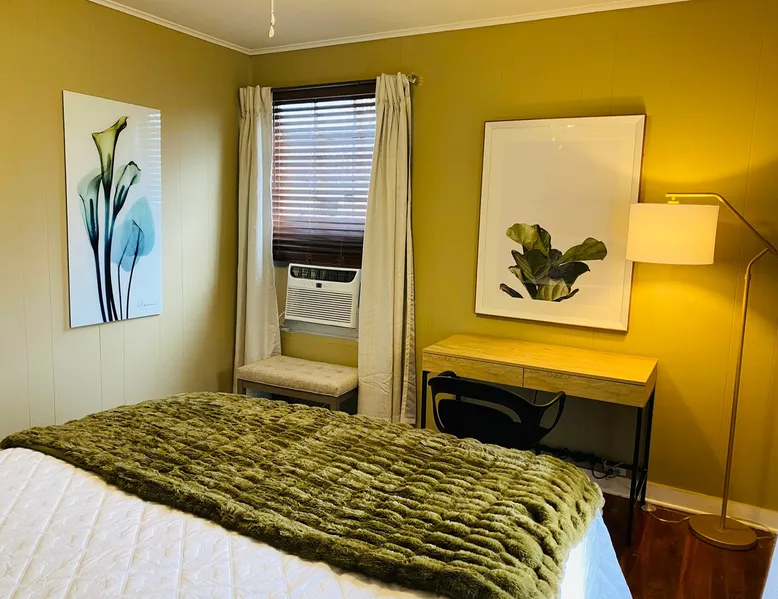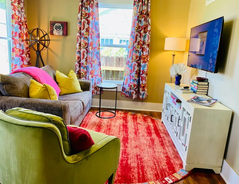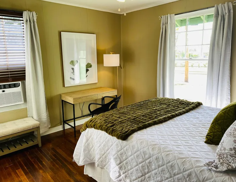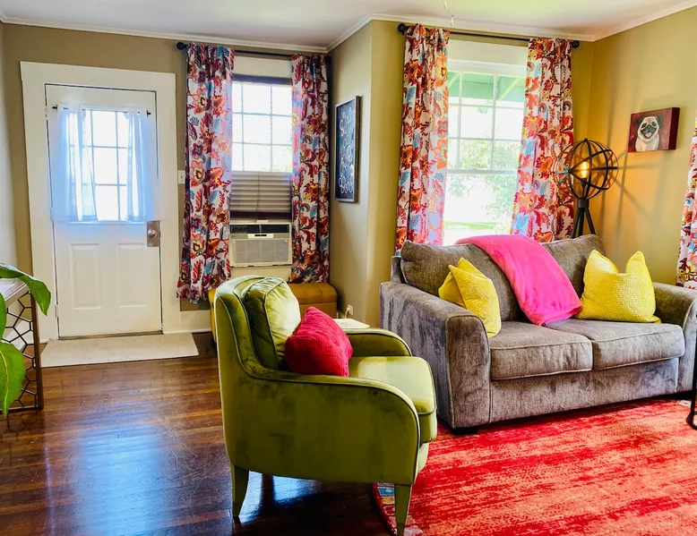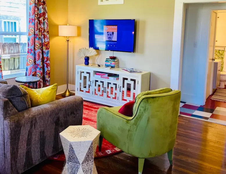 Baja Bungalow has everything you need and more! This stylish space features a spacious, inviting living room and a zen, spa-like bedroom for ultimate relaxation. The full kitchen is equipped with everything for morning coffee or evening cooking. Sleep soundly on a luxurious mattress with premium linens. Lounge on the velvet couch or chair while enjoying the 50” Roku smart TV. Pack light—we’ve got all the bathroom amenities you need, including handmade soap, for a perfectly comfortable stay! The space Baja Bungalow has been completely remodeled to be hip, fun, and cool! The space is both inviting and comfortable, with cleanliness and guest accommodation as our top priorities. Upon arrival, you’ll find a guide to local restaurants and two gift certificates for coffee and dinner to enhance your stay. There is one designated parking space on the property, and additional parking is available on the street. The bedroom features a Sealy pillow-top mattress for a great night’s sleep, and the work area is equipped with a charging station for all your electronics. Enjoy our fully stocked coffee and tea bar, complete with coffee, sugar, two types of creamers, local honey, and a variety of teas. To make your stay even sweeter, water, Louisiana wine, and a delicious treat from a local bakery will also be waiting for you! Guest access There is free street parking available, along with one designated parking spot in front of the unit. A neighborhood Walmart is conveniently located just three blocks away. Be sure to check out our other unique listings: Bohemian Muse and Artists’ Nook! Please note, this is a duplex, and the unit shares a wall with another apartment. While privacy is maintained, you may occasionally hear your neighbors. We look forward to hosting you! Other things to note We do allow pets with a $35 additional cleaning fee and we love hosting furry family members! Please note, this home is over 100 years old! The wood floors have plenty of character, and the kitchen sink shows a few blemishes, adding to its charm. This apartment is equipped with window units, which are thoroughly cleaned after each guest to ensure your comfort. Thank you for appreciating the unique history and care we put into this space!