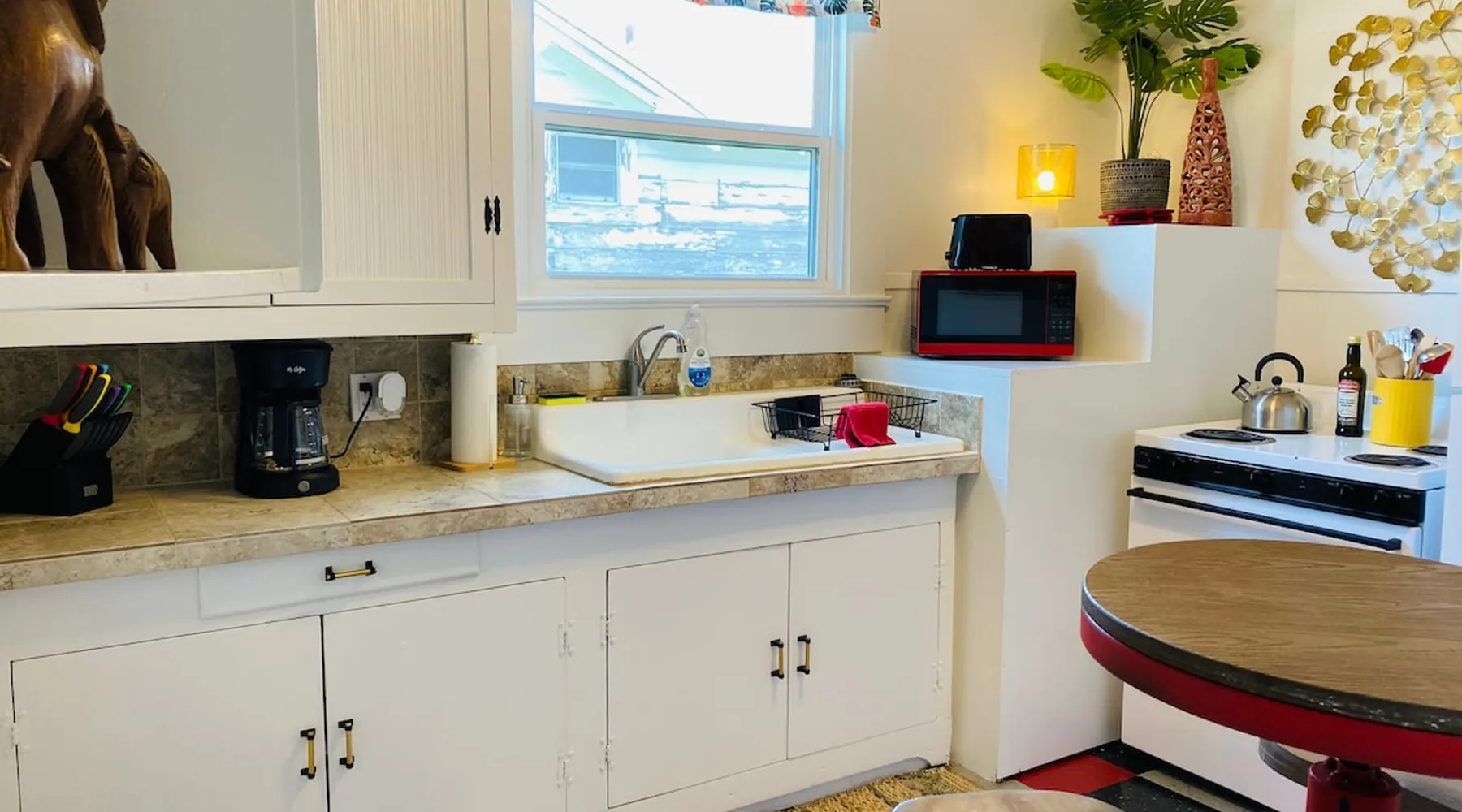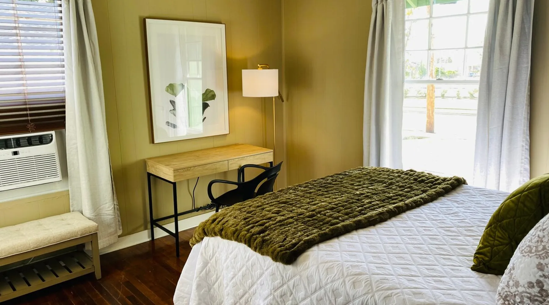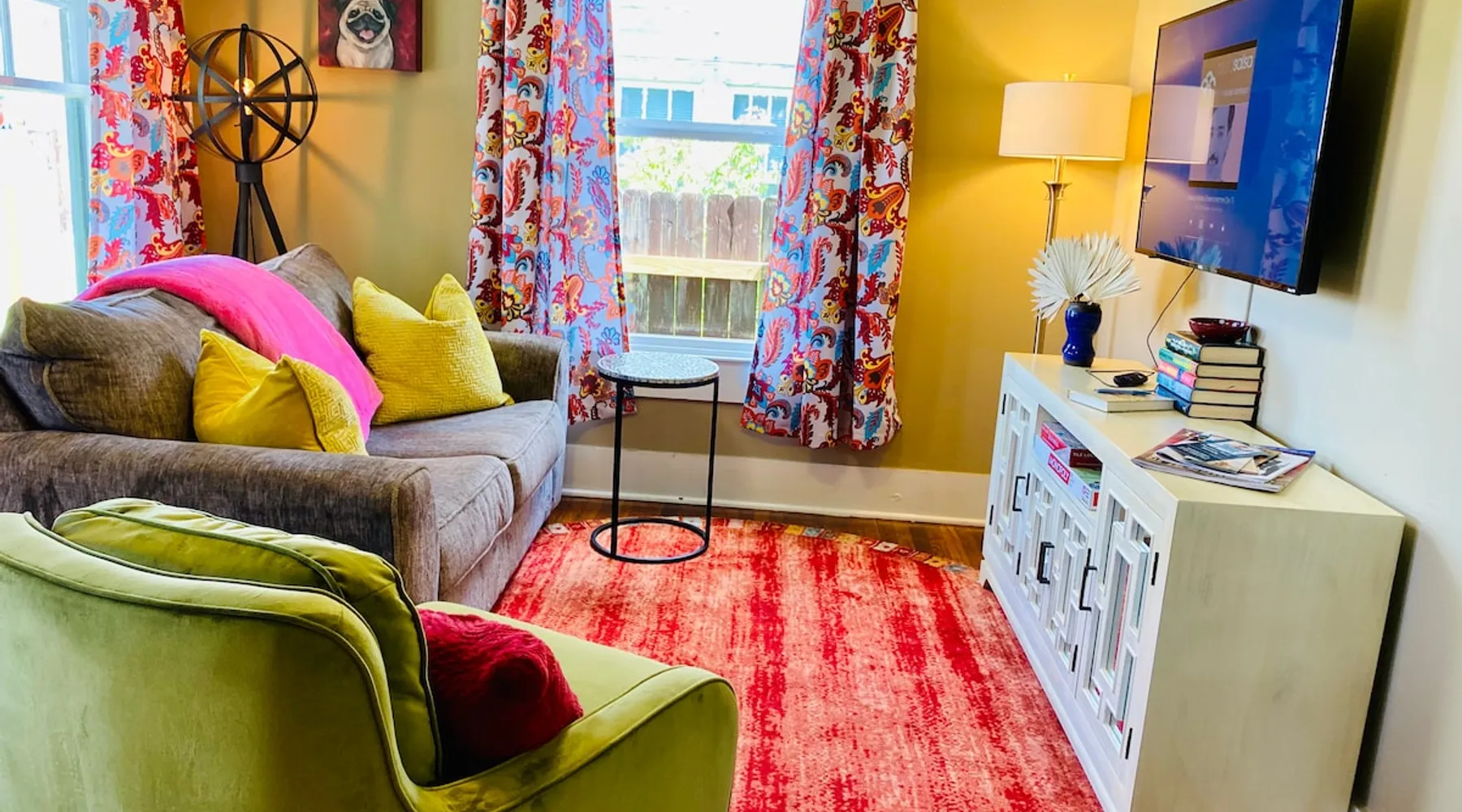 Baja Bungalow has everything you need and more! This stylish space features a spacious, inviting living room and a zen, spa-like bedroom for ultimate relaxation. The full kitchen is equipped with everything for morning coffee or evening cooking. Sleep soundly on a luxurious mattress with premium linens. Lounge on the velvet couch or chair while enjoying the 50” Roku smart TV. Pack light—we’ve got all the bathroom amenities you need, including handmade soap, for a perfectly comfortable stay! The space Baja Bungalow has been completely remodeled to be hip, fun, and cool! The space is both inviting and comfortable, with cleanliness and guest accommodation as our top priorities. Upon arrival, you’ll find a guide to local restaurants and two gift certificates for coffee and dinner to enhance your stay. There is one designated parking space on the property, and additional parking is available on the street. The bedroom features a Sealy pillow-top mattress for a great night’s sleep, and the work area is equipped with a charging station for all your electronics. Enjoy our fully stocked coffee and tea bar, complete with coffee, sugar, two types of creamers, local honey, and a variety of teas. To make your stay even sweeter, water, Louisiana wine, and a delicious treat from a local bakery will also be waiting for you! Guest access There is free street parking available, along with one designated parking spot in front of the unit. A neighborhood Walmart is conveniently located just three blocks away. Be sure to check out our other unique listings: Bohemian Muse and Artists’ Nook! Please note, this is a duplex, and the unit shares a wall with another apartment. While privacy is maintained, you may occasionally hear your neighbors. We look forward to hosting you! Other things to note We do allow pets with a $35 additional cleaning fee and we love hosting furry family members! Please note, this home is over 100 years old! The wood floors have plenty of character, and the kitchen sink shows a few blemishes, adding to its charm. This apartment is equipped with window units, which are thoroughly cleaned after each guest to ensure your comfort. Thank you for appreciating the unique history and care we put into this space!