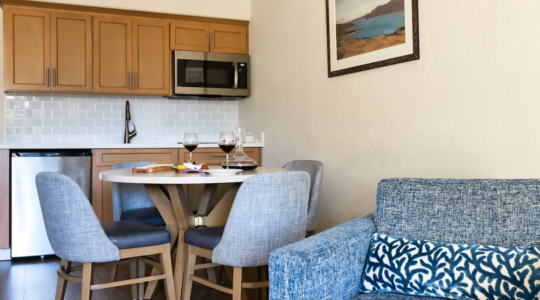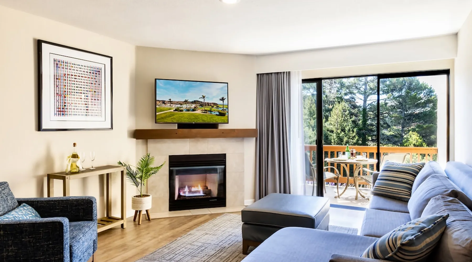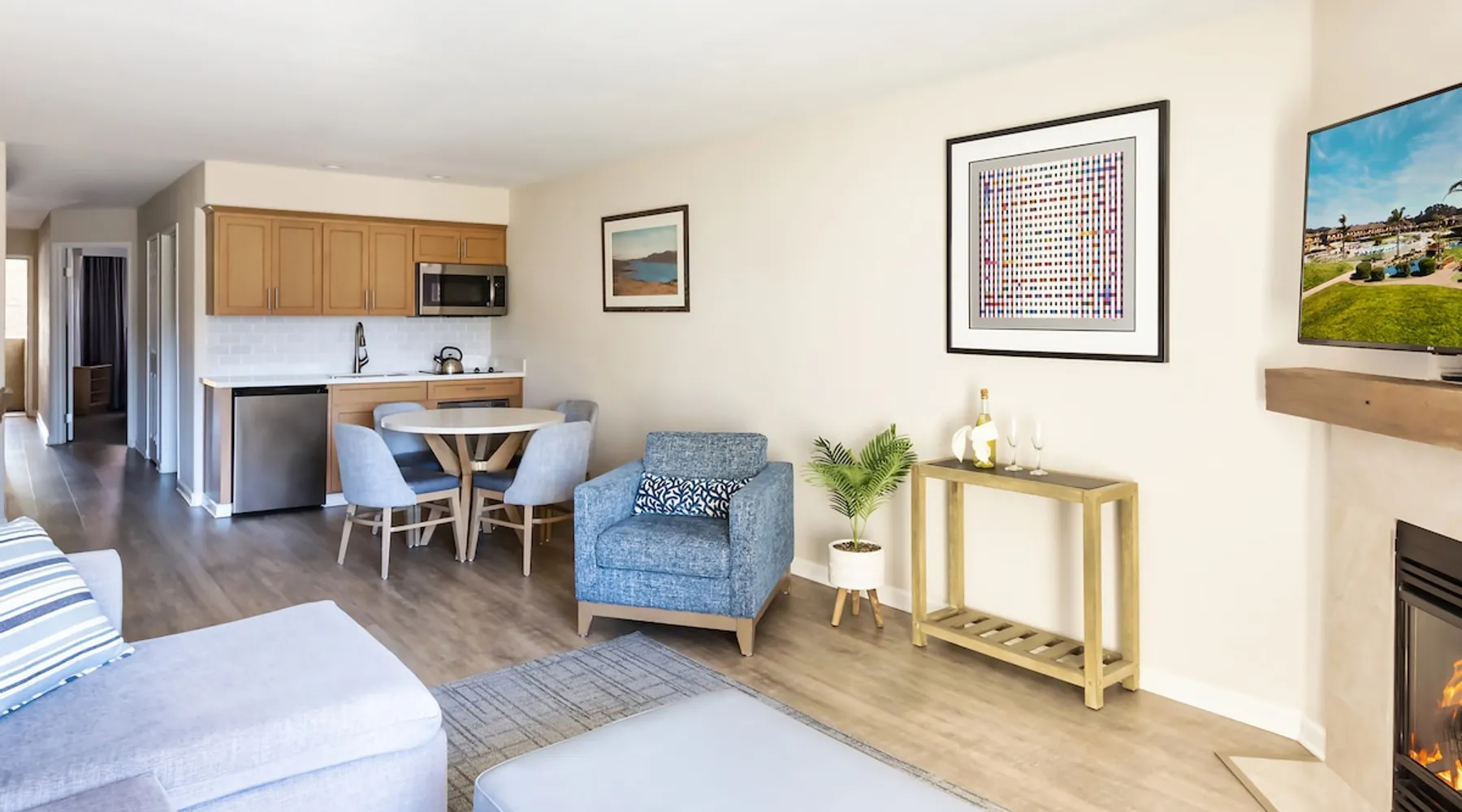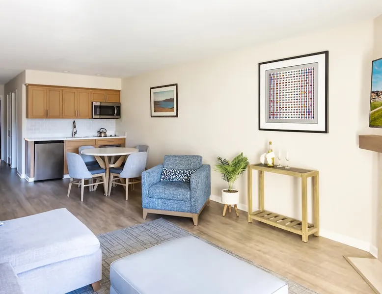 Our One Bedroom Suites with a garden view are located on the first or second floor of the main building, offering a central location and easy access to Sanderlings Restaurant, pools, actives and beach. They are offer a queen size bed in the bedroom and an additional sleeper-sofa in the living room. With a fully equipped kitchenette, fireplace, safe, private balcony, and wifi, these rooms are perfect for couples or small families or groups. Units are individually owned and decor may vary. The space Welcome to Seascape Beach Resort, one of the best Monterey Bay resort destinations you’ll experience. Whether you’re celebrating a wedding or making family memories, our suites and villas pair the comforts of a beach home with the services and amenities you expect in a luxury resort. Sanderlings is our delicious on-site restaurant. Happy Hour is served Monday-Thursday from 3pm-5pm. Live Music Fridays-Every Friday from 5:30pm-7:30pm, join us in the Sanderlings lounge for live music as the sun sets over the ocean. Seascape Sports Club is open daily from 7am-7pm. Our state of the art facilities cater to every fitness level. Enjoy tennis, pickleball, basketball, fitness center, group classes, personal training, lap pool or the kids can play at the kids swim park. The Seascape Golf Course is open daily 30 minutes after sunrise and last bucket sold 30 minutes prior to sunset. Lush fairways meet stunning ocean views. Perfect you swing at the Isaac Weintraub International Golf School or hone your skills at the state of the art Driving Range. Contact the concierge to book a tee time. Guest's of Seascape Resort receive a discount on tee times. Seascape Resort offers three pools on the main property. They are open from 9AM-10PM Cart Service is available throughout the resort and down to the beach for registered guests of Seascape Resort only. Cart service is based on demand and availability. Pick-ups from the beach ban experience longer wait timed during peak season due to foot traffic on the path. Beach fires and s'mores packages are available by reservation through the front desk. Guest access When you book with us, you'll be securing your reservation through the official Seascape Beach Resort Listing. This ensures you access to all amenities and services that we offer, such as resort-wide transportation, Concierge services, access to Seascape Sports Club and tennis courts, discounts on tee times at Seascape Golf and On-site experiences including our most popular, Beach Fire Experience. Daily housekeeping service is also available upon request. Our on-site team is available in our lobby 24/7, ready to assist you should anything arise. *Please note that these services are only available to guests who book via official resort listings. Other things to note WEATHER ADVISORY: For travelers planning visits between May and September, kindly note that temperatures in our region typically fluctuate between 45 and 90 degrees Fahrenheit. While our accommodations do not feature air conditioning, we provide standing fans to ensure comfort during your stay. POLICIES: Check-in time: Our check-in time is 4 pm. If you plan to arrive early, you are welcome to enjoy the resort until your unit becomes available. Check-out time: Our checkout time is 11:30 am. If you need a later check-out, please call us the morning of your departure and we will do our best to accommodate your request, subject to availability. Cancellation: Reservations must be canceled 24 hours prior to your arrival date to avoid a fee of 1 night room & tax. Pet/Smoking: Our units are pet-free and smoke-free. The discovery of pets in our units will result in their immediate removal, accompanied by a penalty of up to $300. A penalty of $300 will also apply to units with the discovery of smoking. Housekeeping: Housekeeping services are provided by request only. Units are individually owned and decor may vary.