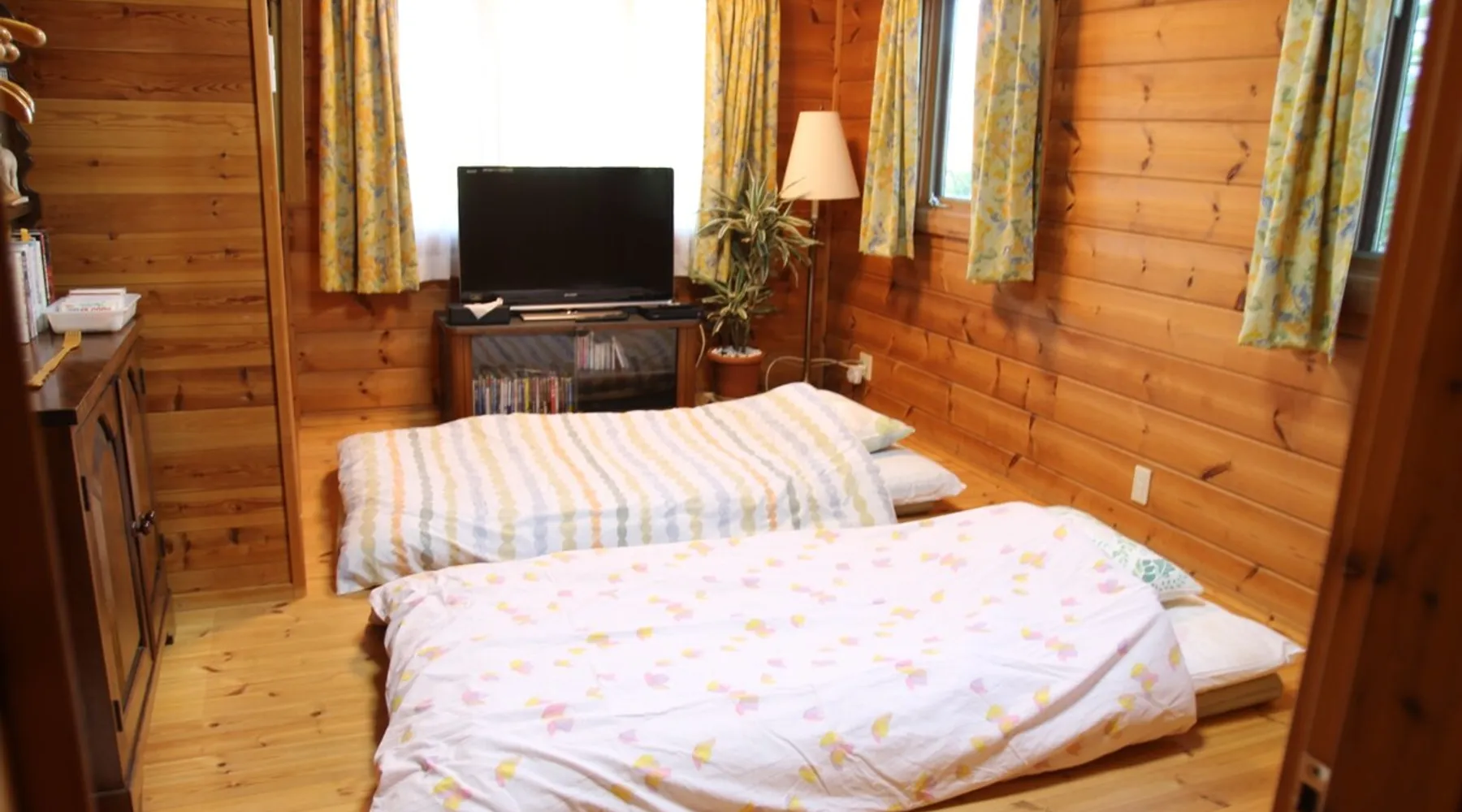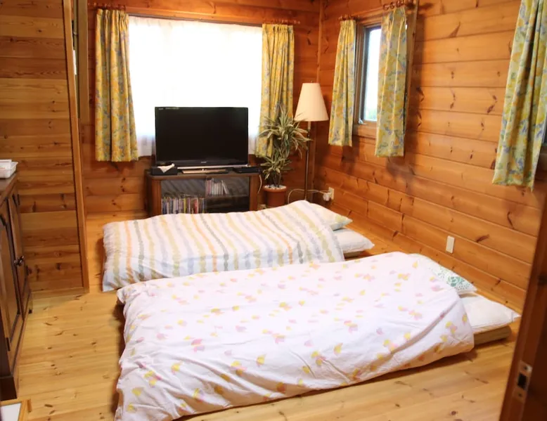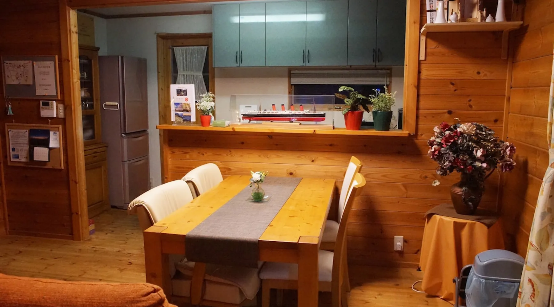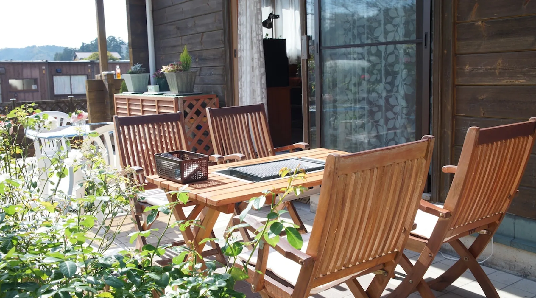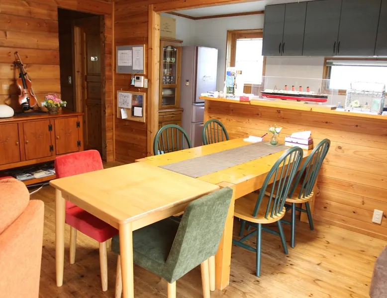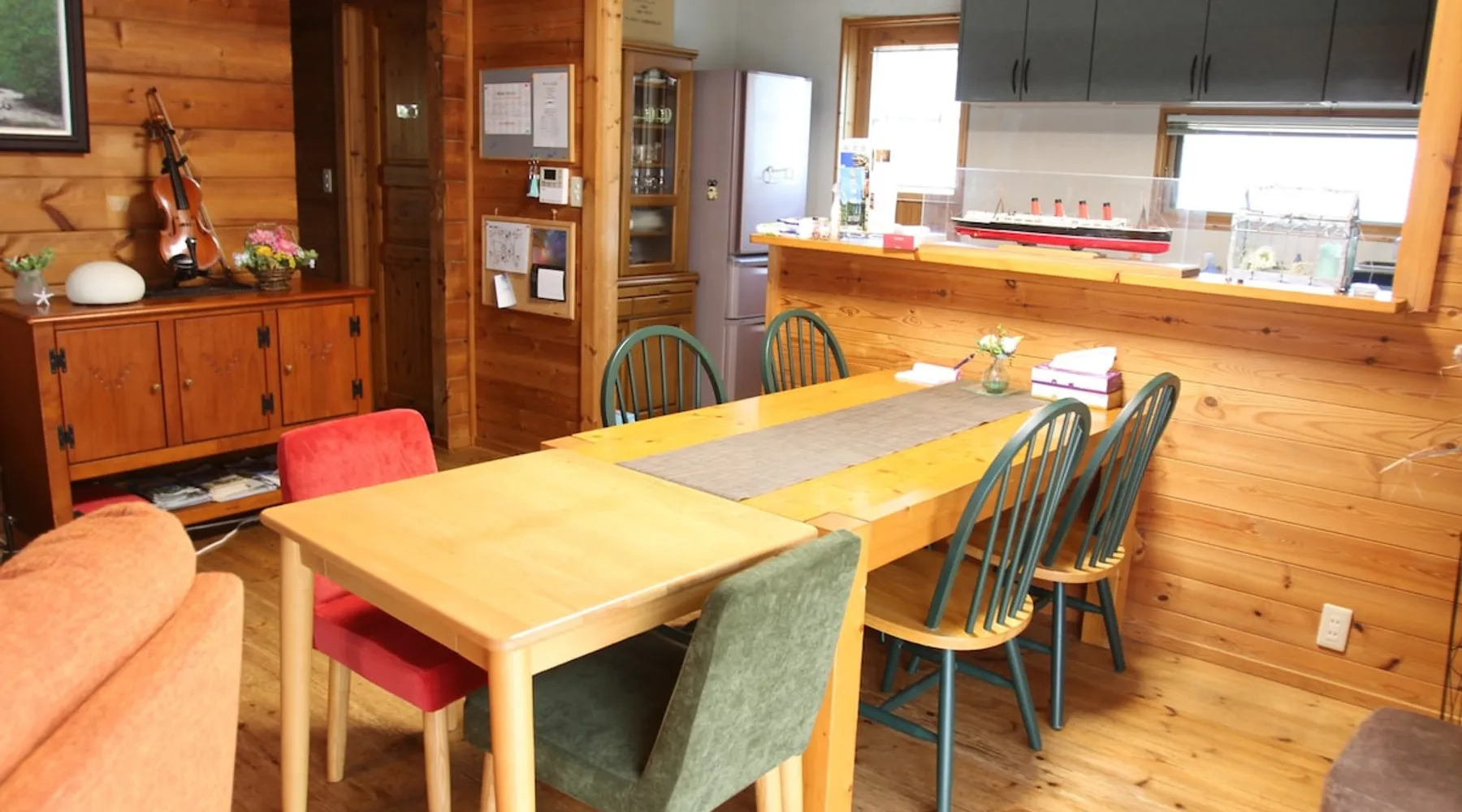 Farmhouse Log House Tomi-chan's house is a 22-year-old log house. Here, we provide healing throughout the four seasons. In addition, you can enjoy abundant nature experiences and marine sports throughout the year. It is a 15-minute drive to the sea, and the local area is surrounded by mountains, so you can experience it with your family and friends. There is a sword shrine (Echizen Ninomiya) nearby. The space In June, roses bloom all over the garden. In summer you can enjoy the barbecue in the garden. In the fall, the four-season roses bloom. In the winter, you can warm your mind and body with a wood-burning stove. [Corona measures] ・ Regularly disinfect common areas. ・ Provide sufficient ventilation in the guest room. ・ Cleaning specialists will wear masks and gloves and use effective means such as alcohol to sterilize the room (including remote controls, wall switches, doorknobs, etc.). ============== [The room] ・ [1st floor] 8 tatami mat bedroom / capacity 3 people ・ [2nd floor] 6 tatami mat bedroom / capacity 2 people ・ There is a 15 tatami mat dining kitchen, bath and toilet. ・ Comforter (summer / winter) [Services / Equipment] ・ You can use what is in the kitchen, with a refrigerator, tableware, and cooking utensils. ・ Mattress / sheets / pillow comforter (summer / winter) ・ DVD viewing equipment / air conditioner / heating / bookshelf / 3 outlets ・ Desk (table) / chair (sofa) / dryer / washing machine / wireless LAN / microwave oven / TV / rice cooker / clothes dryer / hanger ★ There are more than 300 records and CDs that you can listen to from stereo. We also have Wifi, so you can enjoy listening to songs from your mobile phone via Bluetooth. [Amenity] Face towel / bath towel / soap / hand soap / body soap / Shampoo / conditioner / conditioner. [About meals] Basically, we do not serve meals, but there are side dish shops, supermarkets, convenience stores, restaurants, etc. within walking distance. [Barbecue] If you prepare the ingredients and charcoal, we will lend you a barbecue set for free! !! 【Bake a pizza experience 】 ●Bake a pizza experience ●When you want pizza firing, please contact me in advance. . ●Pizza firing device rental charges/1,500 yen (please pay directly in the field) [Parking Lot] ・ There is a free parking lot on-site/on the street Other things to note Offer of four seasons : Spring ... Appreciating roses in the garden. There is a rose class sponsored by the prefecture once a year. Summer... It takes an hour by car from our guest house, but we offer to cruise in Tsuruga Bay and swimming in Mizushima. Autumn ... Please experience various things. It's fun to chop wood and make ceramics classes! Winter ... Why don't you experience a wood stove? Look at the fire slowly. Registration Details Hotels and Inns Business Act | 福井県丹南保健所 | 福井県指令丹保第41619004号
