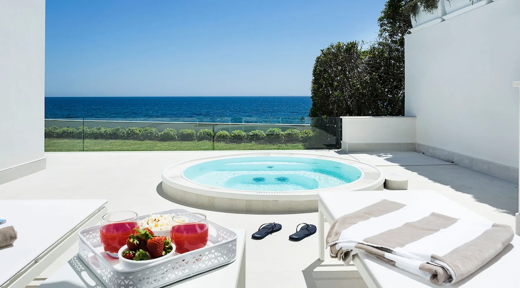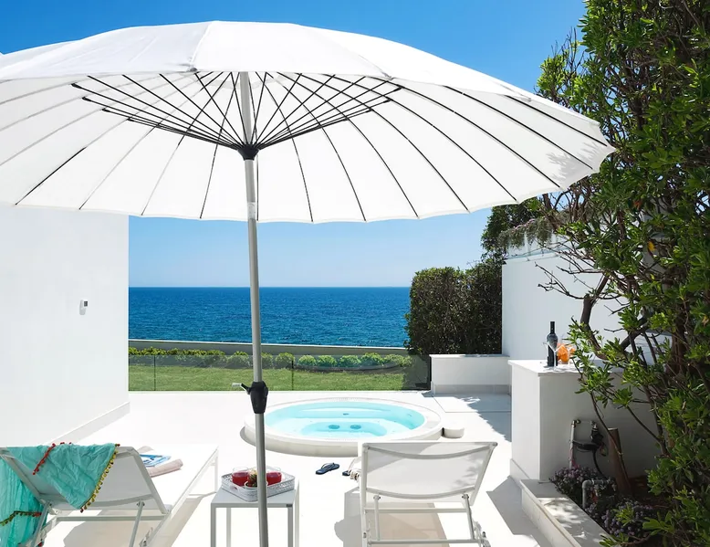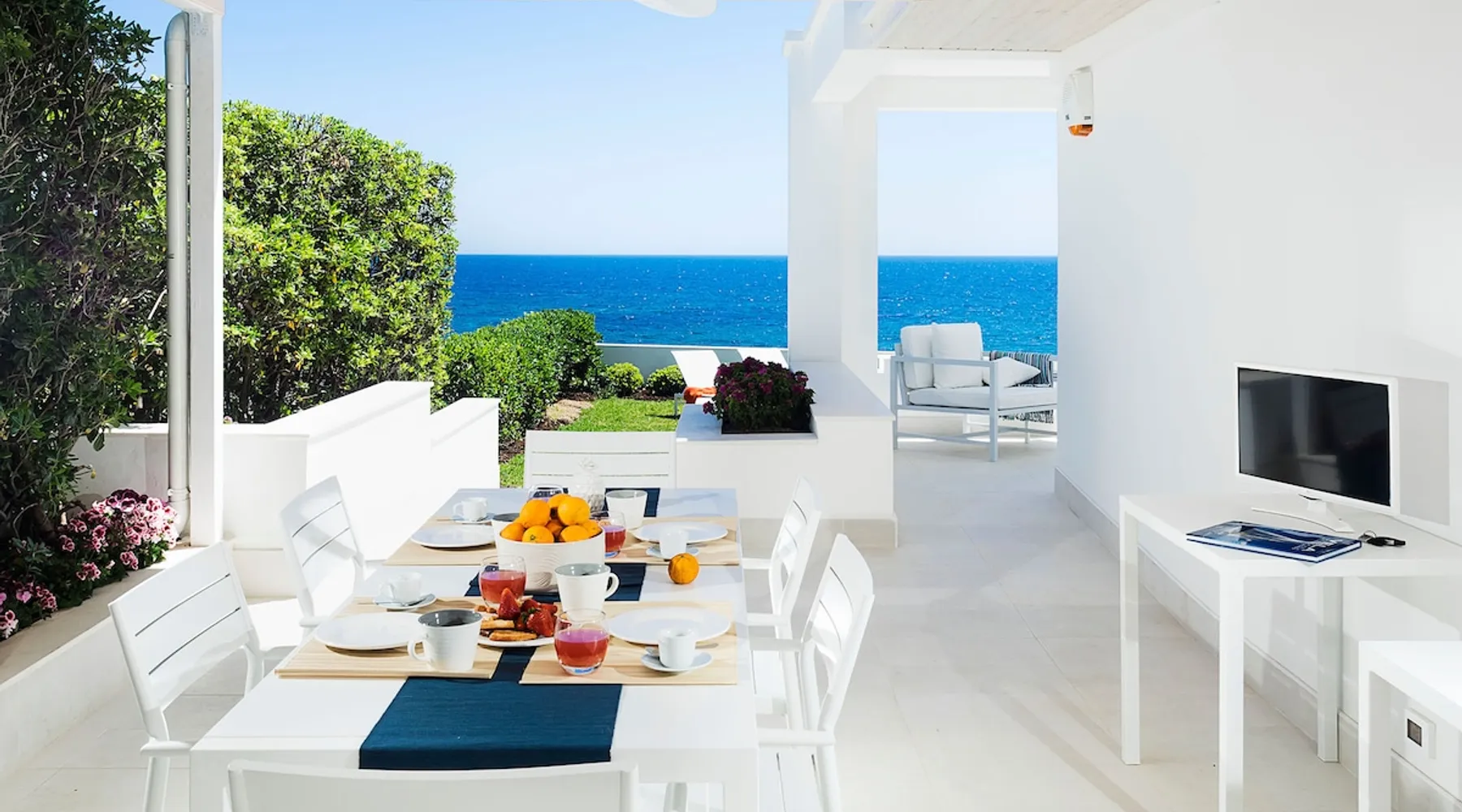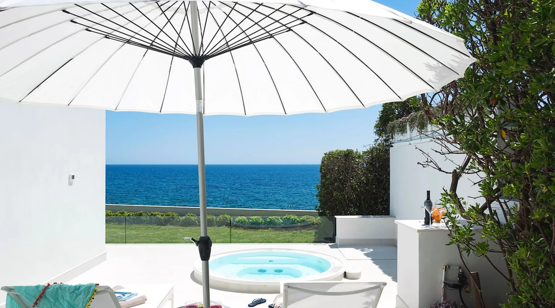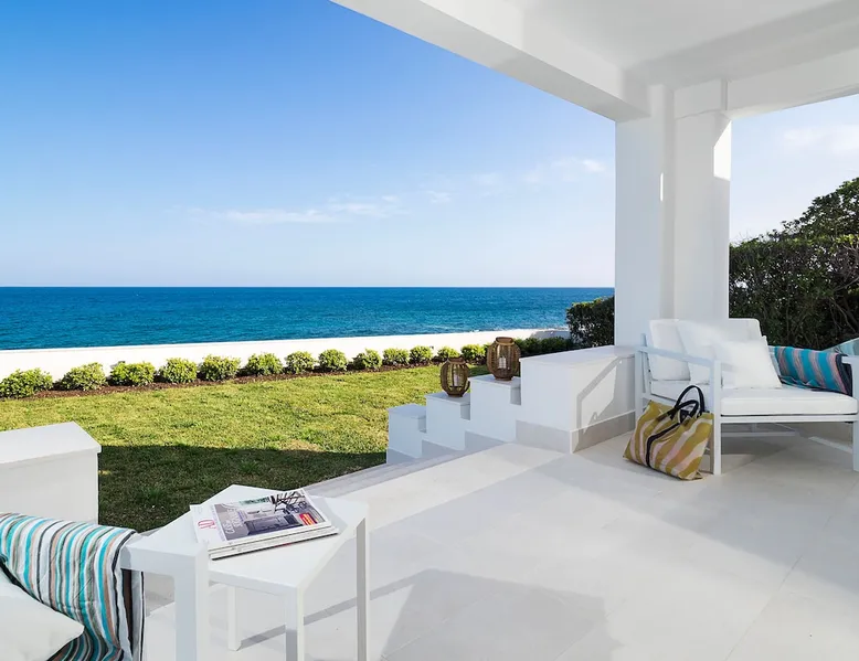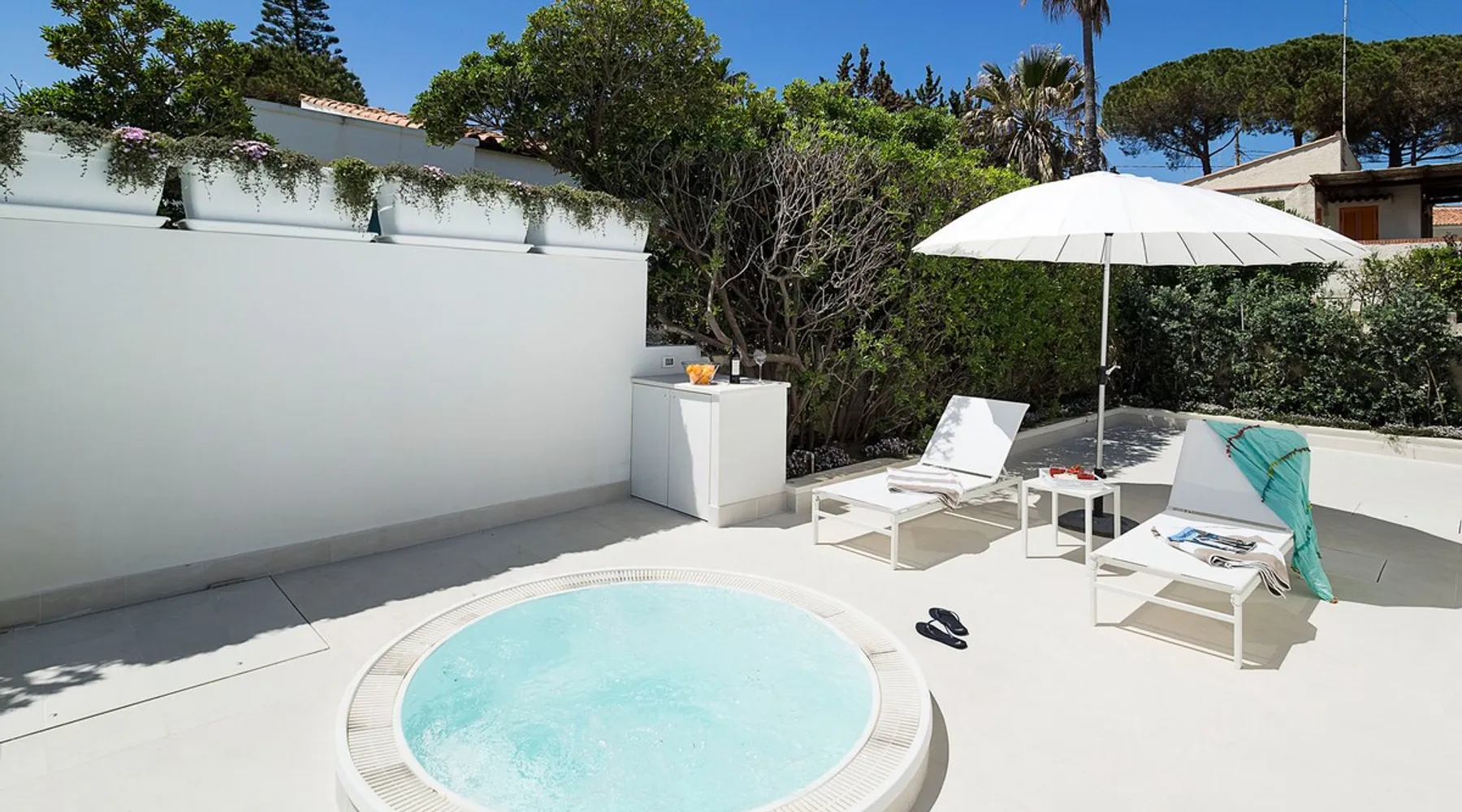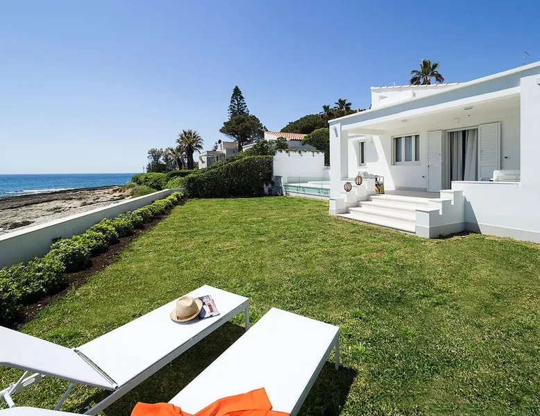 This lovely modern sea view Villa is in prime position on the front line of a quiet residential area on the edge of the resort of Fontane Bianche. Beautiful sea views are enjoyed from the slightly raised and covered terrace with steps leading down to the garden. To one side is the jacuzzi pool and Bbq area. Location The space This lovely modern sea view Villa is in prime position on the front line of a quiet residential area on the edge of the resort of Fontane Bianche. Beautiful sea views are enjoyed from the slightly raised and covered terrace with steps leading down to the garden. To one side is the jacuzzi pool and Bbq area. Location Less than 20 minutes walk from the local supermarket/delicatessen and under 2 kms from the small sort of Fontane Bianche, guests at Villa Marisol will find every daily requirement practically on the doorstep. There’s a choice of swimming from the rocks in front of the Villa or a sandy beach just 1 km away. Further afield, beautiful Syracuse is 17 kms away, Noto 40 kms. Outside Villa Marisol Sea View Jacuzzi pool - 2m x 2m, with depths of 0.50m - 1.2m. Open 1 March - 30 November Sun terrace - Sunbeds and parasol Sea View Garden - Area of lawn. Sea View Covered Terrace - Easy chairs, Loggia - Covered sea view terrace with table and chairs, barbecue, sink Shower room 2 - shower, washbasin, Wc, washing machine Inside Villa Marisol - Accommodation all on one level. Open plan living room Sitting area - 2 seater sofa, Tv (limited channels/news only). with satellite reception Dvd player.. Dining area - round table and 4 chairs, French doors to sea view terrace. Kitchen - 3 ring gas hob and electric oven, dishwasher, microwave, large fridge/freezer, breakfast table, French doors to upper terrace. Double bedroom - 1 double bed, wardrobe, sea view window. Air con unit. Single bedroom - 1 single bed, wardrobe, side window. Air con unit. Shower room - Walk-in shower, hand basin, bidet, Wc Housekeeping Your Villa will be prepared for you on arrival with fresh bath and hand towels and beds will be made up. Bed linen will be changed every 7 days and house towels changed every 4 days. Bedrooms and bathrooms weekly clean. Parking - on site. Minimum stay 7 nights Please Note: from 29 June to 30 August, Saturday - Saturday bookings only can be accepted. *Electricity & Air-Con - 200 kwh per week is included in the price (reasonable consumption). Usage above 200 kwh per week, will be payable locally at 0.40€/kwh There is a Security Deposit of 500 euros Check in/Check out Check-in: 16:00 - 21:00 Check-out: 08:00 - 10:00 Late arrivals: 21:00 - 24:00 only if agreed charged 30€ Guest access The villa and pool is for your private use only as well as the garden. Bed linen & towels are provided as well as pool towels. The cleaner will come in during your stay & change them, depending on how many days you are staying. All of this is included in the price. Other things to note Included services - tree-nation, 2x trees planted : Price: Included in the booking - Bed Linen & Bathroom Towels: Price: Included in the booking - Pool/Beach Towels: Price: Included in the booking Optional services - Cot/Crib: Price: Included in the booking. Available items: 2. - Baby high chair: Price: Included in the booking. Available items: 2.