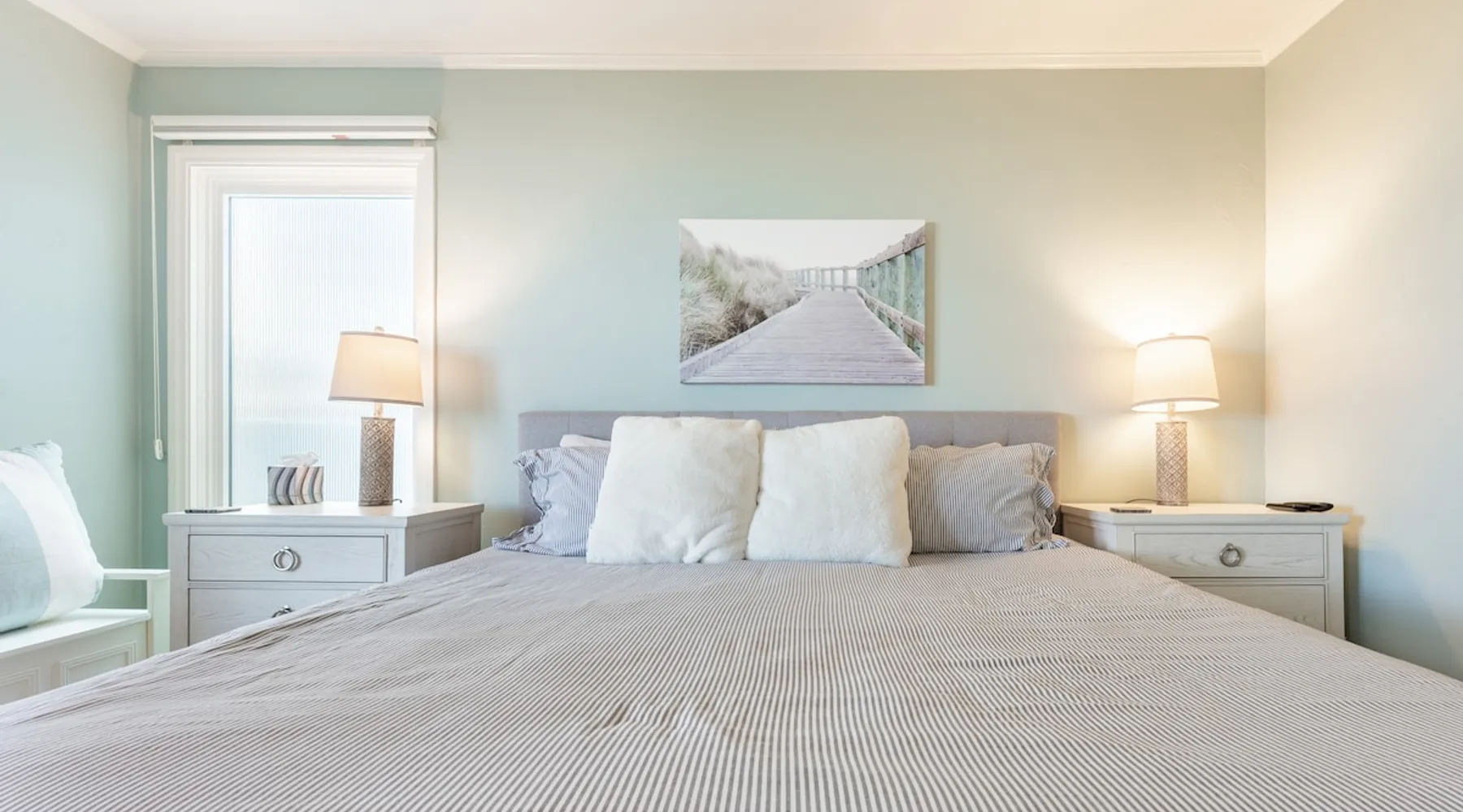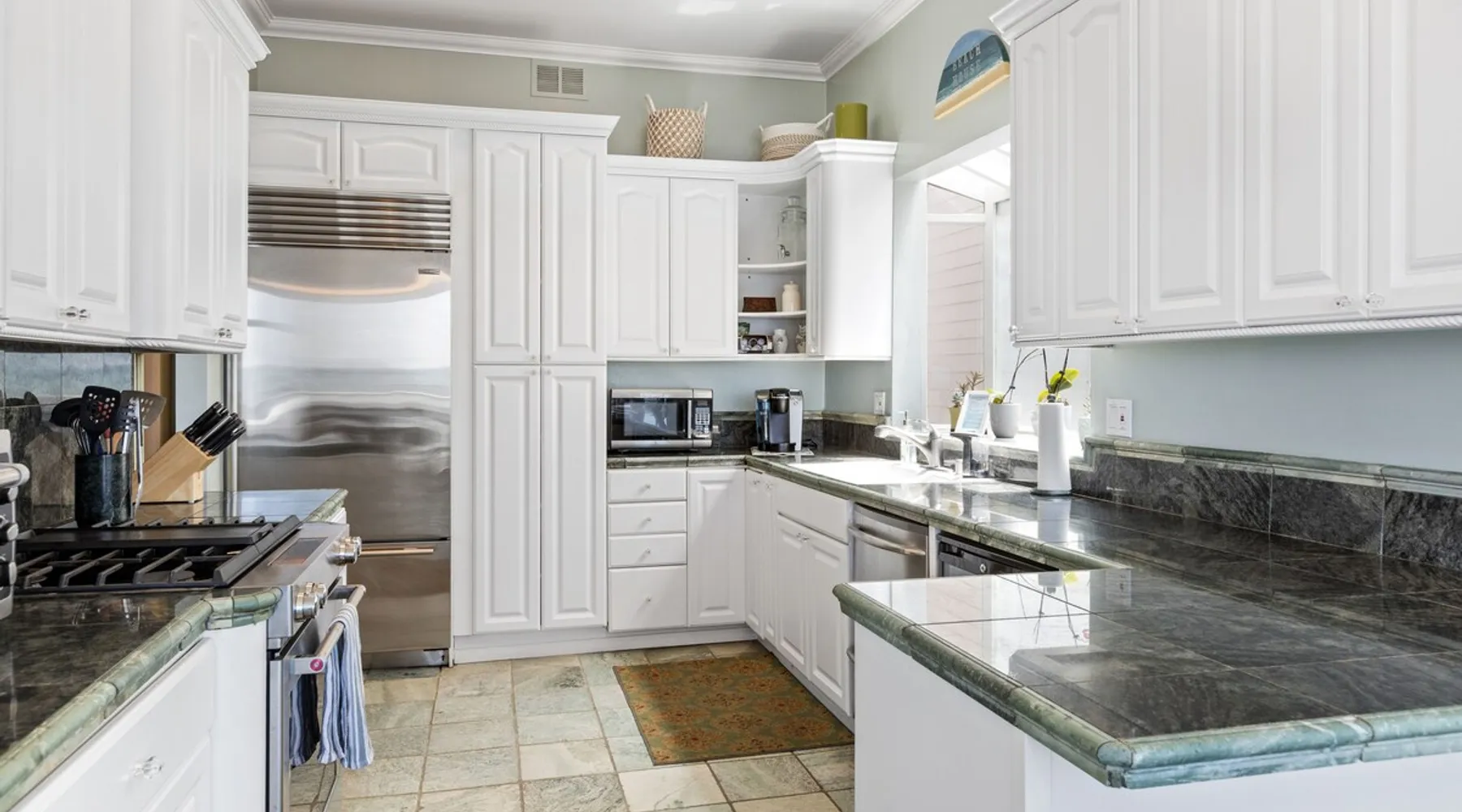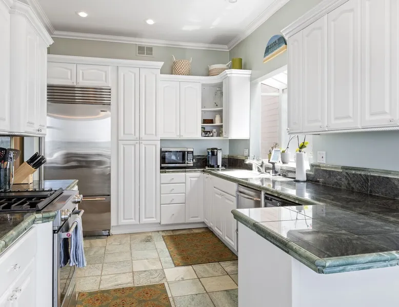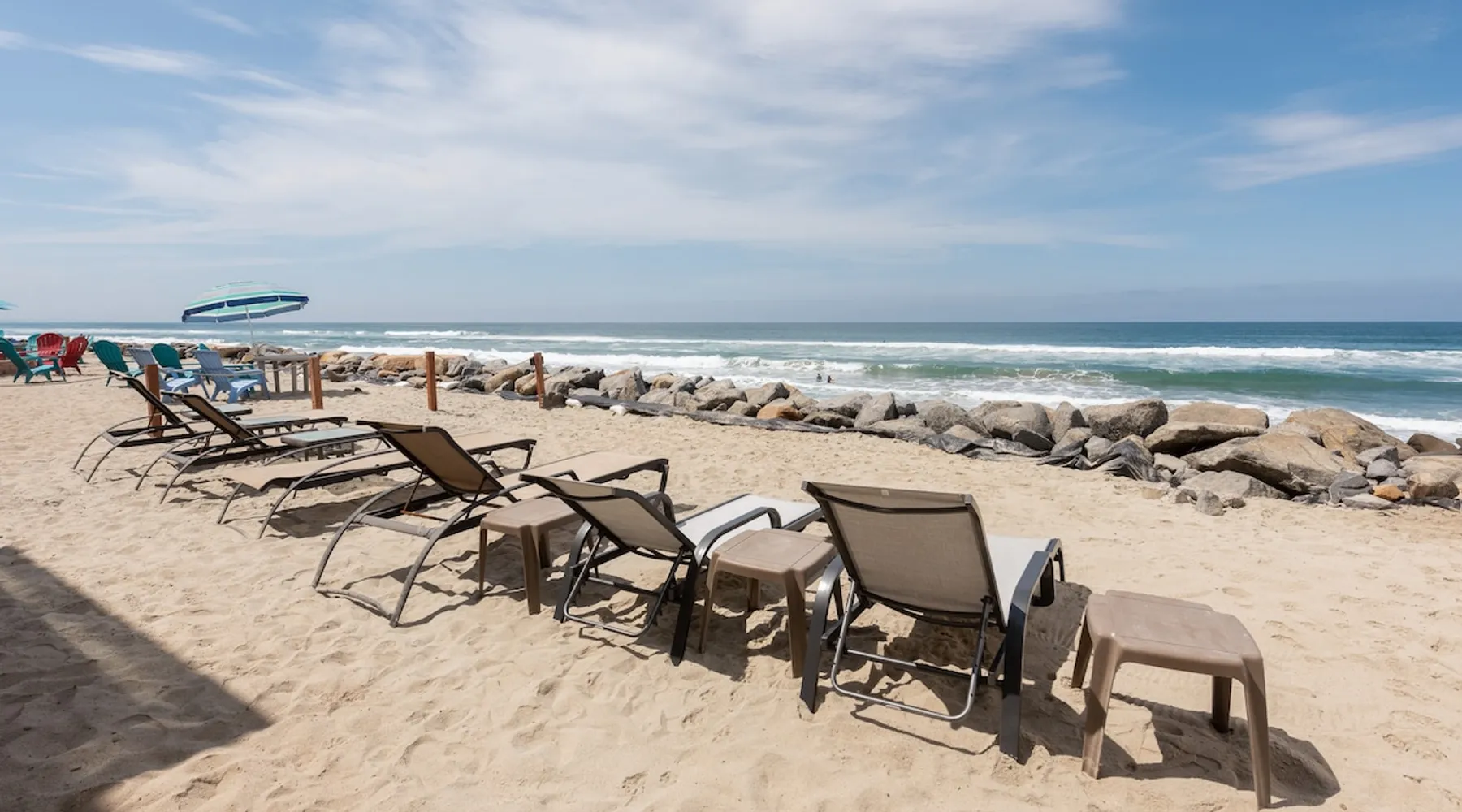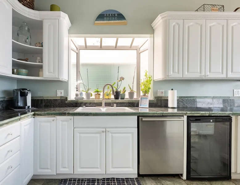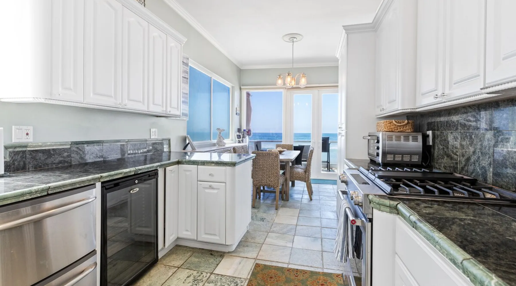 Beautiful ocean sunsets await you from this gorgeous 3 bed 3 bath home right on the sand in South Oceanside! Live in a beautiful home ON the ocean! Swim in the ocean every day, enjoy beautiful sunsets every evening, and fall asleep to the lull of waves splashing every night! The oceanfront deck has a table and chairs for al fresco dining, and just four steps take you down to the beach with a fire pit! Our one car garage and assigned parking space ensures you’ll always have a place to park. A recent renovation features an upgraded kitchen with a Sub-zero refrigerator and new stove, washer and dryer, a fireplace in the living room, 3 flat screen TVs, high speed internet, tumbled marble floors, fresh paint inside & out, beautiful crown molding and custom built cabinetry throughout, custom stained glass windows, and new dual pane windows and doors. The City of Oceanside takes great pride in the results of its recent accomplishments (and ongoing efforts) to create a coastal gem that will soon outlive the town’s reputation as a San Diego best kept secret! The revamped Oceanside Pier area has kiosks that provide everything from ice cream, to bike rentals, to surf gear, to t-shirts! Local restaurants range from hip and trendy, to quaint and family owned- and are available at every budget level. There are pizza stops and coffee shops, martinis bars and craft breweries, ice cream shops and movie theatres, shopping and surfing, locally produced art studios, a farmer’s market by day and street fair with music and a variety of food vendors by night (every Thursday) and of course, a local library! You’ll be over-joyed by the variety of places to choose from, and all within walking distance to your Casa Idea (Dream House) l!! Any one who books through Airbnb acknowledges and