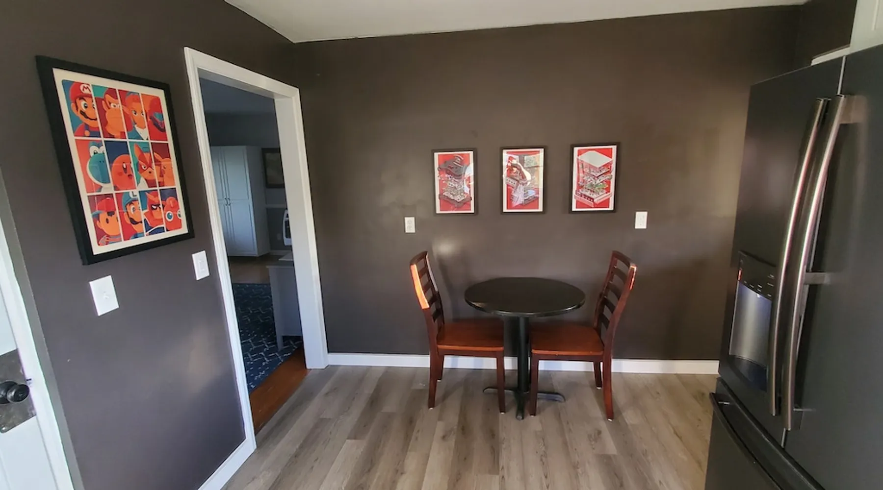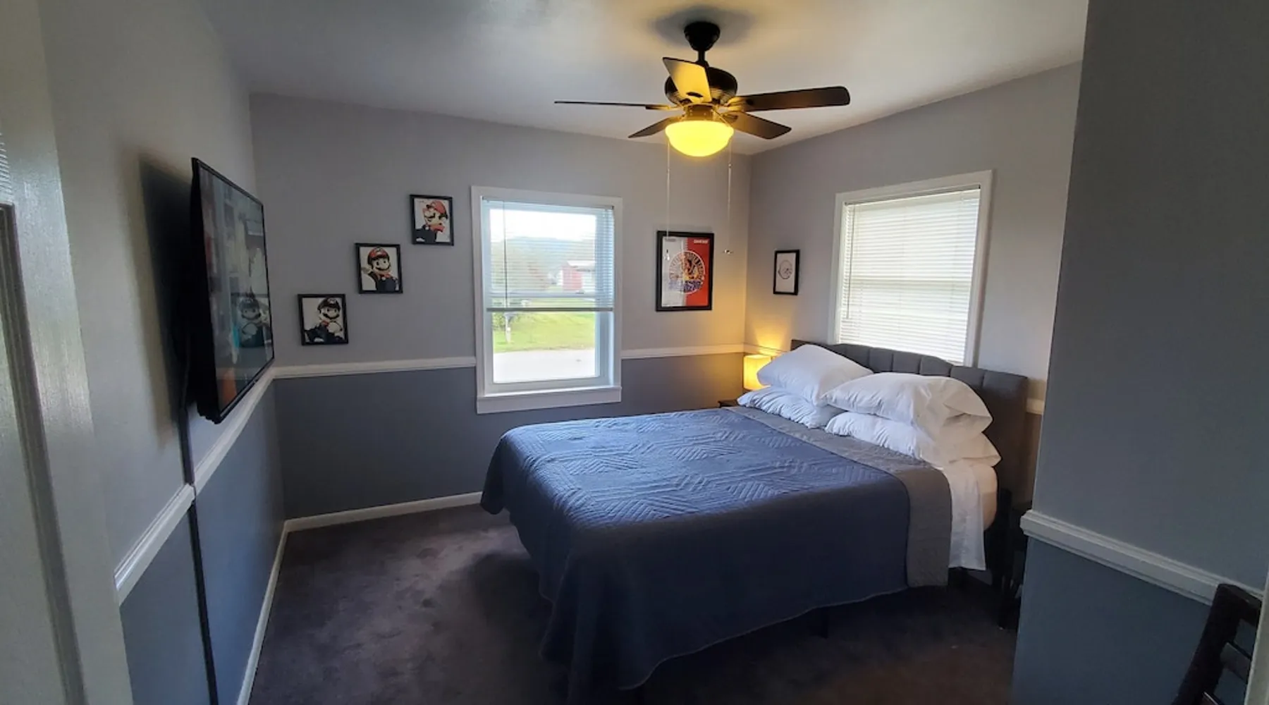 Stay in this one-of-a-kind in-town Airbnb, complete with playful video game themed decorations. Perfect for gaming fans or those seeking a cozy, comfortable stay, the decorations are fun without being overpowering. Fast internet, an outdoor grill, and a big fenced-in yard offer even more comfort and enjoyment. Book your stay today for a unique and memorable experience. The space Both bedrooms have comfortable queen beds and at least one closet and 4k smart TVs. The bedside lamps have outlets and USB ports for charging your devices while you sleep. The living room has a roomy sofa and a large 4k TV for relaxing after your adventures. The newly renovated kitchen is well stocked with cookware and dinnerware, plus some spices, for when you'd prefer to stay in and cook. Our back deck is perfect for sitting outside to enjoy the sun or grill out. The deck overlooks a large fenced-in backyard for your pups to run around in. Guest access There is a carport that will fit one car, and the open driveway comfortably fits two cars. We are available by texting for any questions you may have during your stay. Other things to note There is a mowing service that may need access to the property at times. We'll do our best to give you a heads up if/when that happens. Guests are given two checkout options. By default they have a discounted cleaning fee if they do a short list of checkout instructions. The second option is paying the full standard fee charged by all rentals in the area and guests can leave it as is.