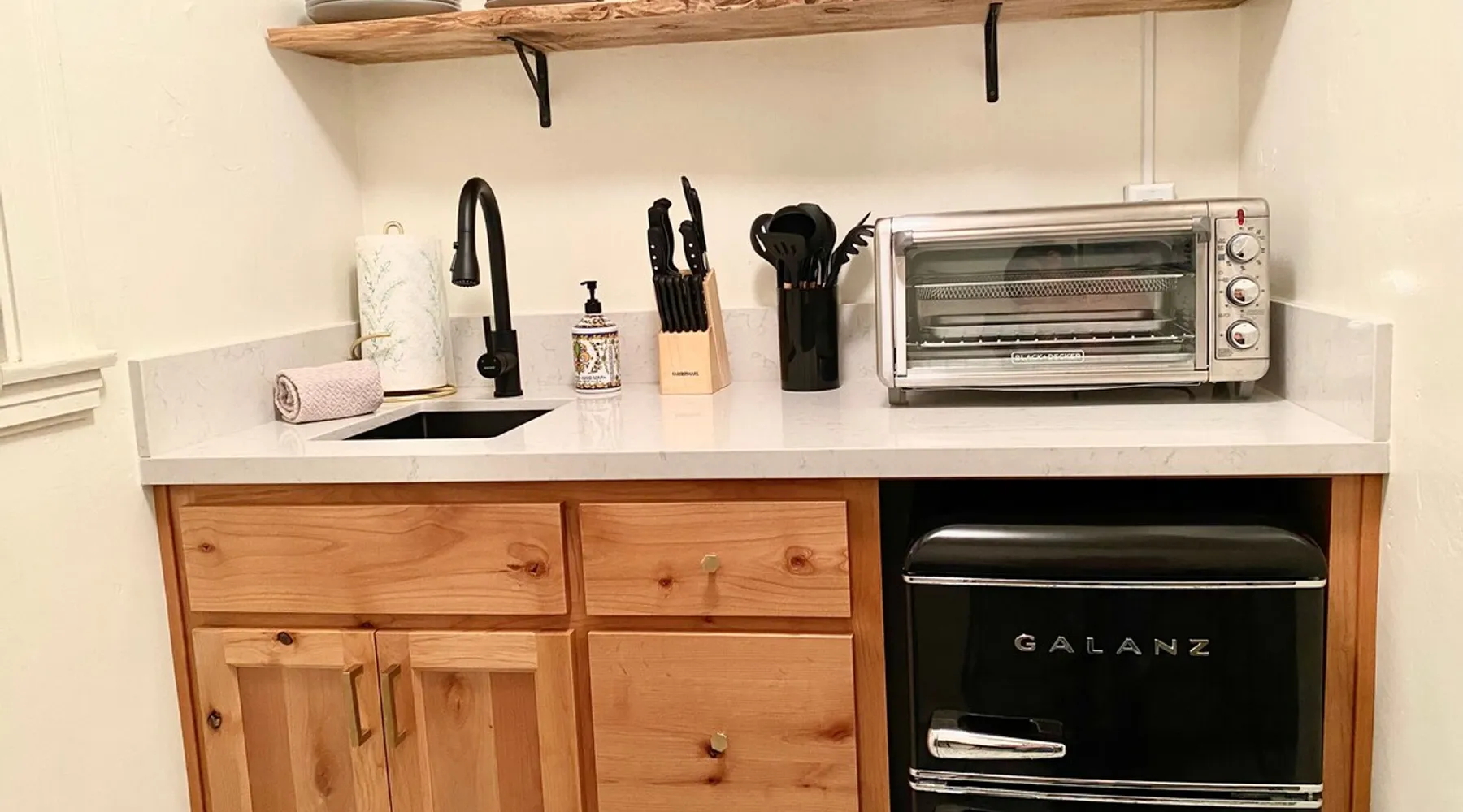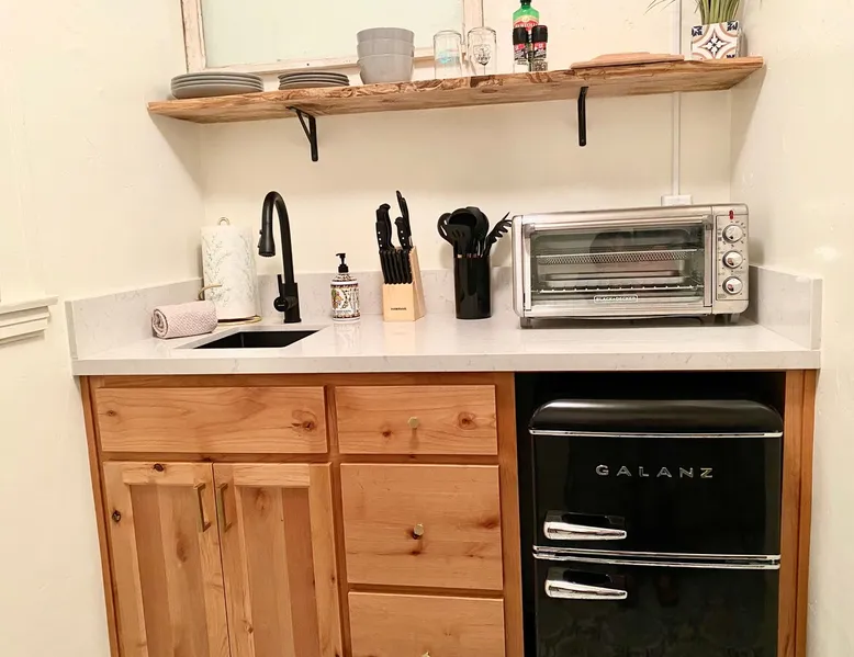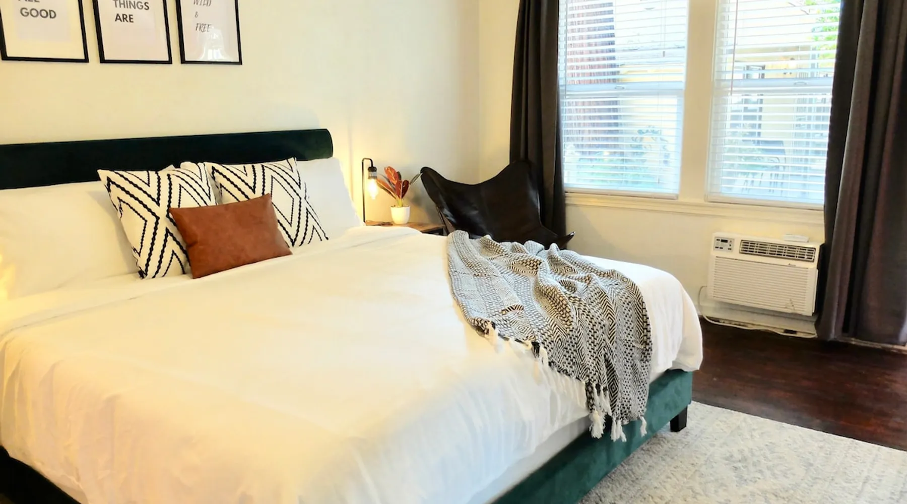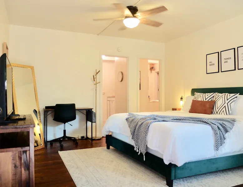 If your dreaming of a Yosemite trip filled with comfort and style along with adventure, then this newly renovated 1938 apartment is waiting for you! Only 32 miles from the 140 entrance to Yosemite, and right in the middle of downtown Mariposa, enjoy walking out your door to amazing restaurants, shops, pubs, and coffee shops- only steps away! Or stick to your budget and cook in the cute little kitchen, fully stocked and ready to go! The space This studio takes a classical hotel room and elevates the space into a cozy, New York City-style studio! Complete with light touches of artwork and greenery, this location has the pleasant feel of an elegant apartment. Upon entry, the raised, foam-mattress, king-sized bed is the most impressive feature of the suite. The above-average sized area also comfortably fits a desk, trendy bedside chair, and well-placed television, perfectly situated for people to relax and watch beloved shows and movies! To the right of the bedroom is a bright bathroom with a tiled, walk-in shower, and to the left is a kitchen area with a bar-top, wall-installed table and two chairs. The compact refrigerator, convection oven/air fryer, hot plates, and other kitchen amenities provide a great space for guests who want to make a few meals on their own to mix things up while on vacation! Other perks of this room include: - WiFi -FireStick TV - A/C and heating unit - large wardrobe mirror - FREE on-site parking (limit: one car) - A perfectly serene location only steps away from fabulous restaurants and local shops. Guest access The entire apartment is yours exclusively. Enter via your own private entrance off the patio. The outside of the building and patio area is common space and will have other people walking by. :) Other things to note 🐾 Pet Policy: pets are permitted with our pet fee. Make sure your pet is accounted for in your booking details to have the fee automatically added to your total. 🚫We request that pets are not allowed on the furniture, or on our linens/towels. 🚫Pets are not to be left unattended in the unit unless they have a crate to stay in. 🅿️ Parking: Our parking lot is very tight, and first come first serve. There is also free street parking nearby if our lot is full or that is more comfortable to you.