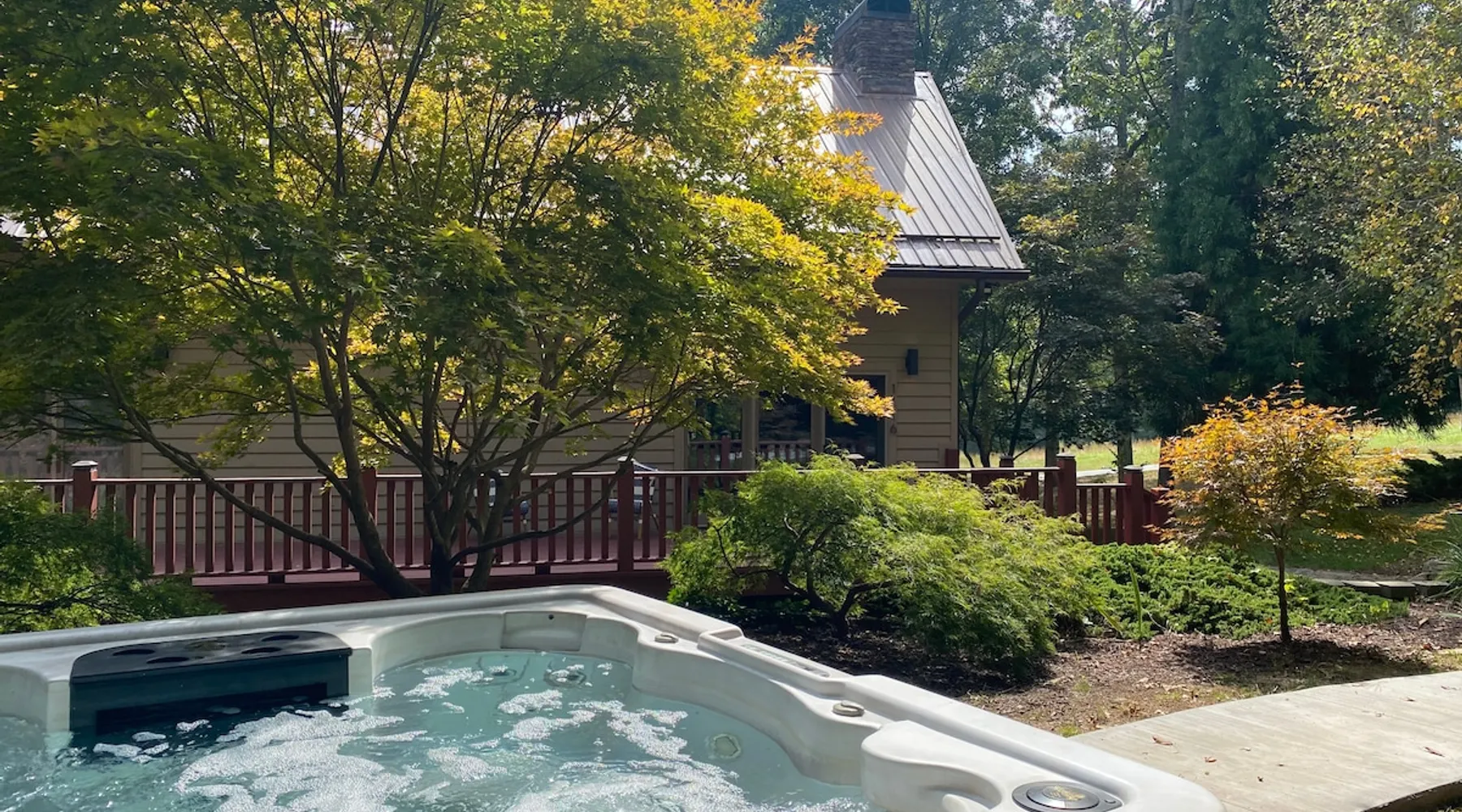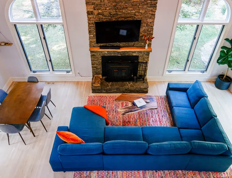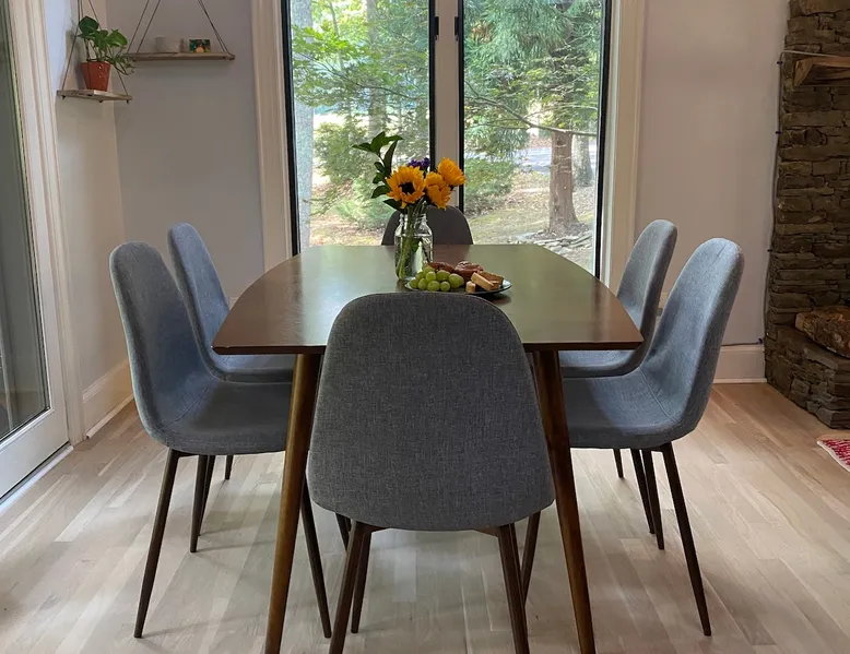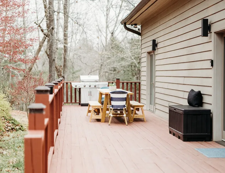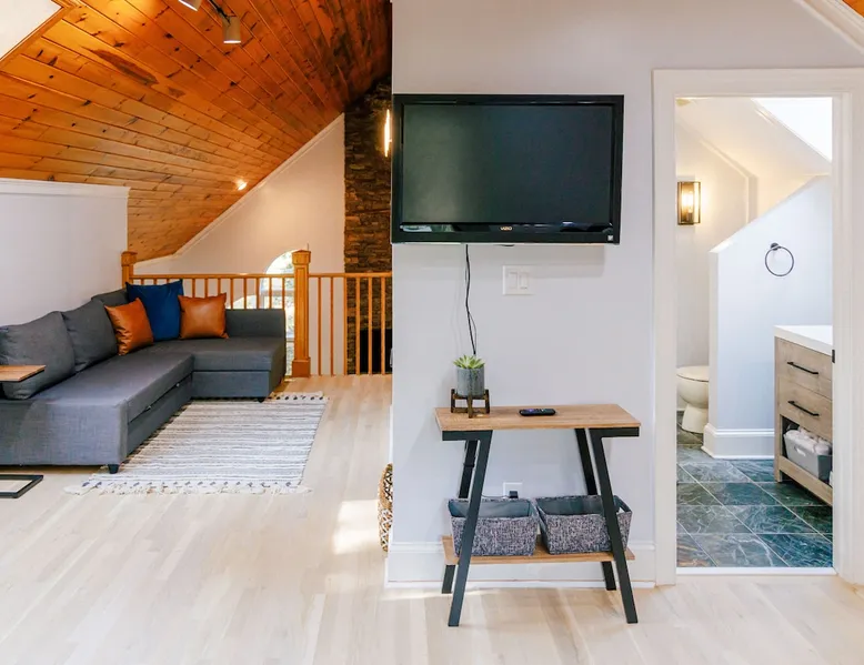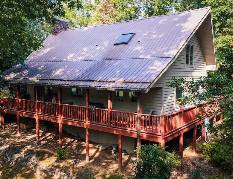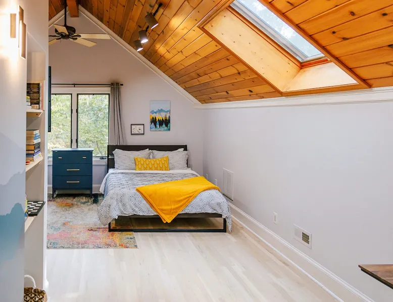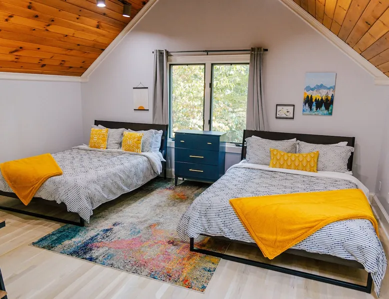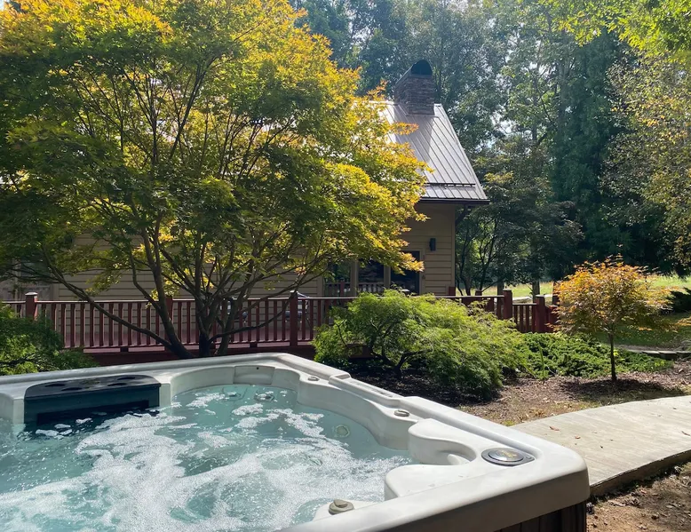 Welcome to The Casa at Halcyon Hills! Relax, explore, or reconnect in and with nature at this 8.5 acre property with rolling pastures and a beautiful barn. Set in the NC Blue Ridge foothills, with easy access to nearby trails, fun family activities, breweries, & wineries. Our 2-story loft-style home with vaulted ceilings, large master suite, & wrap-around porch is perfect for groups of 1-6 and family-friendly! The space Recent updates to the Casa at Halcyon Hills put a mid-century modern spin on this former farmhouse, making it the perfect place to cozy up, reconnect, or explore and play in the North Carolina foothills. The house has been completely refreshed with refinished flooring, new paint and lighting throughout, and modern touches that make your stay safe and comfortable. Inside, you’ll find everything you need for a relaxing stay; - fresh bedding and towels throughout; - sustainable personal care products and cleaners; - a stocked kitchen with everything you need to make meals during your stay; and - extras like smart TVs, USB charging outlets, and books and board games to make your stay fun and relaxing. Free WiFi throughout the house for working or streaming. Note: While our WiFi connection is good, it may not be sufficient for more than 2-3 work/school videoconferences simultaneously. The Casa at Halcyon Hills is a two-story, loft-style home. The 26' tall great room boasts a beautiful stacked-stone floor-to-ceiling fireplace with salvaged wood mantle and large 55" Roku smart tv. The generously sized couch is perfect for cozying up by the fire, afternoon naps, or movies with the entire family (easily seats 6+), and a custom live-edge coffee table. An open kitchen and dining layout and wrap-around porch make it easy to dine and entertain inside or out. The pantry comes stocked with basic cleaning supplies and a washer and dryer is available for use during your stay (Eco-Friendly Dropps detergent provided). The Master Suite is a stunning retreat with double doors onto the porch, a large walk-in shower, multiple closets, 55" 4k Roku smart tv, custom quartz vanity, and jacuzzi tub with picture window, perfect for enjoying the foliage year-round. Upstairs, the loft includes a lounge area with pull-out couch, mini library stocked with books for all ages, and games. Farther in, you’ll find two comfortable queen-size memory-foam beds, and a second full bath with a skylight and walk-in shower. Note: the loft area is not fully enclosed, but the beds are both tucked away from the landing for privacy. Fully covered porch on one side with outdoor seating, wrapping around to large open porch on the front custom built 10' outdoor dining table. Just a few steps away, a winding path takes you to an 8 person hot tub, nestled amongst mature Japanese Maples. Visitors can also warm up on cool nights by our outdoor fire pit under the stars or take a stroll through our 8+ acre pasture or along the creek at the entrance to the property. We hope you enjoy your time at Halcyon Hills, and look forward to sharing this beautiful space with you. Guest access Lockbox entry on main level. Guests have access to the entire main house as well as the 8+ acre pasture. Please refrain from accessing the Bunkhouse (it’s currently storage only). The Barn may be accessed, but please use caution as it’s not currently in use. Keep in mind that there may be guests in our Tiny Home (The Grackle) during your stay. Any amenities at the main house are reserved for Casa guests only. If needed for space or weather reasons, we have provided overflow parking next to the pasture gate just off the circular driveway, but all efforts have been made to ensure that guests at both locations have sufficient space and privacy to enjoy their stays. A few additional notes on accessibility. The Casa at Halcyon Hill has steps leading up to both the front door and the covered side porch. Guests must be comfortable with walking up and down stairs to access the house. The main driveway is paved and leads to a circular driveway at the front of the house, along with a new cement pathway to the hot tub, but other areas are natural and may be rocky or wooded. WARNING - Please use caution when walking around the property as animals, bugs, and brush may present hazards. Additionally, please use caution when near or in the Barn area. There is a small ladder leading up to a loft area. Visitors are responsible for understanding the safety risks posed by the use of this ladder, and will indemnify and hold harmless Halcyon Hills and its owners/operators for any injuries received as a result of use of the ladder and/or attempts to access/use the loft in the Barn. Other things to note The Casa at Halcyon Hills is dog-friendly! We allow 1-2 house-trained, well-behaved pups with advance notice and prior approval. There is an additional $75 flat pet fee (for cleaning) per stay. While inclimate weather isn’t common in Valdese, please note that the roads in our neighborhood and the driveway are a bit steep - if roads are icy or snowy please use caution and drive slowly when traveling to and from The Casa. Wherever possible, we strive to be sustainable at Halcyon Hills. Many of our items are vintage, salvaged, or repurposed. We also provide some basic sustainable cleaning and personal use products for your stay. We do have curbside recycling available, so please try to recycle any appropriate materials during your stay to help us limit unnecessary waste. Additional details on recycling are provided in our Guest Handbook. This property is shared with a second listing (a Tiny Home) which is set out in the pasture. While the main driveway provides shared access to both listings, parking and all amenities are distinct and not shared with the second listing.
