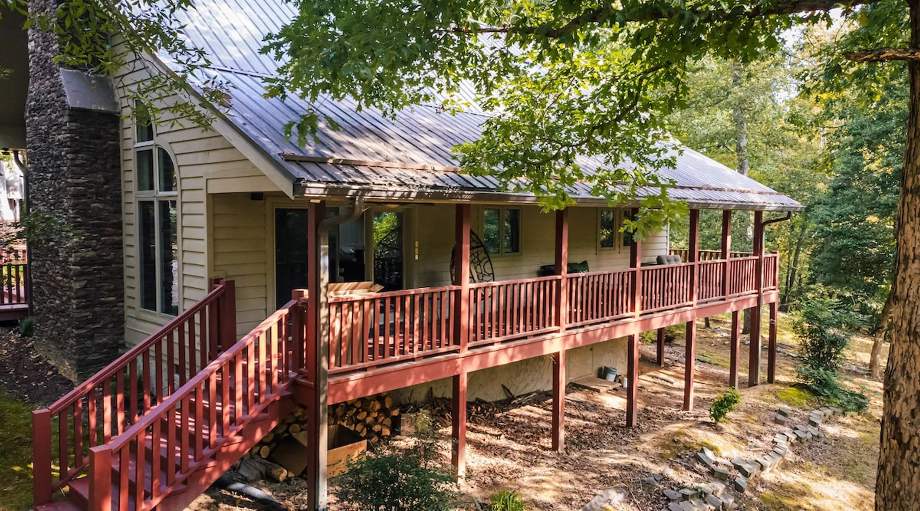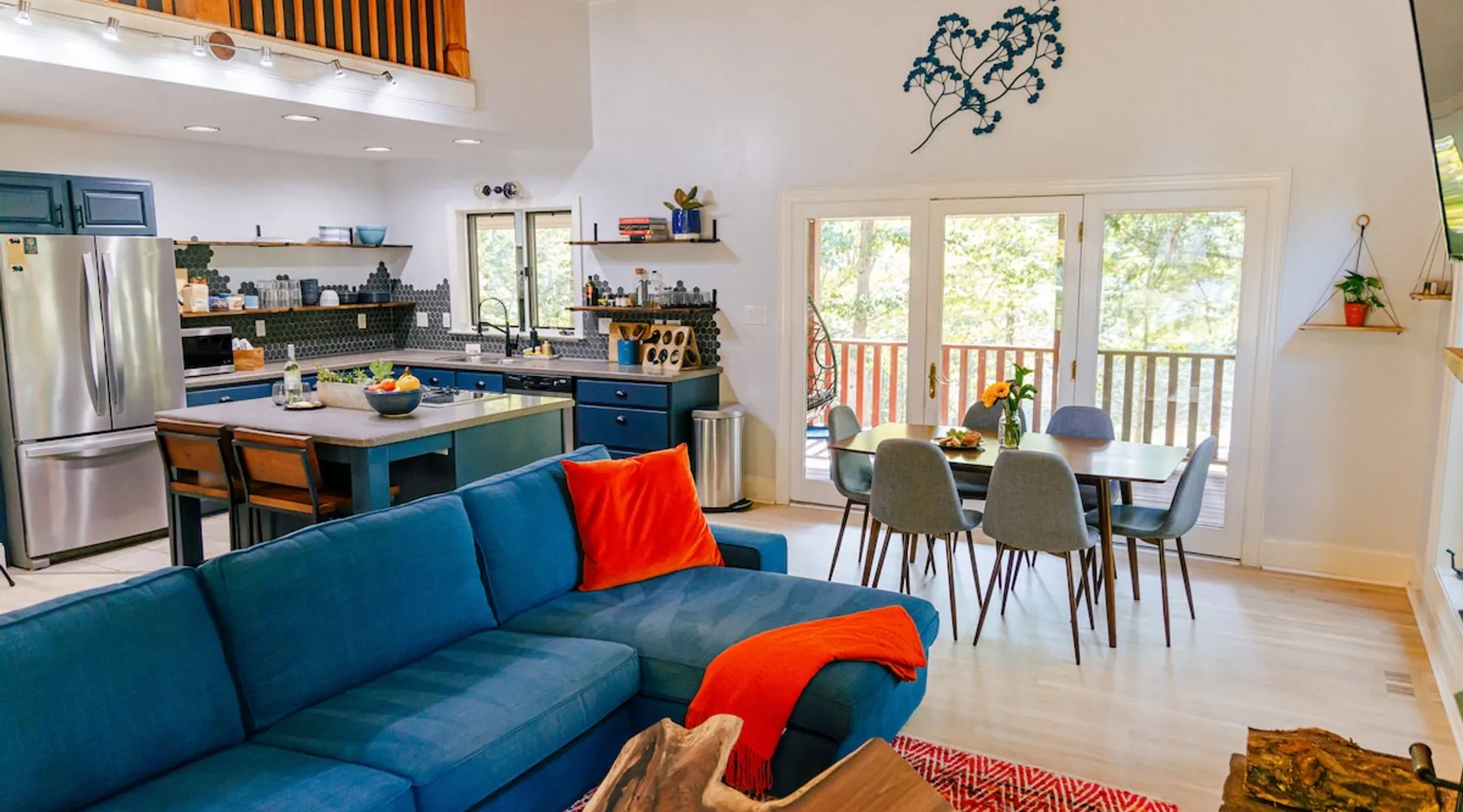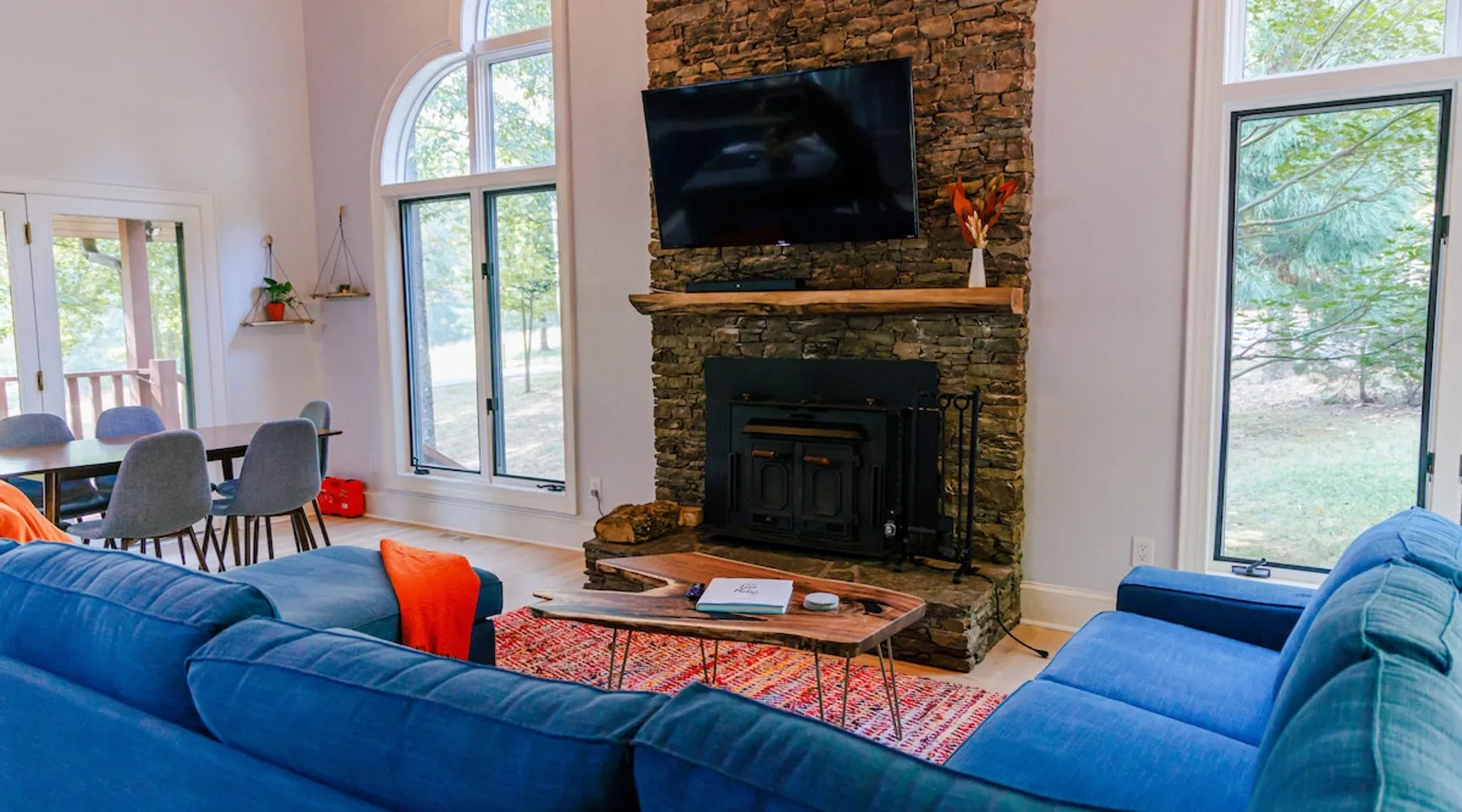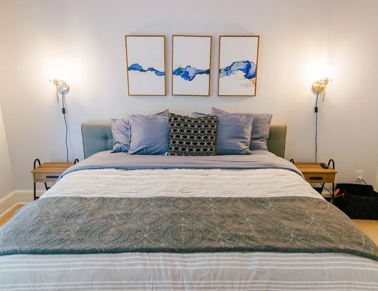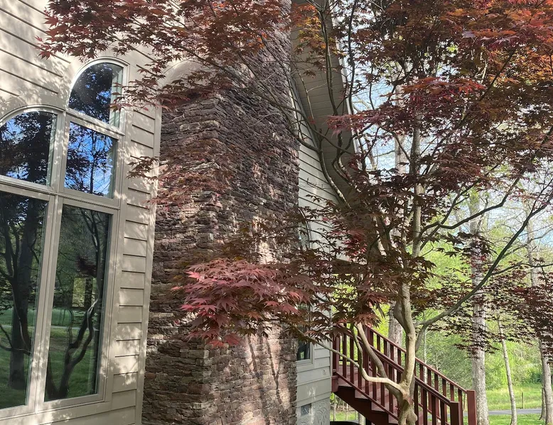 Welcome to The Casa at Halcyon Hills! Relax, explore, or reconnect in and with nature at this 8.5 acre property with rolling pastures and a beautiful barn. Set in the NC Blue Ridge foothills, with easy access to nearby trails, fun family activities, breweries, & wineries. Our 2-story loft-style home with vaulted ceilings, large master suite, & wrap-around porch is perfect for groups of 1-6 and family-friendly! The space Recent updates to the Casa at Halcyon Hills put a mid-century modern spin on this former farmhouse, making it the perfect place to cozy up, reconnect, or explore and play in the North Carolina foothills. The house has been completely refreshed with refinished flooring, new paint and lighting throughout, and modern touches that make your stay safe and comfortable. Inside, you’ll find everything you need for a relaxing stay; - fresh bedding and towels throughout; - sustainable personal care products and cleaners; - a stocked kitchen with everything you need to make meals during your stay; and - extras like smart TVs, USB charging outlets, and books and board games to make your stay fun and relaxing. Free WiFi throughout the house for working or streaming. Note: While our WiFi connection is good, it may not be sufficient for more than 2-3 work/school videoconferences simultaneously. The Casa at Halcyon Hills is a two-story, loft-style home. The 26' tall great room boasts a beautiful stacked-stone floor-to-ceiling fireplace with salvaged wood mantle and large 55" Roku smart tv. The generously sized couch is perfect for cozying up by the fire, afternoon naps, or movies with the entire family (easily seats 6+), and a custom live-edge coffee table. An open kitchen and dining layout and wrap-around porch make it easy to dine and entertain inside or out. The pantry comes stocked with basic cleaning supplies and a washer and dryer is available for use during your stay (Eco-Friendly Dropps detergent provided). The Master Suite is a stunning retreat with double doors onto the porch, a large walk-in shower, multiple closets, 55" 4k Roku smart tv, custom quartz vanity, and jacuzzi tub with picture window, perfect for enjoying the foliage year-round. Upstairs, the loft includes a lounge area with pull-out couch, mini library stocked with books for all ages, and games. Farther in, you’ll find two comfortable queen-size memory-foam beds, and a second full bath with a skylight and walk-in shower. Note: the loft area is not fully enclosed, but the beds are both tucked away from the landing for privacy. Fully covered porch on one side with outdoor seating, wrapping around to large open porch on the front custom built 10' outdoor dining table. Just a few steps away, a winding path takes you to an 8 person hot tub, nestled amongst mature Japanese Maples. Visitors can also warm up on cool nights by our outdoor fire pit under the stars or take a stroll through our 8+ acre pasture or along the creek at the entrance to the property. We hope you enjoy your time at Halcyon Hills, and look forward to sharing this beautiful space with you. Guest access Lockbox entry on main level. Guests have access to the entire main house as well as the 8+ acre pasture. Please refrain from accessing the Bunkhouse (it’s currently storage only). The Barn may be accessed, but please use caution as it’s not currently in use. Keep in mind that there may be guests in our Tiny Home (The Grackle) during your stay. Any amenities at the main house are reserved for Casa guests only. If needed for space or weather reasons, we have provided overflow parking next to the pasture gate just off the circular driveway, but all efforts have been made to ensure that guests at both locations have sufficient space and privacy to enjoy their stays. A few additional notes on accessibility. The Casa at Halcyon Hill has steps leading up to both the front door and the covered side porch. Guests must be comfortable with walking up and down stairs to access the house. The main driveway is paved and leads to a circular driveway at the front of the house, along with a new cement pathway to the hot tub, but other areas are natural and may be rocky or wooded. WARNING - Please use caution when walking around the property as animals, bugs, and brush may present hazards. Additionally, please use caution when near or in the Barn area. There is a small ladder leading up to a loft area. Visitors are responsible for understanding the safety risks posed by the use of this ladder, and will indemnify and hold harmless Halcyon Hills and its owners/operators for any injuries received as a result of use of the ladder and/or attempts to access/use the loft in the Barn. Other things to note The Casa at Halcyon Hills is dog-friendly! We allow 1-2 house-trained, well-behaved pups with advance notice and prior approval. There is an additional $75 flat pet fee (for cleaning) per stay. While inclimate weather isn’t common in Valdese, please note that the roads in our neighborhood and the driveway are a bit steep - if roads are icy or snowy please use caution and drive slowly when traveling to and from The Casa. Wherever possible, we strive to be sustainable at Halcyon Hills. Many of our items are vintage, salvaged, or repurposed. We also provide some basic sustainable cleaning and personal use products for your stay. We do have curbside recycling available, so please try to recycle any appropriate materials during your stay to help us limit unnecessary waste. Additional details on recycling are provided in our Guest Handbook. This property is shared with a second listing (a Tiny Home) which is set out in the pasture. While the main driveway provides shared access to both listings, parking and all amenities are distinct and not shared with the second listing.