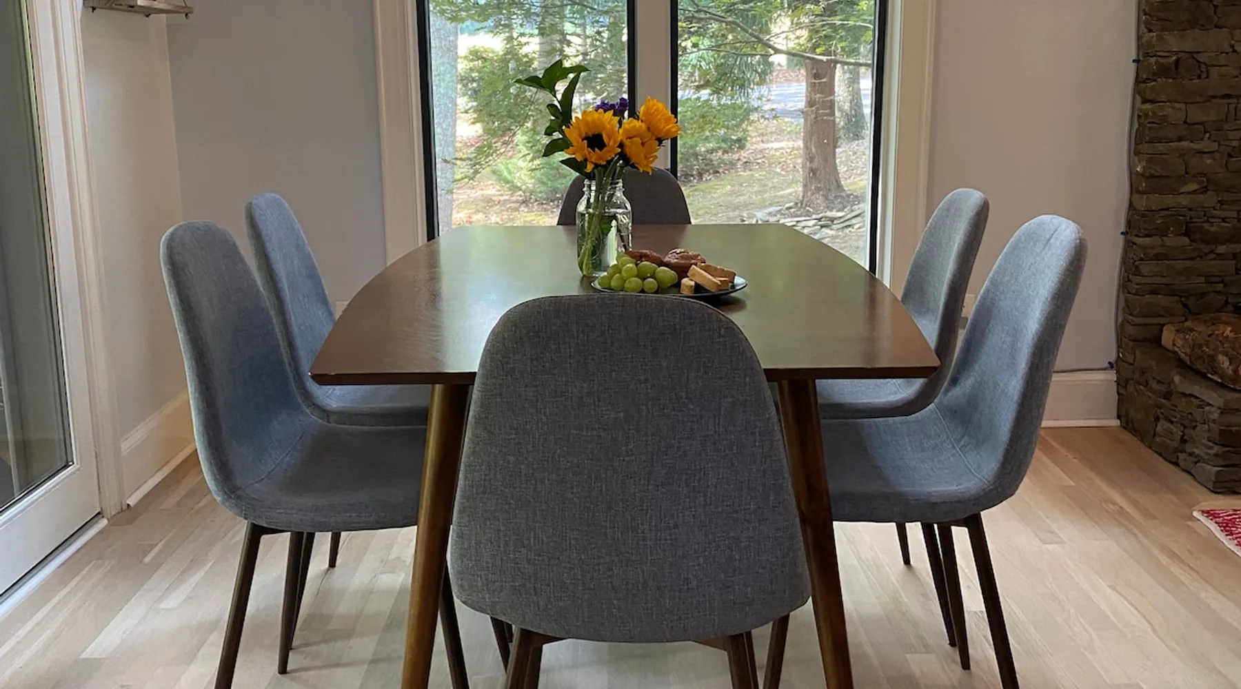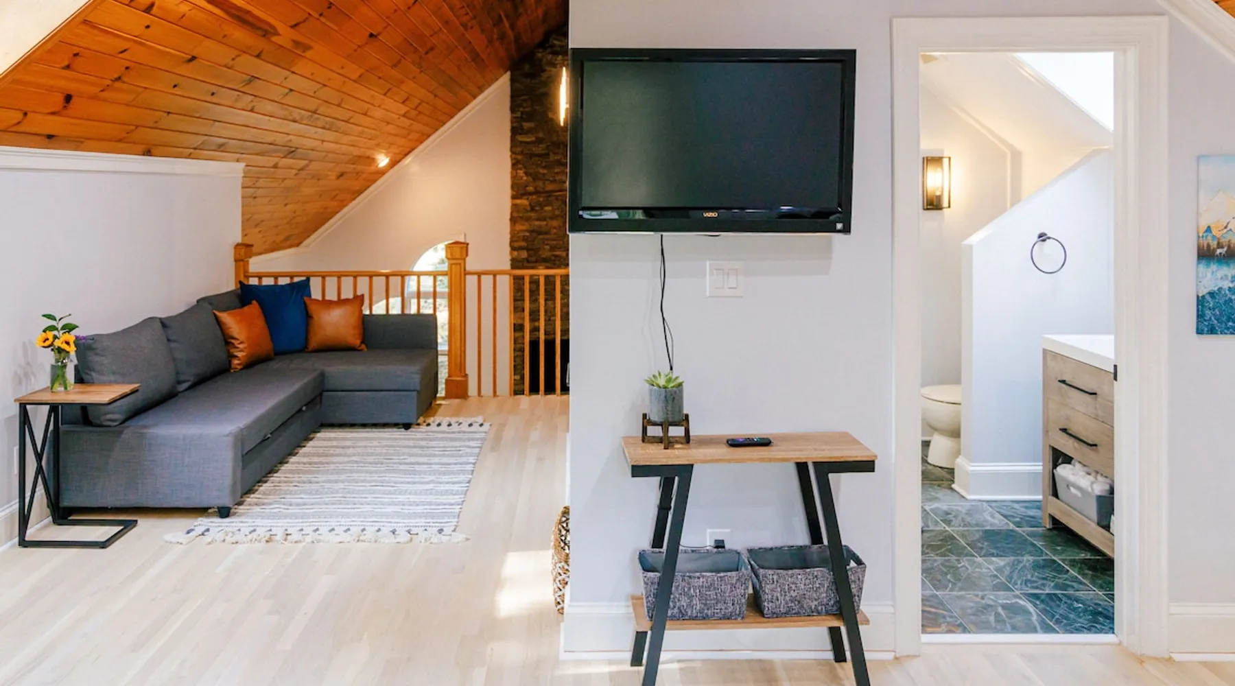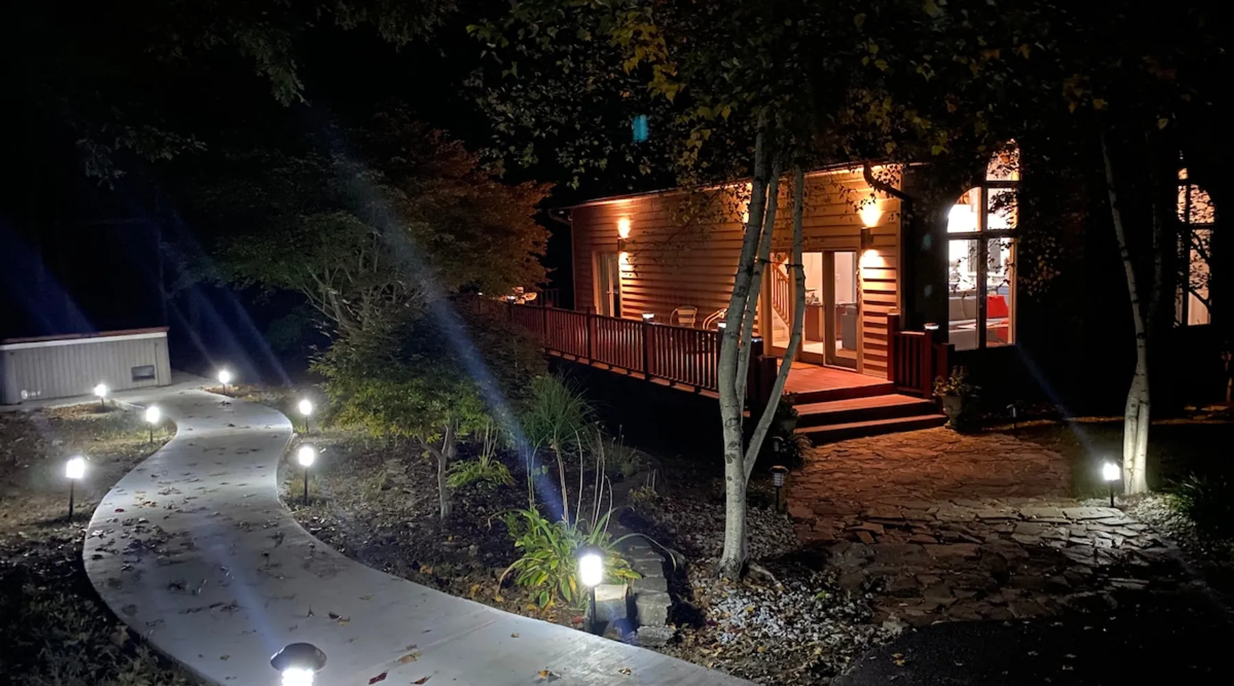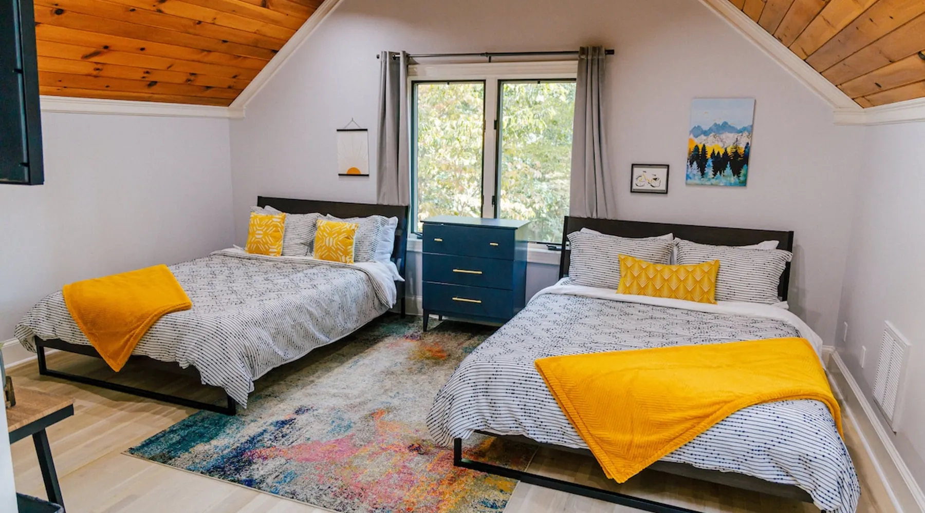 Welcome to The Casa at Halcyon Hills! Relax, explore, or reconnect in and with nature at this 8.5 acre property with rolling pastures and a beautiful barn. Set in the NC Blue Ridge foothills, with easy access to nearby trails, fun family activities, breweries, & wineries. Our 2-story loft-style home with vaulted ceilings, large master suite, & wrap-around porch is perfect for groups of 1-6 and family-friendly! The space Recent updates to the Casa at Halcyon Hills put a mid-century modern spin on this former farmhouse, making it the perfect place to cozy up, reconnect, or explore and play in the North Carolina foothills. The house has been completely refreshed with refinished flooring, new paint and lighting throughout, and modern touches that make your stay safe and comfortable. Inside, you’ll find everything you need for a relaxing stay; - fresh bedding and towels throughout; - sustainable personal care products and cleaners; - a stocked kitchen with everything you need to make meals during your stay; and - extras like smart TVs, USB charging outlets, and books and board games to make your stay fun and relaxing. Free WiFi throughout the house for working or streaming. Note: While our WiFi connection is good, it may not be sufficient for more than 2-3 work/school videoconferences simultaneously. The Casa at Halcyon Hills is a two-story, loft-style home. The 26' tall great room boasts a beautiful stacked-stone floor-to-ceiling fireplace with salvaged wood mantle and large 55" Roku smart tv. The generously sized couch is perfect for cozying up by the fire, afternoon naps, or movies with the entire family (easily seats 6+), and a custom live-edge coffee table. An open kitchen and dining layout and wrap-around porch make it easy to dine and entertain inside or out. The pantry comes stocked with basic cleaning supplies and a washer and dryer is available for use during your stay (Eco-Friendly Dropps detergent provided). The Master Suite is a stunning retreat with double doors onto the porch, a large walk-in shower, multiple closets, 55" 4k Roku smart tv, custom quartz vanity, and jacuzzi tub with picture window, perfect for enjoying the foliage year-round. Upstairs, the loft includes a lounge area with pull-out couch, mini library stocked with books for all ages, and games. Farther in, you’ll find two comfortable queen-size memory-foam beds, and a second full bath with a skylight and walk-in shower. Note: the loft area is not fully enclosed, but the beds are both tucked away from the landing for privacy. Fully covered porch on one side with outdoor seating, wrapping around to large open porch on the front custom built 10' outdoor dining table. Just a few steps away, a winding path takes you to an 8 person hot tub, nestled amongst mature Japanese Maples. Visitors can also warm up on cool nights by our outdoor fire pit under the stars or take a stroll through our 8+ acre pasture or along the creek at the entrance to the property. We hope you enjoy your time at Halcyon Hills, and look forward to sharing this beautiful space with you. Guest access Lockbox entry on main level. Guests have access to the entire main house as well as the 8+ acre pasture. Please refrain from accessing the Bunkhouse (it’s currently storage only). The Barn may be accessed, but please use caution as it’s not currently in use. Keep in mind that there may be guests in our Tiny Home (The Grackle) during your stay. Any amenities at the main house are reserved for Casa guests only. If needed for space or weather reasons, we have provided overflow parking next to the pasture gate just off the circular driveway, but all efforts have been made to ensure that guests at both locations have sufficient space and privacy to enjoy their stays. A few additional notes on accessibility. The Casa at Halcyon Hill has steps leading up to both the front door and the covered side porch. Guests must be comfortable with walking up and down stairs to access the house. The main driveway is paved and leads to a circular driveway at the front of the house, along with a new cement pathway to the hot tub, but other areas are natural and may be rocky or wooded. WARNING - Please use caution when walking around the property as animals, bugs, and brush may present hazards. Additionally, please use caution when near or in the Barn area. There is a small ladder leading up to a loft area. Visitors are responsible for understanding the safety risks posed by the use of this ladder, and will indemnify and hold harmless Halcyon Hills and its owners/operators for any injuries received as a result of use of the ladder and/or attempts to access/use the loft in the Barn. Other things to note The Casa at Halcyon Hills is dog-friendly! We allow 1-2 house-trained, well-behaved pups with advance notice and prior approval. There is an additional $75 flat pet fee (for cleaning) per stay. While inclimate weather isn’t common in Valdese, please note that the roads in our neighborhood and the driveway are a bit steep - if roads are icy or snowy please use caution and drive slowly when traveling to and from The Casa. Wherever possible, we strive to be sustainable at Halcyon Hills. Many of our items are vintage, salvaged, or repurposed. We also provide some basic sustainable cleaning and personal use products for your stay. We do have curbside recycling available, so please try to recycle any appropriate materials during your stay to help us limit unnecessary waste. Additional details on recycling are provided in our Guest Handbook. This property is shared with a second listing (a Tiny Home) which is set out in the pasture. While the main driveway provides shared access to both listings, parking and all amenities are distinct and not shared with the second listing.