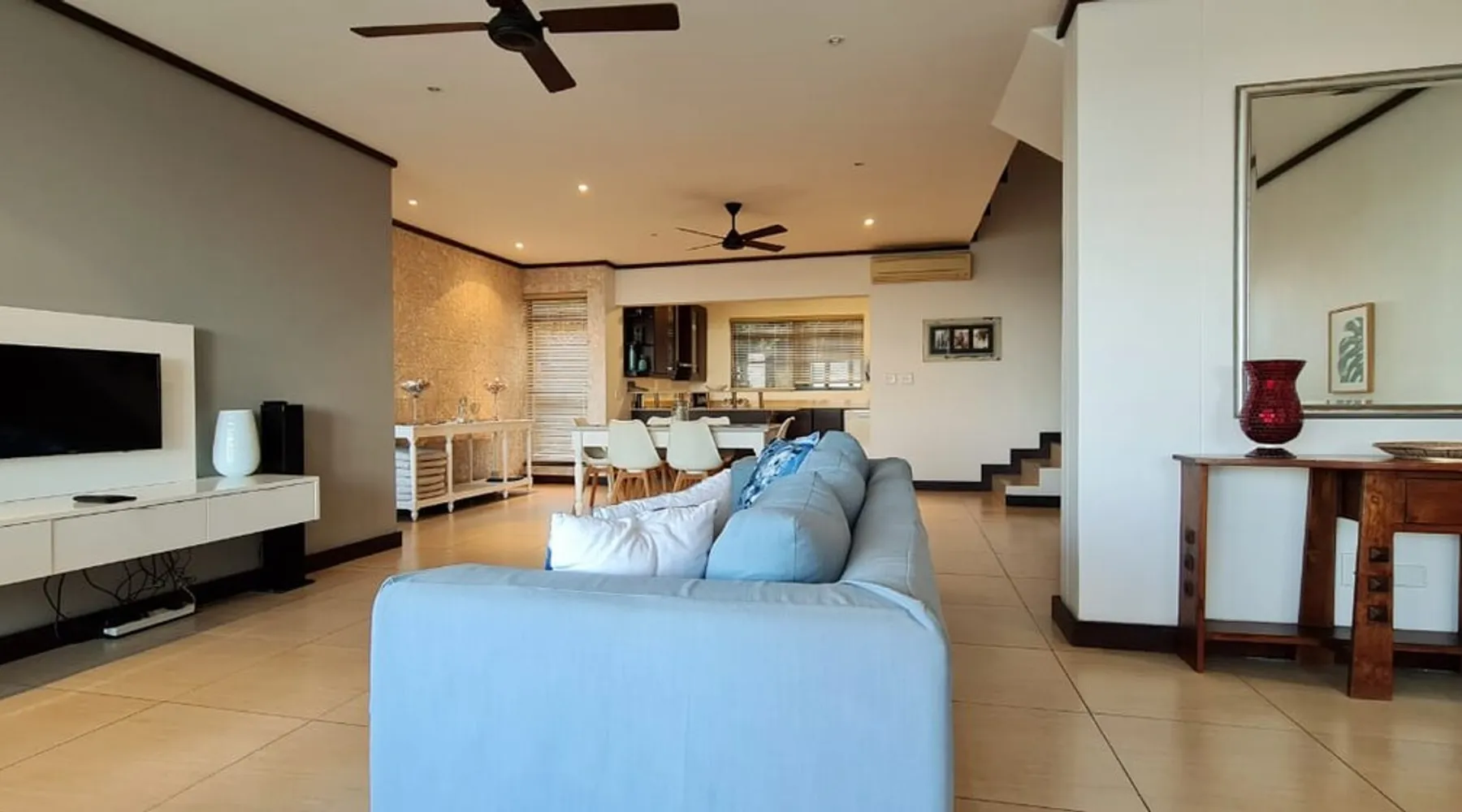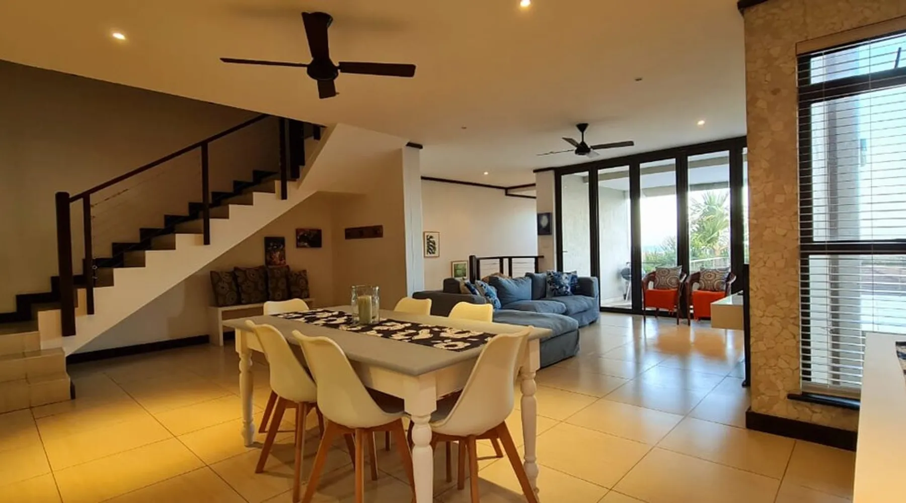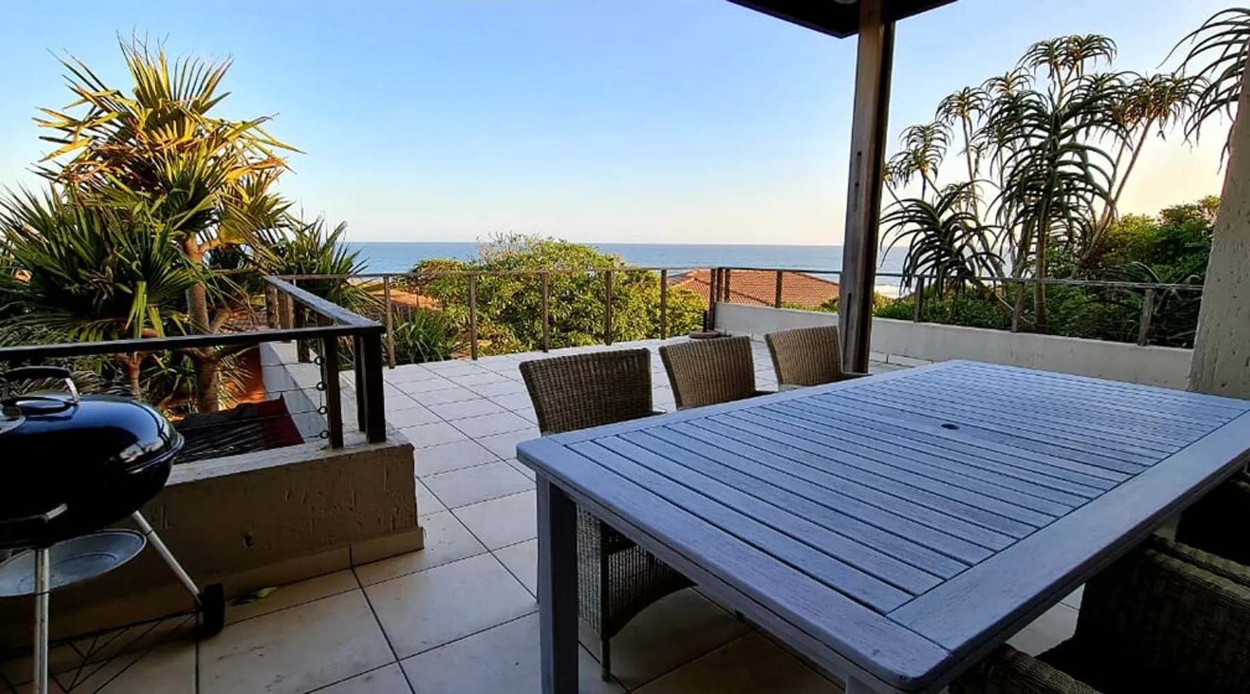 This beautiful pet friendly unit boasts 3 large bedrooms that can sleep 6. This unit is fully equipped with all amenities and offers spectacular sea views from both levels of the home. Wake up and have a coffee on the balcony off the main room or sip on your sun downers on the patio with the Braai going while the whales and dolphins frolic by. This unit is set in the quiet and quaint Estate that offers 24hr Security. Direct private beach access. Communal pool and Inverter for load shedding. The space The home is a 3 story apartment, Entrance hall , front door and double garage on the bottom flow. Middle floor is the kitchen , lounge dining,Guest bathroom and outside balcony with Weber Braai. Top floor boasts 3 bedroom. Main room is en-suite with Bath and shower. Second and Third bedroom share a bathroom that also has a bath and shower. Guest access There is a double lock up garage and space for 1 vehicle in front of the garage. PLEASE ALSO TAKE NOTE THE LOCAL SHOP IN BLYTHEDALE HAS A VERY BASIC OFFERING. SALT ROCK (15 MIN AWAY) TIFFANY SPAR AND BALLITO (20 MIN AWAY) JUNCTION MALL AND LIFESTYLE CENTRE, KWADUKUZA MALL (ABOUT 8KM'S AWAY),ALSO IF YOU NEED FUEL THE CLOSEST SHELL GARAGE IS AT THE UMVOTI TOLL PLAZA WHICH IS ABOUT 15KM’S BEFORE BLYTHEDALE OR IN STANGER WHICH IS ABOUT8KM’S AWAY FROM BLYTHEDALE.