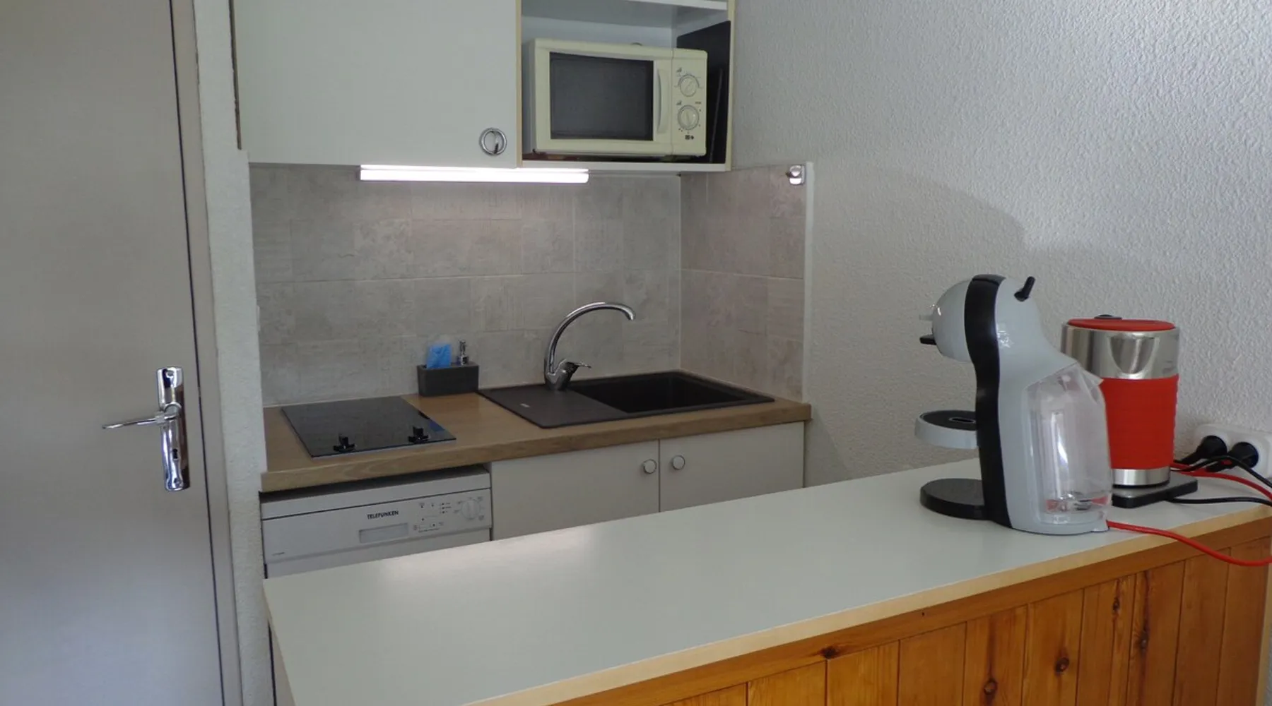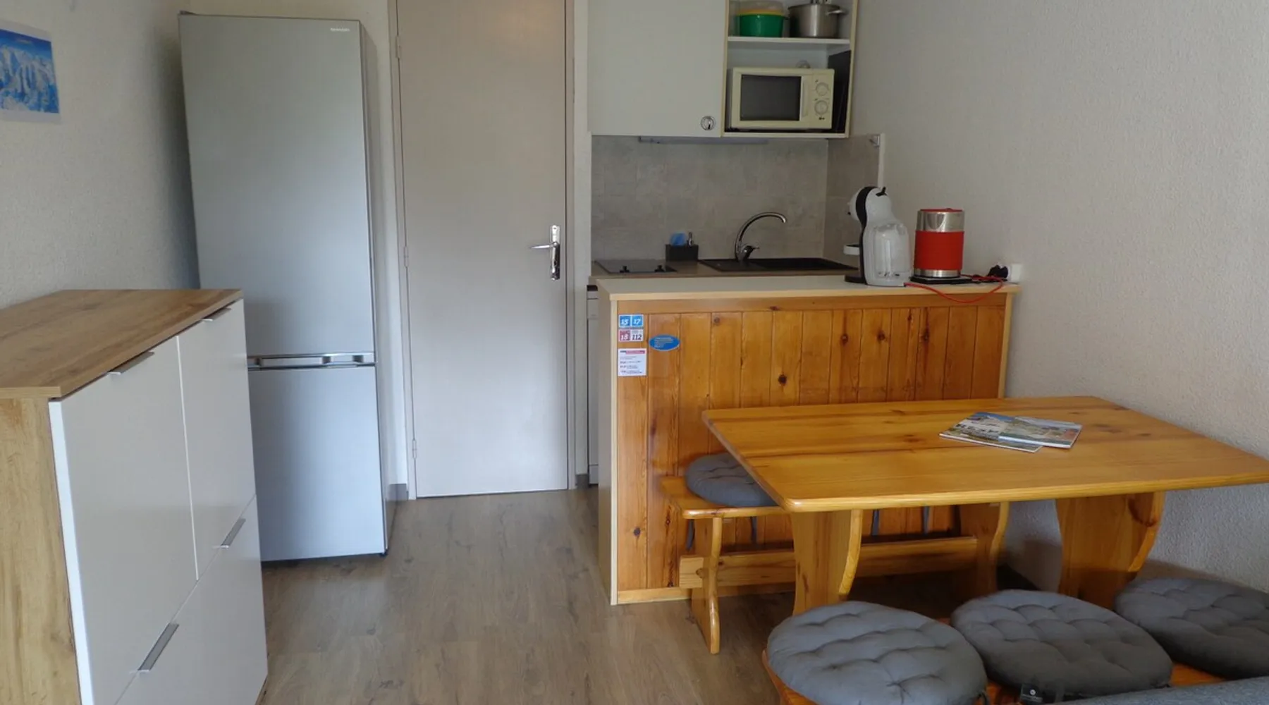 La Foux d'Allos Charming classified studio, quiet and perfectly located at the sources of Verdon. In a secure residence, in a green setting but close to all amenities, this upstairs studio with balcony (snow floor + 2) facing south and not overlooked offers a very pleasant view of the surrounding peaks. Long stays: 70% discount The space Welcome to Val d 'Allos! This 21 m2 furnished tourist accommodation benefits from a privileged location, a little away from crowds but close to shops, tourist infrastructure and road connections. Its balcony overlooks a green space and offers a superb panorama of the Verdon and the mountain peaks. The apartment is composed of a living-dining room with sofa bed with express opening and closing convertible, "mountain corner" equipped with bunk beds, kitchenette, bathroom with shower cabin and separate toilet. It is equipped with double glazing and inertial radiators with electronic control. It also has its dedicated internet access as well as a connected TV. It's a great pied-a-terre for sightseeing, relaxing, or working stays. Appliances: combined fridge-freezer, dishwasher, microwave, Dolce Gusto multi-drink coffee maker, kettle, iron, vacuum cleaner Bedding: 1 mattress 140 and 2 mattresses 70. Consider bringing your own sheets and pillowcases! You can also contact Laundry Poseidon which provides you with a bed linen and towel rental service. See website for details. For the sake of quality of service and guarantee of cleanliness, cleaning and preparation of the accommodation are included in the price. Snow ground floor ski locker Guest access Different shops including a convenience store (in season) and a restaurant with terrace welcome you at the foot of the building. Laundry on site in season and laundromat "Bulle Doseur" open all year in La Foux d 'Allos A play area (billiards, shuffleboard) accessible for all. Parking: Large secure parking at the foot of the building Nearby: "Marin Pascal" chairlift, "Verdon Express" multi-season rail sledding, hiking trails, free internal shuttle from Val d 'Allos - La Foux A few minutes from the center of La Foux d 'Allos 10 minutes by car from Allos village and Le Seignus ski area This accommodation is not suitable for people with reduced mobility Other things to note Accommodation limited to 2 adults and 2 children This furnished tourist accommodation is classified, which significantly reduces the amount of the tourist tax (-80%). Power consumption: Guests are kindly requested to behave responsibly in the use of energy supplies. A supplement will be applied in case of excessive consumption: an average of 20 kWh/day, in relation to the surface area of the accommodation, its location and amenities, is included in the rental price. Please review the terms and conditions set forth under "House Rules", which are deemed accepted at the time of booking this accommodation. Registration Details 04006 000061 0G