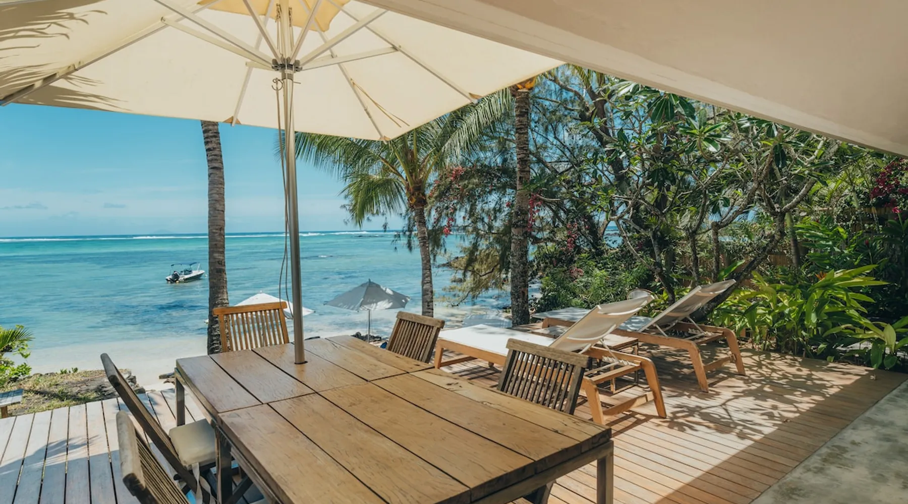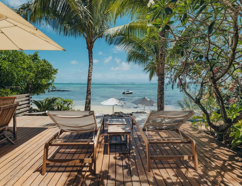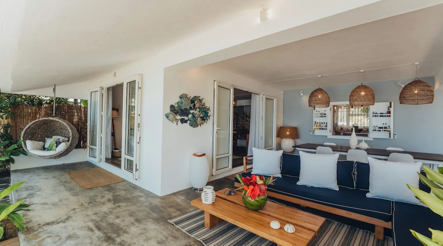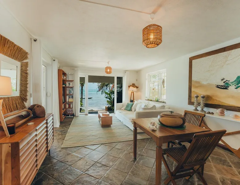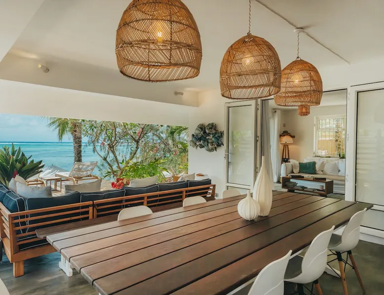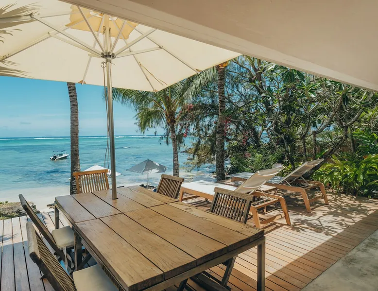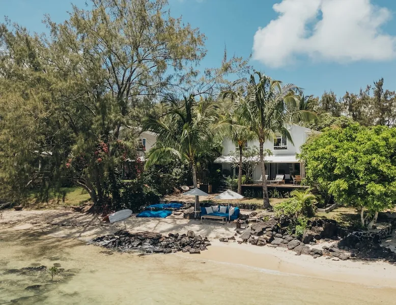 We offer you our pretty villa renovated with care in 2020, with furniture and a Luxury and refined Decoration. overlooking directly on a private beach in Mauritius. Our house can accommodate 3 couples + children/teenagers. Excellent stove/Discreet and efficient maid is included in the 6/7 rental from 9am to 2pm. The space Our Villa "O Lagon" offers 4 bedrooms including 3 double bedrooms (queen size bed), 1 bedroom with 2 single beds and 1 bedroom (outside the house) with 2 single beds, 4 bathrooms and 2 outdoor showers. The villa overlooks the beach and the lovely lagoon of Roches Noires. The architecture and landscaping have been designed for the perfect combination of indoor and outdoor living. You can live daily in the living room / living room/ kitchen overlooking the magnificent view. You will see the beach and the turquoise lagoon from wherever you are. The villa is located in an exceptional site that combines luxury with the privilege of a stay with family or friends on a private beach equipped with a large sofa, umbrellas, sunbeds. Our villa is just 15 kilometers from Grand Bay, known for its luxury shops, restaurants, clubs and marina. For golf lovers, three world-renowned golf courses on the East Coast are just a few kilometres away. The capital of Port Louis is an hour's drive away. Enjoy the exceptional living conditions in Roches Noires or the picturesque environment and the tranquility of the inhabitants recalls Mauritius of yesteryear! Fanny, our cook/maid is present from 9 a.m. to 2 p.m., 6 days a week, will ensure the smooth running of your stay, will concoct good Mauritian menus and this service is included in the rental amount. When staying at Villa Olagon we suggest you to "Live Mauritius differently"...