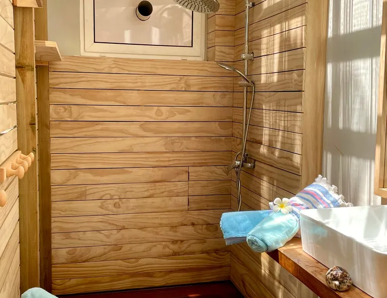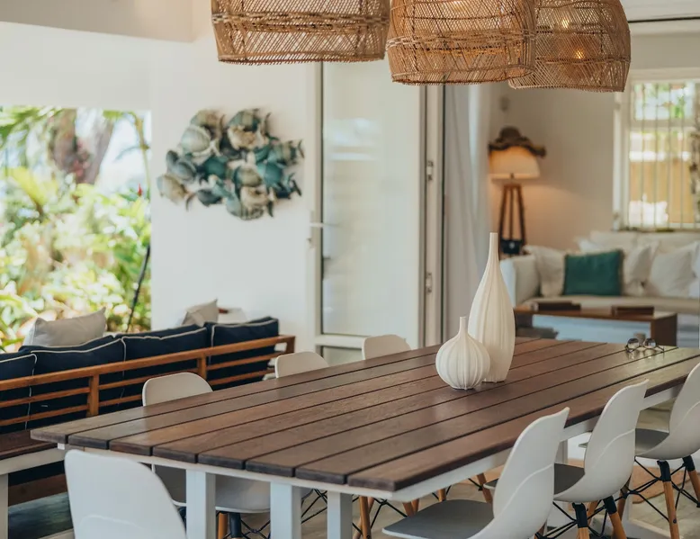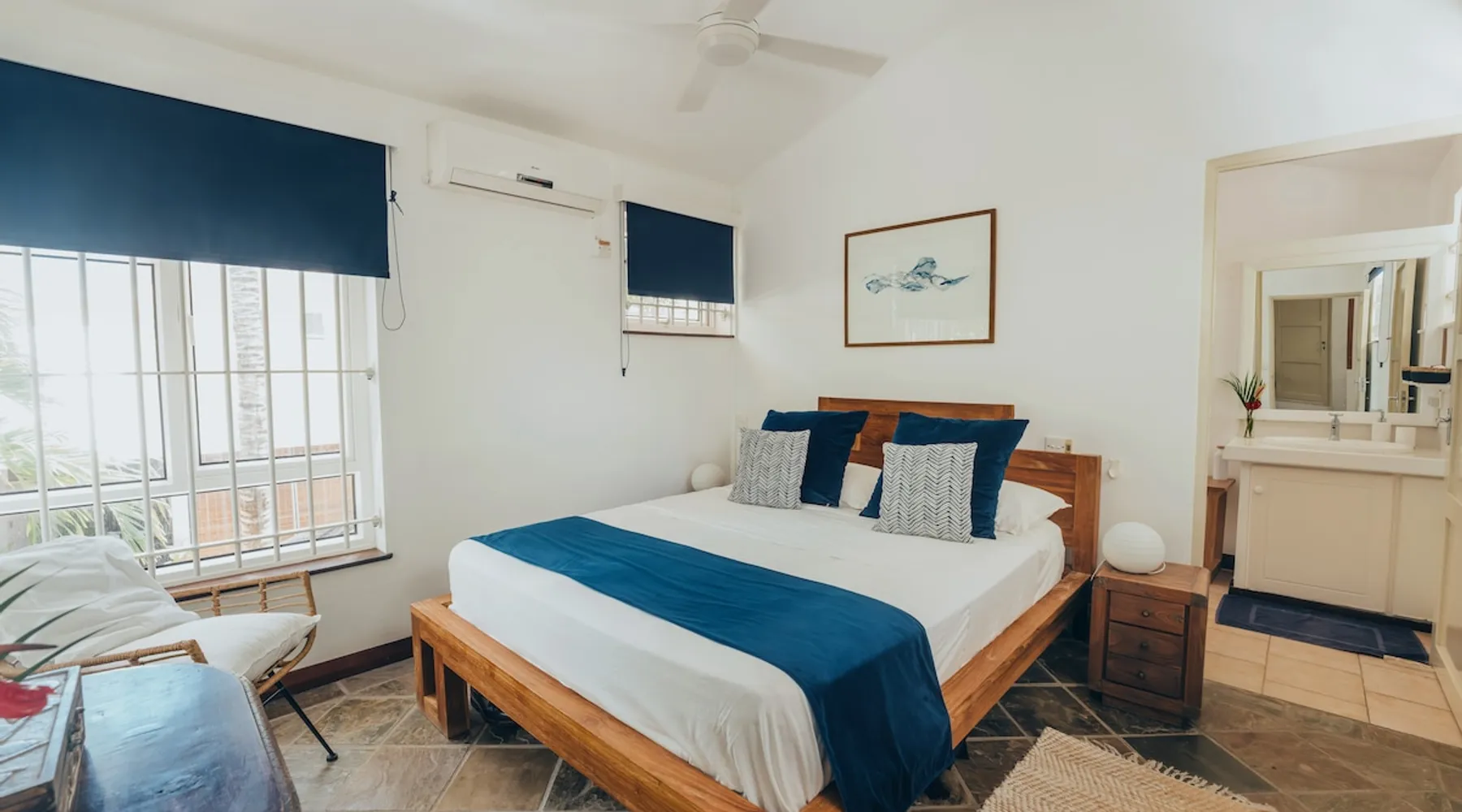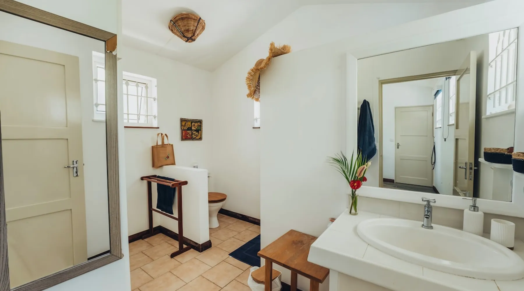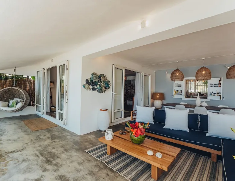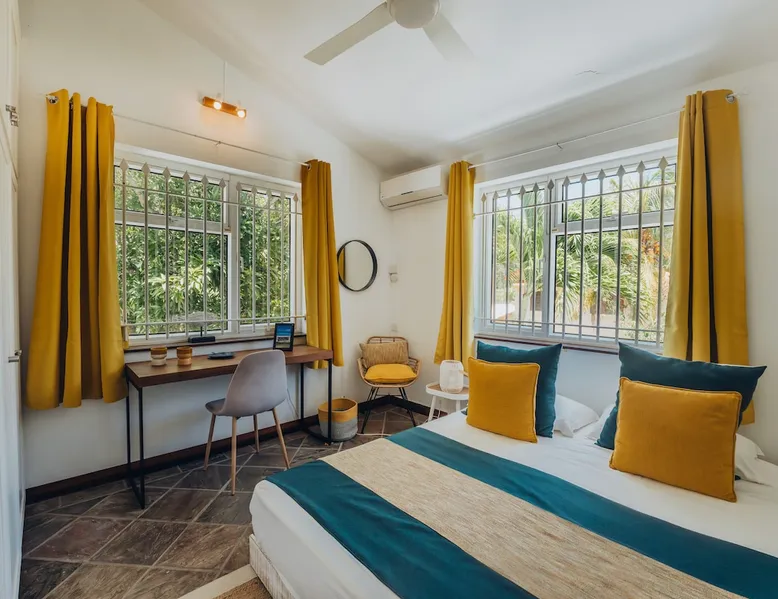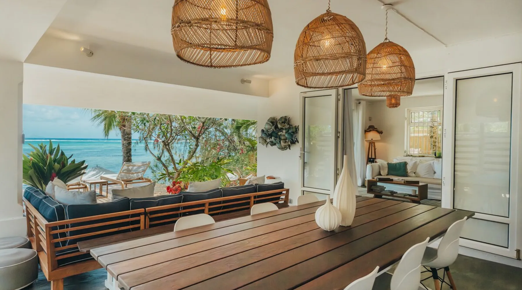 We offer you our pretty villa renovated with care in 2020, with furniture and a Luxury and refined Decoration. overlooking directly on a private beach in Mauritius. Our house can accommodate 3 couples + children/teenagers. Excellent stove/Discreet and efficient maid is included in the 6/7 rental from 9am to 2pm. The space Our Villa "O Lagon" offers 4 bedrooms including 3 double bedrooms (queen size bed), 1 bedroom with 2 single beds and 1 bedroom (outside the house) with 2 single beds, 4 bathrooms and 2 outdoor showers. The villa overlooks the beach and the lovely lagoon of Roches Noires. The architecture and landscaping have been designed for the perfect combination of indoor and outdoor living. You can live daily in the living room / living room/ kitchen overlooking the magnificent view. You will see the beach and the turquoise lagoon from wherever you are. The villa is located in an exceptional site that combines luxury with the privilege of a stay with family or friends on a private beach equipped with a large sofa, umbrellas, sunbeds. Our villa is just 15 kilometers from Grand Bay, known for its luxury shops, restaurants, clubs and marina. For golf lovers, three world-renowned golf courses on the East Coast are just a few kilometres away. The capital of Port Louis is an hour's drive away. Enjoy the exceptional living conditions in Roches Noires or the picturesque environment and the tranquility of the inhabitants recalls Mauritius of yesteryear! Fanny, our cook/maid is present from 9 a.m. to 2 p.m., 6 days a week, will ensure the smooth running of your stay, will concoct good Mauritian menus and this service is included in the rental amount. When staying at Villa Olagon we suggest you to "Live Mauritius differently"...