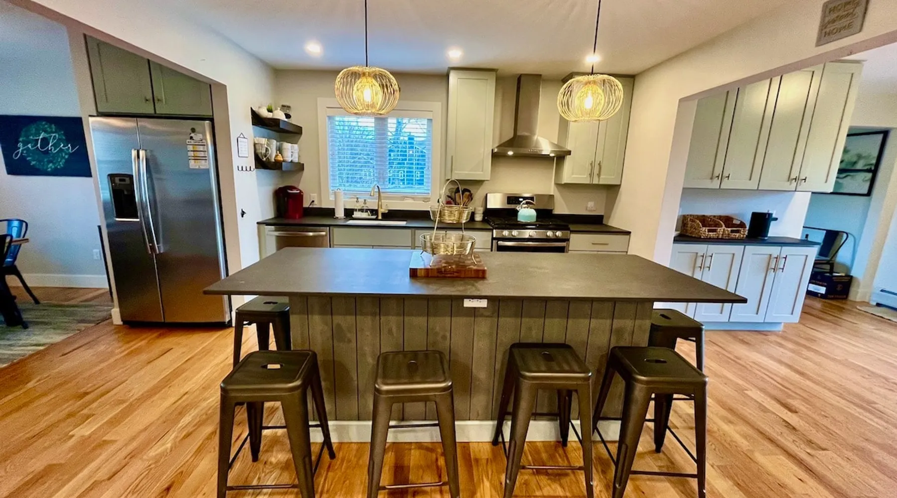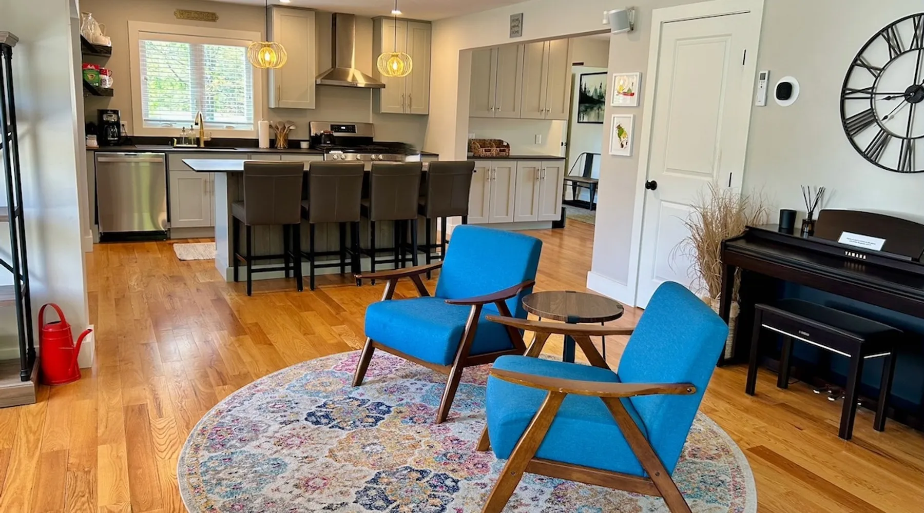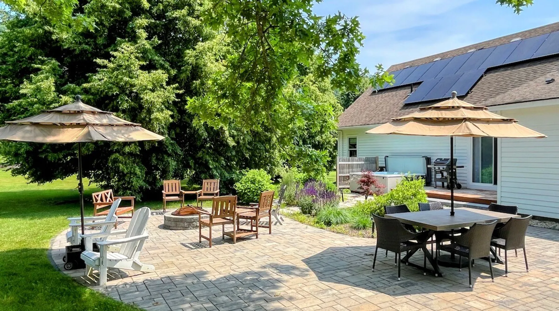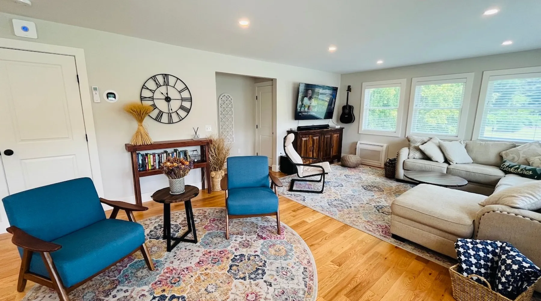 Amenities: 4 bedrooms, 3 baths, main floor master suite with a large walk in shower, hot tub, high speed internet, 5 Smart TVs, Sonos sound system, Ping Pong, Foosball, Nintendo Wii, mini-split air conditioners throughout, new appliances including a gas range, washer/dryer, EV car charger, standard drip coffeemaker, and a dishwasher. Outside you will find beautiful mountain views, a 2 fire-pits, outdoor seating, propane BBQ & more! Pets are considered with a pet fee. NO SMOKING. The space Main Floor: This perfectly renovated, open concept home is full of natural light, mountain views, and stylish touches throughout. The home is situated beautifully between 2 mountains and is only a short walk from the Appalachian Trail, which is perfect for anyone who loves to hike! The bright and open living room consists of comfortable seating and a large smart TV with Roku streaming channels. There are plenty of fun board games and puzzles to keep friends and family entertained. Just off of the living room is the well appointed kitchen that has brand new appliances, tons of storage, a large kitchen island with seating and lots of prep space for the home chef. Next to the kitchen is the dining room with a table that comfortably seats 10+. The large main floor master suite boasts a king size bed, smart TV with streaming channels, a queen size sleeper sofa, and an en suite bathroom with a large glass and tile walk-in shower. Just off of the living room is another bedroom with a queen size bed. There is an additional full bathroom with a tub/shower combination. Lastly, the the washer and dryer is also located on the main floor for the guest's convenience. Upstairs, there are 2 more bedrooms and a full bathroom with a tub/shower combination. One bedroom has 2 queen size beds and a Roku TV, while the other has 2 bunk beds (double on the bottom and single on top) and a twin size bed. This bedroom can sleep 4 adults comfortably or 7 kids. At the top of the stairs, on the landing, there is a comfortable reading chair to soak up the sun and catch up on your latest book. Lower level Playroom: Guests can enjoy the newly finished basement with 2 TVs, foosball table, and ping pong! There is a Nintendo Wii with 20+ games and 6 controllers. It is the perfect hang out space for kids and parents alike looking for a fun place to unwind after a busy day sight-seeing or skiing. Outside: Is a fabulous outdoor patio with lots of seating, a large fire pit, a hot tub that sits 4 to 6 people, and a propane BBQ grill. There are beautiful Mountain Views and the Appalachian Trail is only a short walk away, so you can literally walk outside your door and go for a hike. This terrific location is less than 10 minutes to Great Barrington, 15 minutes to Stockbridge, and just 25 minutes to Tanglewood! See House Rules for additional reservation details Guest access Guests have access to the entire property. Other things to note Please see House Rules.