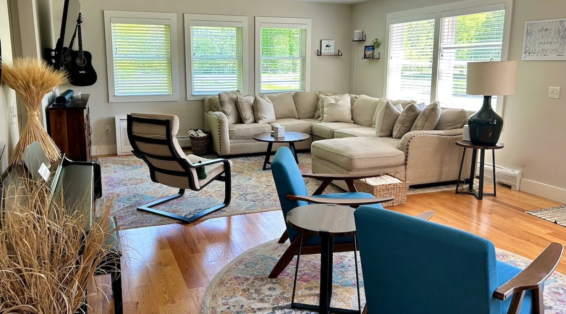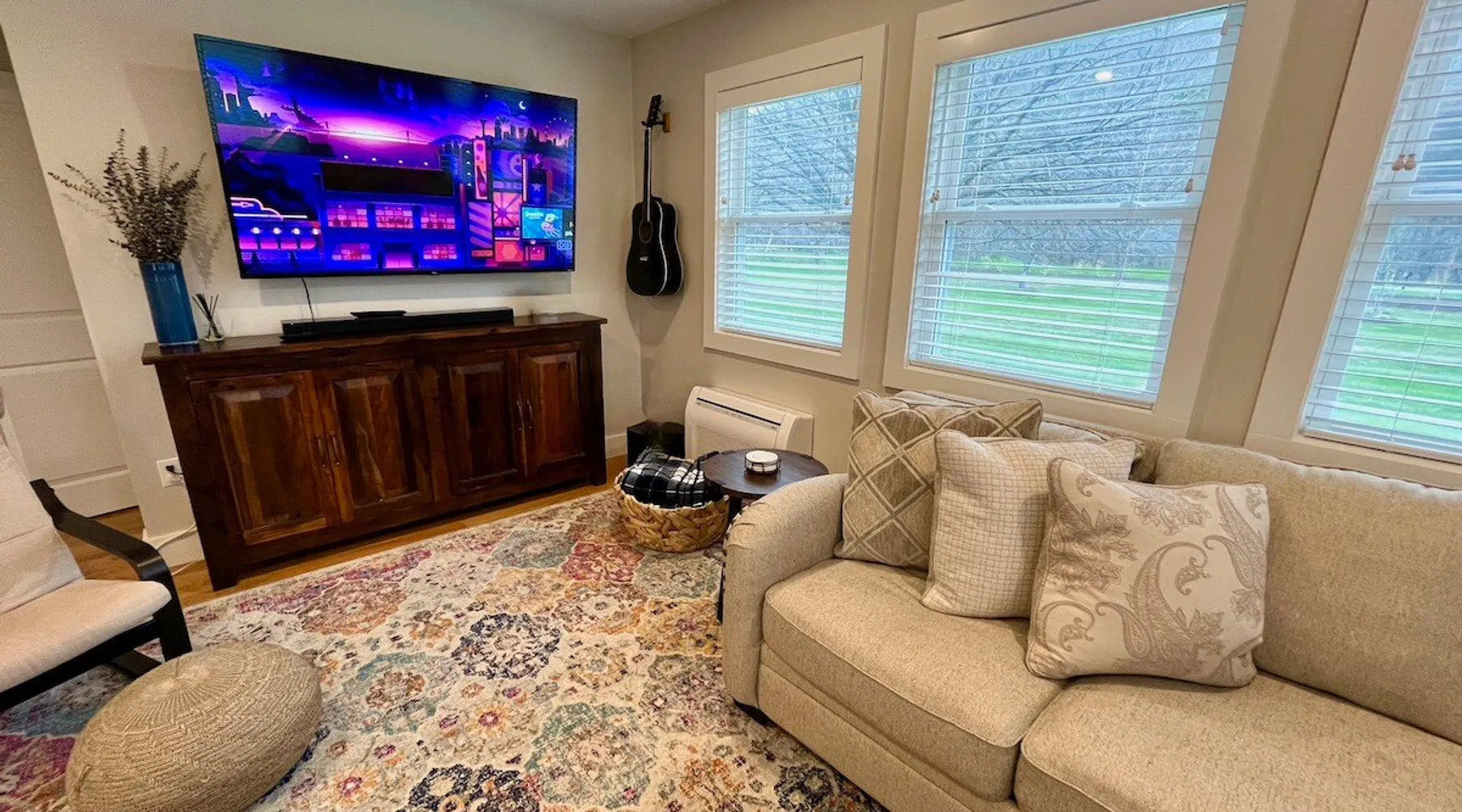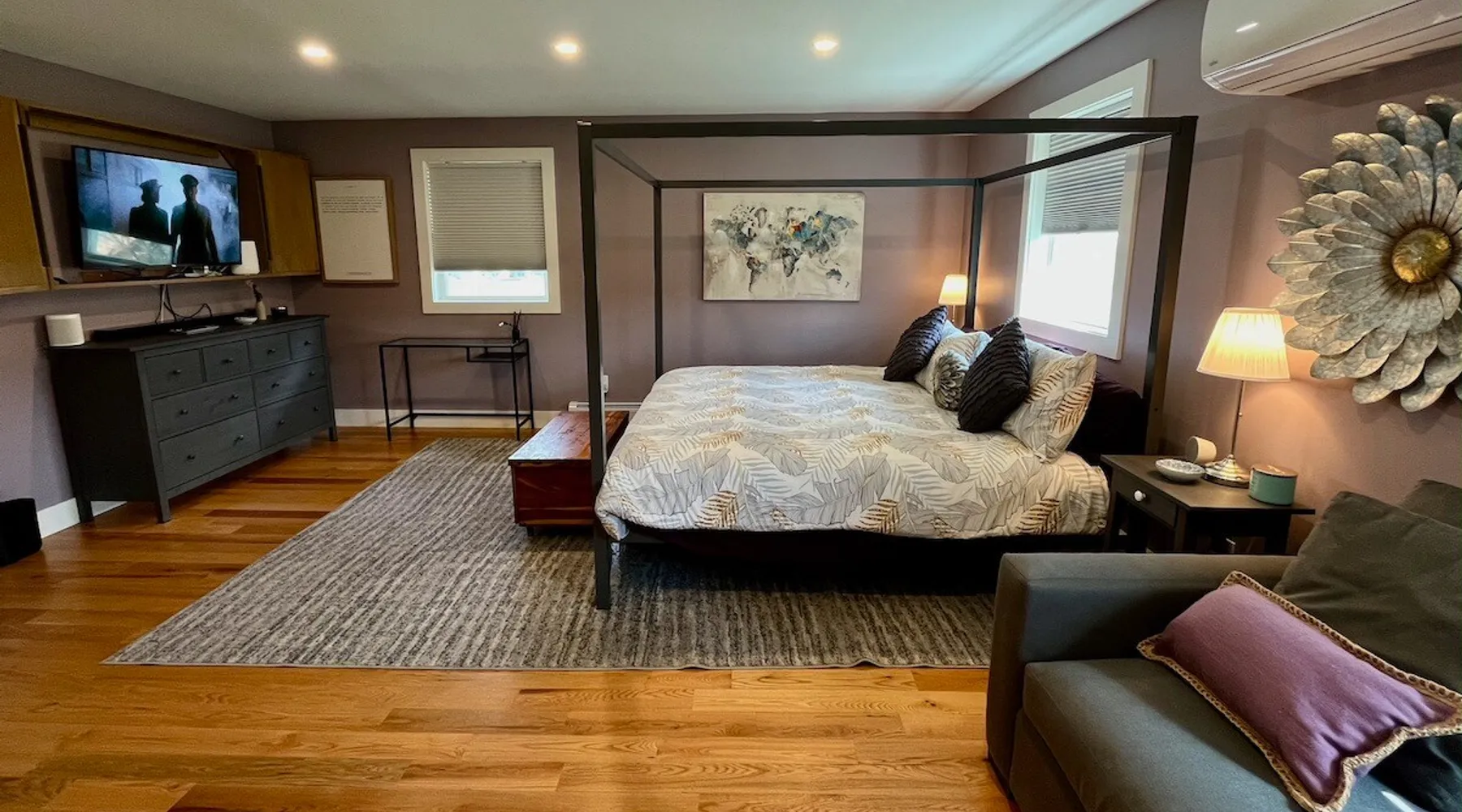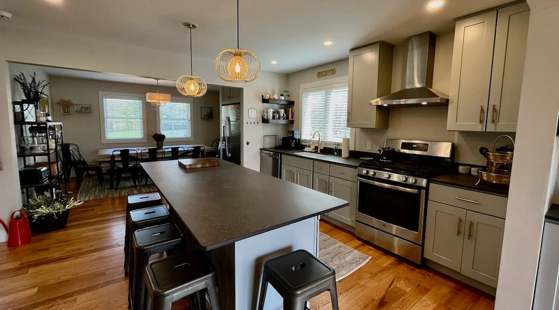Amenities: 4 bedrooms, 3 baths, main floor master suite with a large walk in shower, hot tub, high speed internet, 5 Smart TVs, Sonos sound system, Ping Pong, Foosball, Nintendo Wii, mini-split air conditioners throughout, new appliances including a gas range, washer/dryer, EV car charger, standard drip coffeemaker, and a dishwasher. Outside you will find beautiful mountain views, a 2 fire-pits, outdoor seating, propane BBQ & more! Pets are considered with a pet fee. NO SMOKING. The space Main Floor: This perfectly renovated, open concept home is full of natural light, mountain views, and stylish touches throughout. The home is situated beautifully between 2 mountains and is only a short walk from the Appalachian Trail, which is perfect for anyone who loves to hike! The bright and open living room consists of comfortable seating and a large smart TV with Roku streaming channels. There are plenty of fun board games and puzzles to keep friends and family entertained. Just off of the living room is the well appointed kitchen that has brand new appliances, tons of storage, a large kitchen island with seating and lots of prep space for the home chef. Next to the kitchen is the dining room with a table that comfortably seats 10+. The large main floor master suite boasts a king size bed, smart TV with streaming channels, a queen size sleeper sofa, and an en suite bathroom with a large glass and tile walk-in shower. Just off of the living room is another bedroom with a queen size bed. There is an additional full bathroom with a tub/shower combination. Lastly, the the washer and dryer is also located on the main floor for the guest's convenience. Upstairs, there are 2 more bedrooms and a full bathroom with a tub/shower combination. One bedroom has 2 queen size beds and a Roku TV, while the other has 2 bunk beds (double on the bottom and single on top) and a twin size bed. This bedroom can sleep 4 adults comfortably or 7 kids. At the top of the stairs, on the landing, there is a comfortable reading chair to soak up the sun and catch up on your latest book. Lower level Playroom: Guests can enjoy the newly finished basement with 2 TVs, foosball table, and ping pong! There is a Nintendo Wii with 20+ games and 6 controllers. It is the perfect hang out space for kids and parents alike looking for a fun place to unwind after a busy day sight-seeing or skiing. Outside: Is a fabulous outdoor patio with lots of seating, a large fire pit, a hot tub that sits 4 to 6 people, and a propane BBQ grill. There are beautiful Mountain Views and the Appalachian Trail is only a short walk away, so you can literally walk outside your door and go for a hike. This terrific location is less than 10 minutes to Great Barrington, 15 minutes to Stockbridge, and just 25 minutes to Tanglewood! See House Rules for additional reservation details Guest access Guests have access to the entire property. Other things to note Please see House Rules.