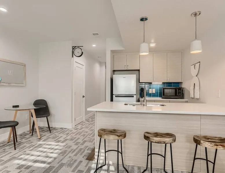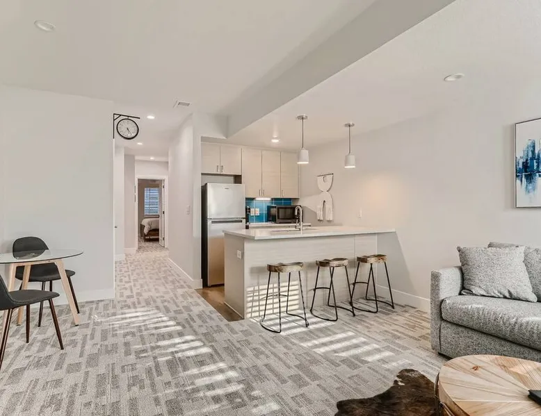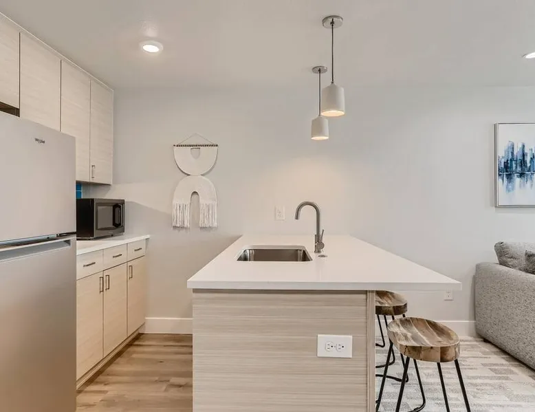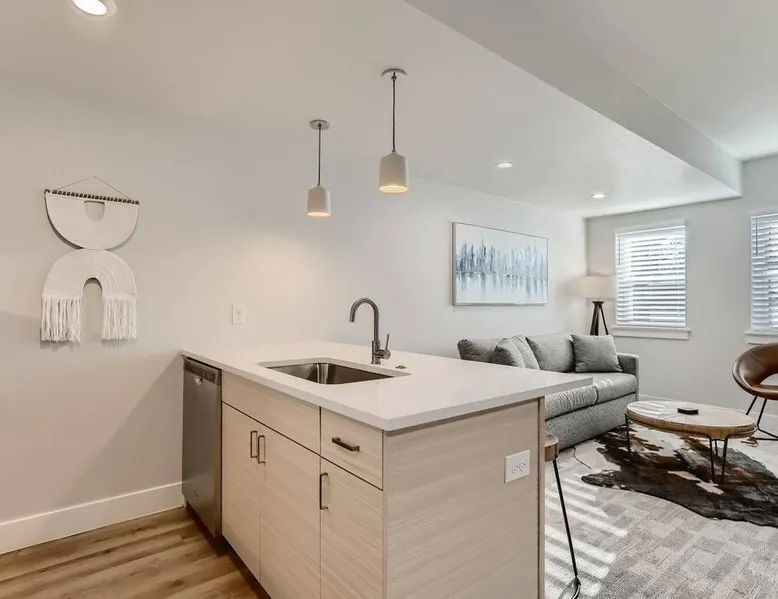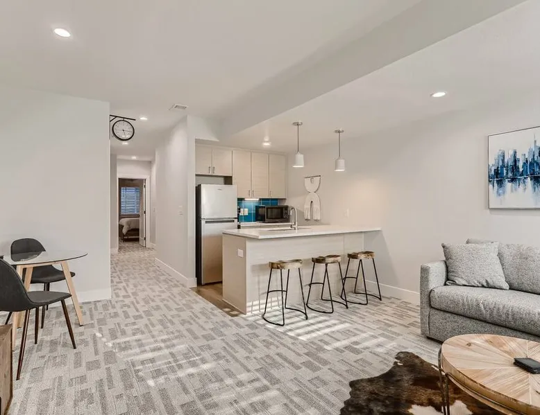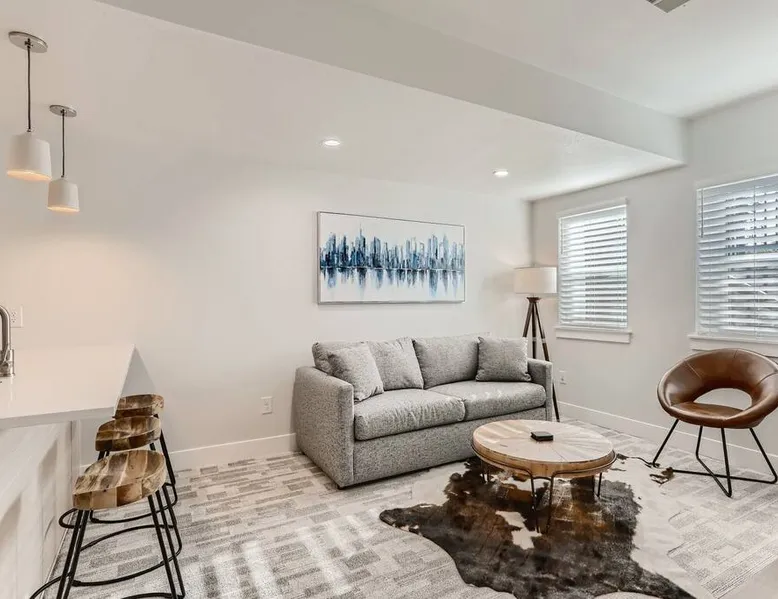 Welcome to Denver! Our guest suite is located in a quiet, friendly neighborhood • Brand new row home • Awesome living room space • 2min walk to Perry St station (W line Light Rail) • Fast internet • Kitchen • Netflix • Private entrance • Self Check-in • Street Parking • 5-15 min drive to Highlands/Tennyson/Coors Field/Downtown/RiNo • 10 min train ride to Union station, Football station, Meow Wolf, Golden Easy access to the Highlands, Sunnyside, Tennyson Business district & i-70. The space We are located one block from the Perry St light rail station on the W line. Head East on the W line, and you can access: - Union Station in 10min to then access Union Station transit center C, G, E, and B lines, University of Colorado A line also to Denver International Airport, local and regional busses, FreeMallRides and FreeMetroRides. - Pepsi Center 10min - Mile High Stadium <10min - Meow Wolf <10min Head West on the W line, and you can access: - Golden - Lakewood Car/ Uber/ Lyft - Red Rocks 20 - 30min - Tennyson Street 15min - Denver International Airport 30 – 1 hour (In peak hours I recommend you relax and take the train + Light rail) - Downtown 10min - Cherry Creek 15min - LoHi 10min Bike paths – easy access to downtown, Lakewood, Golden, Cherry Creek Other things to note Reservations may be subject to extra guest fees, as well as additional charges for optional services such as adding pets or requesting early check-ins. Registration number 2021-BFN-0007124