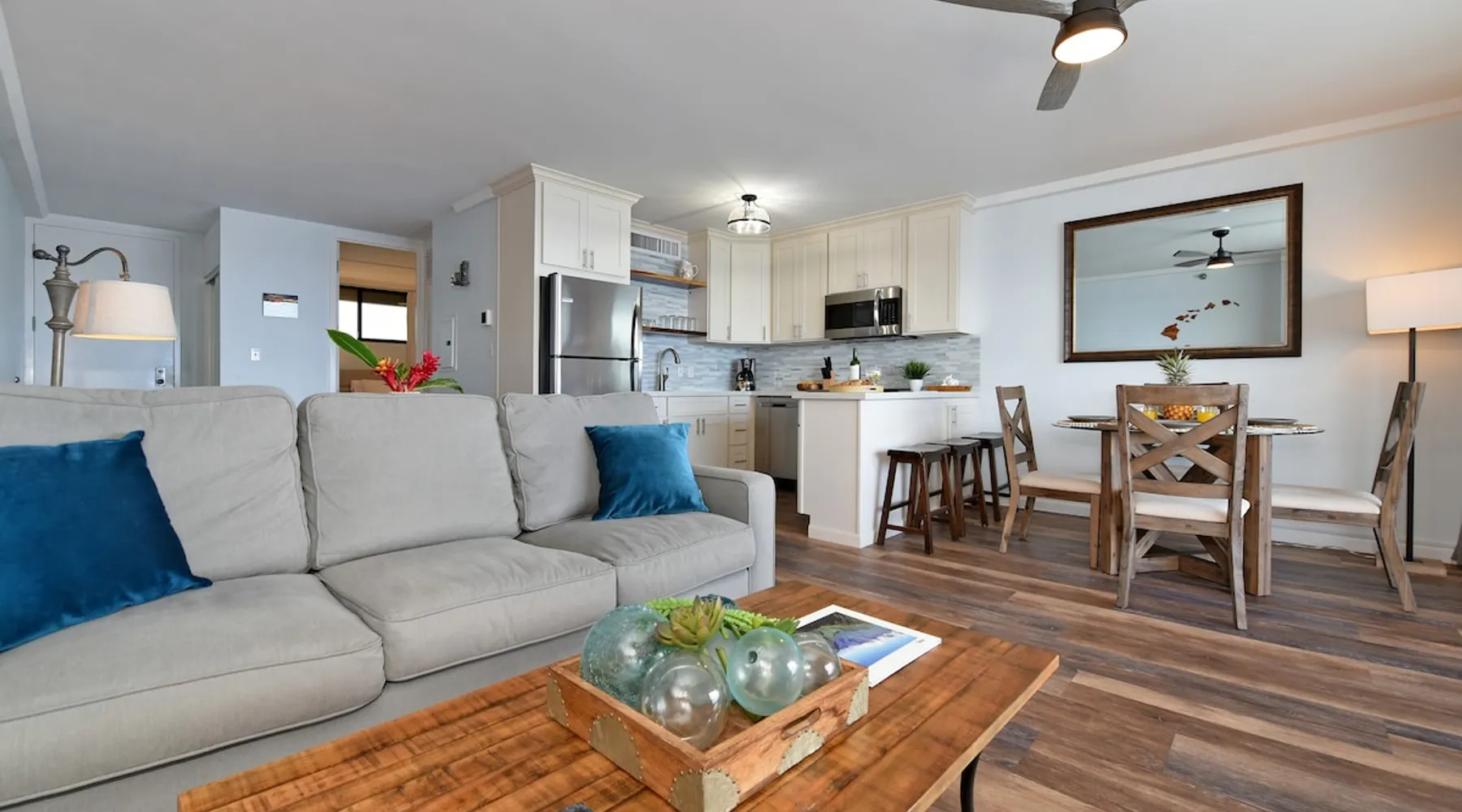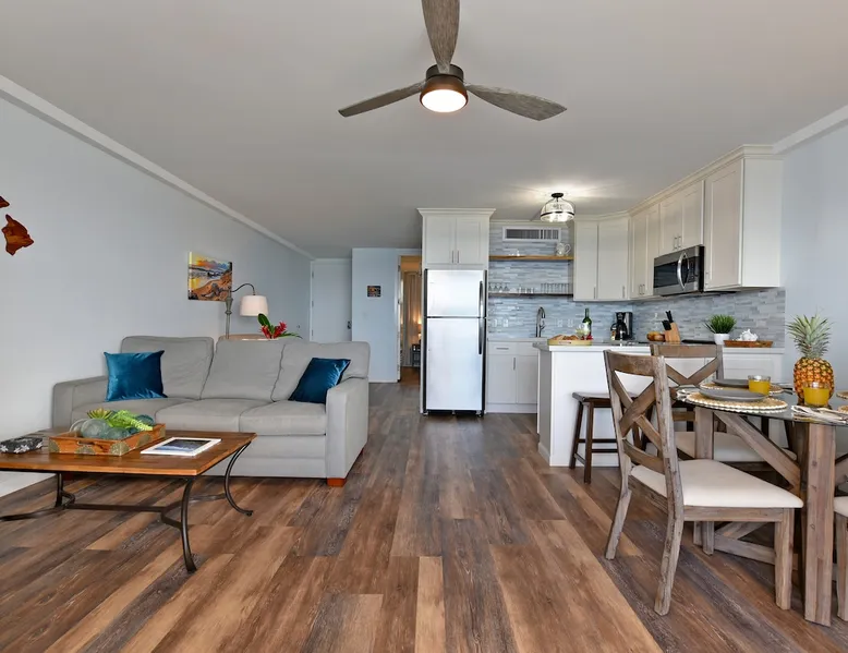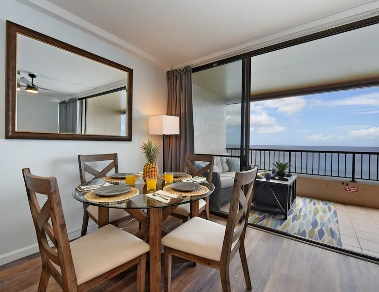 Maui Kai 605 Remodeled Unit with Unbelievable Ocean Views at Magical Maui Location! The space E Komo Mai (Welcome) to spectacular Maui Kai 605! This bright and cozy condo is the perfect spot to relax and enjoy your Maui Vacation! This gorgeous 6th floor location allows you to drink in over 180 degrees of expansive panoramic ocean views that can only be described as “breathtaking!” This area gets its name “Sunset Alley” because the sun sets directly between the islands of Lana’i and Moloka’i year round. Condo Highlights: -1 Bedroom, 1 Bathroom, Sleeps 4 guests -Central AC throughout -Direct ocean front with unobstructed panoramic view of the ocean and nearby islands -King size bed -Sleeper-sofa in living room -Beautiful brand new remodel -Flat-screen TV -Large and private lanai with beautiful new lanai furniture -Fully equipped Kitchen w/dishwasher -Interior dining area for 4 -Spacious bathroom with walk-in shower The Maui Kai Resort allows for ultimate enjoyment of the breathtaking direct ocean and outer island views off Honokowai Point. Positioned on the northwest coastline of Maui you can spend your days snorkeling, scuba diving, or just lounging on the shore. Maui Kai’s convenient central location is just a five minute drive north to the Napili and Kapalua Bay beach areas, or five minutes south to the Kaanapali Beach Resort area for non-stop fun in the sun! Within a short walking distance you can stop by the Honokowai Marketplace to stock up at Times Supermarket, or visit the many delicious Food Trucks set up every night just outside of the resort. Resort Highlights: -Direct ocean front with unobstructed panoramic view of the ocean and nearby islands -Heated pool and jacuzzi tub -Shared poolside gas BBQ grills & shared cabana with kitchen appliances -On-site parking included -Elevators -On-site coin operated washers and dryers on every floor for your convenience -Amazing central location -Walking distance to fabulous food truck court -Walking distance to shopping center, groceries, and urgent care facility (Doctors On Call) -Short drive to Kaanapali Beach, Napili Bay, and Kapalua Bay Minimum age of primary renter: 25 All of our guests have complimentary access to our Maui specialist and support team during their stay. We provide the following in every unit: -High Speed Internet -Linens & Towels -Iron & Board -Hair Dryer -Beach Towels -Beach Chairs -Hard Sided Cooler -Starter Kit: Starter supply of Shampoo, Conditioner, Body Wash, Lotion, Hand Soap, Dish Soap, Laundry Detergent, Dishwasher Tabs, Toilet Paper, Paper Towels, Trash Bags Arrival PRE-CHECKS: To ensure that our homes meet our standards, just prior to each check-in, our Auditors do a final inspection and a comprehensive video recording to verify the property condition will meet our guest 5 star expectations. If by chance the cleaners missed a small detail, please contact our 24x7 support line so we have an opportunity to resolve. Our continued commitment to SAFETY includes: -Monthly and annual safety audits and reviews to ensure the upkeep of all our safety standards -Our Service Managers are "Certified Short-Term Rental Safety Inspectors" through Dwell Safe -We are the only company in Hawaii and one of a few in the USA that has certified its inspectors **Safety and cleanliness procedures implemented may be adjusted in consideration of local practices, government requirements and guidance, and the situation where the condo is located. BEACHES & CRITTERS: The beach size in Hawaii varies month to month due to heavy surf, strong currents and tides. Due to Maui’s rural atmosphere you may experience the occasional rooster, as well as harmless geckos. Geckos are friendly, eat insects, and are considered good luck in Hawaii. Please don’t kill them. IMPORTANT: Although the HOA schedules regular professional pest control services, pests such as ants, roaches and rodents simply cannot be completely controlled in the tropics. Hawaii is located in a tropical climate, and insects, rodents and lizards flourish in this environment. If our guest spot more than the normal expected pests, we always make our best efforts to contact and work with the HOA to minimize your interactions with these pests. Any contact with such pests within or outside the unit does not constitute a breach of this Agreement or give Guest any right to any refund or rental adjustment. **We make no guarantee that properties adjacent to the Unit will be free from disturbances, including but not limited to noise or inconvenience from construction, traffic or other guests or neighbors. Any such disturbance shall not constitute a breach of this Agreement or give Guest any right to any refund or rental adjustment. Registration Details 440011000045, TA-032-647-4240-01