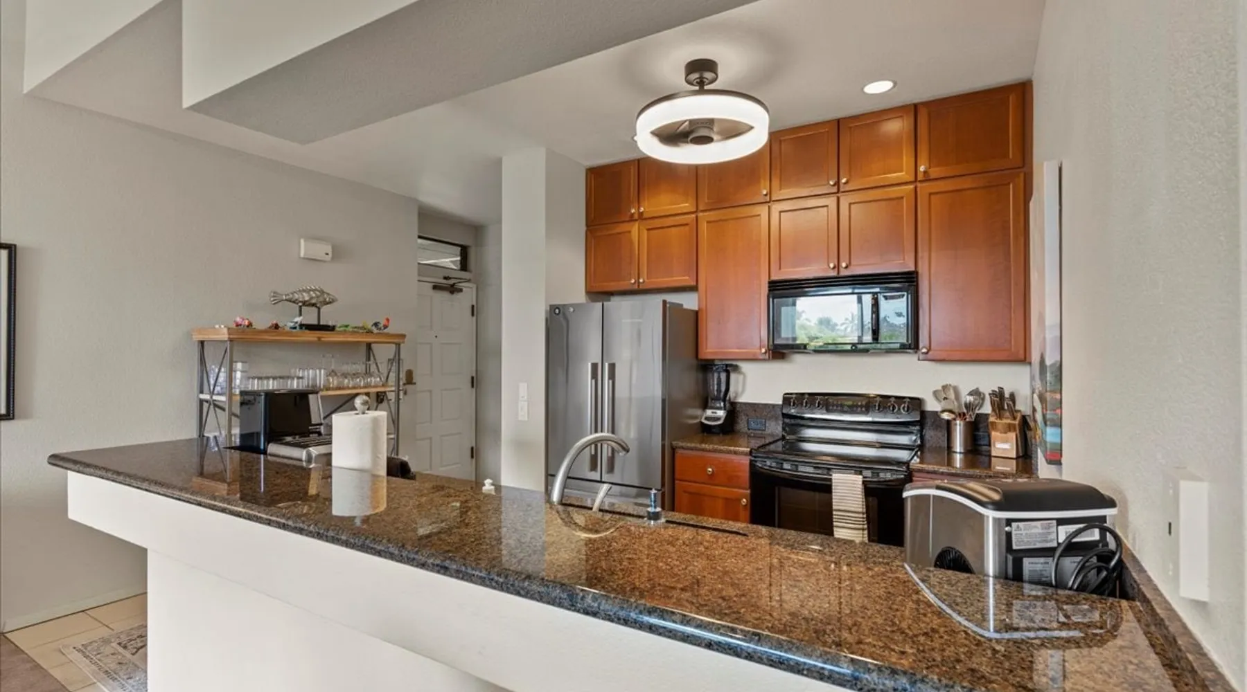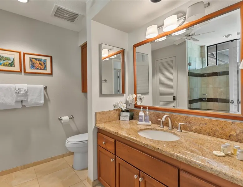Hawaii Life Rentals presents Grand Champions 32. Enjoy beautiful ocean views from this upgraded second floor condo in the heart of Wailea. Two large master suites, large bathrooms, vaulted ceilings and a private staircase with two entrances to the unit. The space An all-around luxury condo at Grand Champions in the heart of Wailea! An outstanding layout with 2 large master-suites, 2 gracious sized full bathrooms, living and dining area with expansive vaulted ceilings, and an excellent ocean view! One master suite has a king bed, the other master suite has a queen bed, and there is a queen sofa sleeper in the living room. This floor plan features 2 entrances with a private staircase. Recently remodeled with granite counter tops, new carpet, new appliances and new kitchen and bath cabinets. The spacious living area opens onto an oversized lanai, allowing the Maui sea breeze to blow inside. Enjoy year around sunsets over the ocean and whale watching during the winter months from the spacious lanai that is surrounded by beautiful foliage, ideal for entertaining. This beautifully appointed villa is situated on the Fairway of Wailea’s elite Blue Golf Course. Walk along the walkway pass to the world’s top sandy beaches, the Shops at Wailea, casual to fine dining restaurants and the Wailea Town Center. The complex features 2 swimming pools. Note that the unit is on the second floor, and there is no elevator. ***Grand Champions has a mix of residential and vacation rental units and pest control treatments are scheduled in advance. There is interior and exterior quarterly pest control in January, April, July, and October. This may occur during your stay and it may not be refused. Hawaii Life Rentals is a locally owned, licensed real estate company with rentals on Kauai, Maui, Oahu, and Hawaii. We offer on-island personal assistance and Concierge services. Rates do not include taxes, cleaning and applicable fees. Hawaii Life/VRBO bookings: Guests must sign a rental contract within 48 hours of booking to confirm the reservation. TA-207-248-4352-01 Registration Details 210081040032, TA-207-248-4352-01