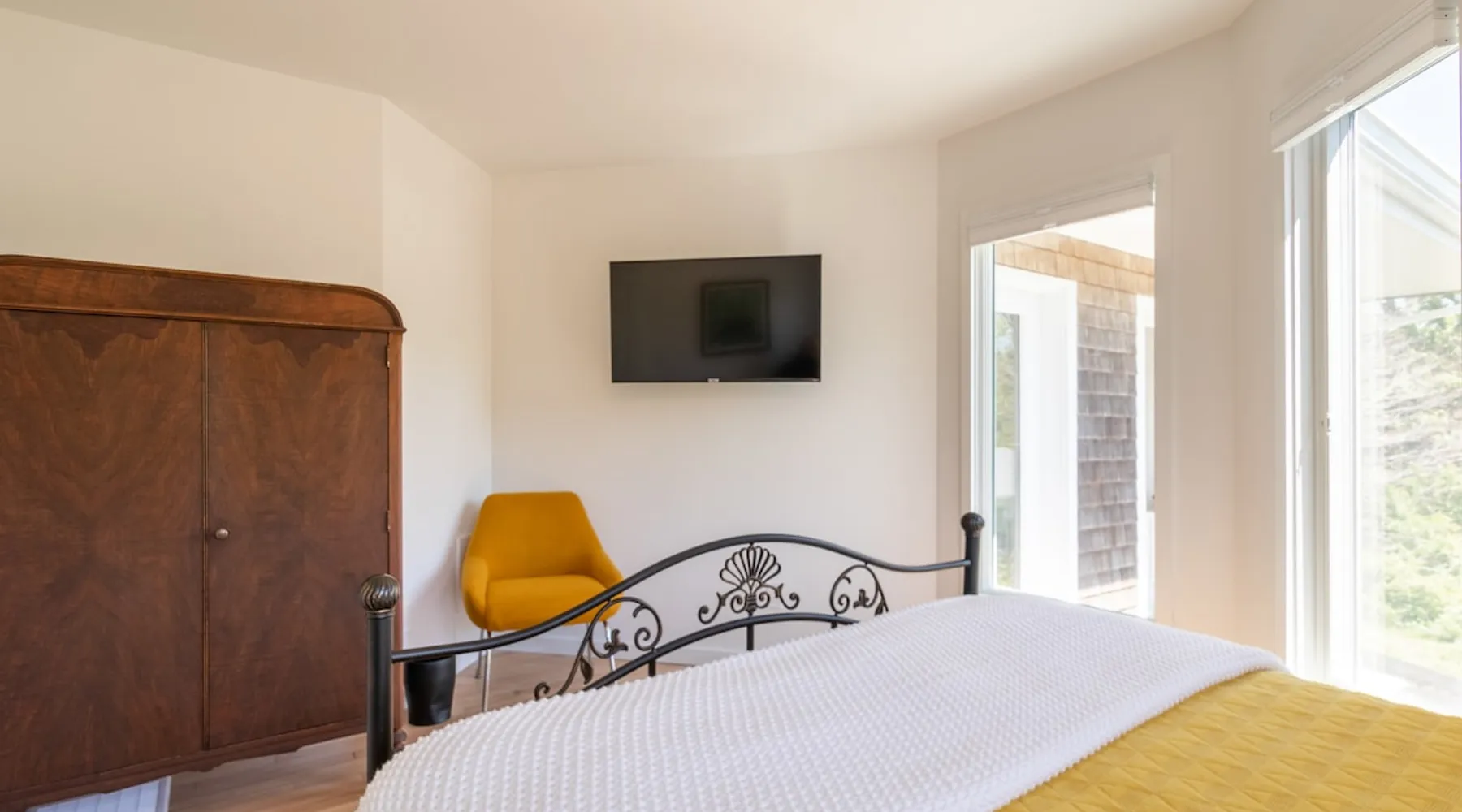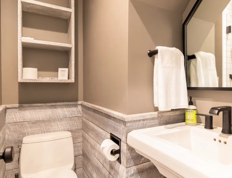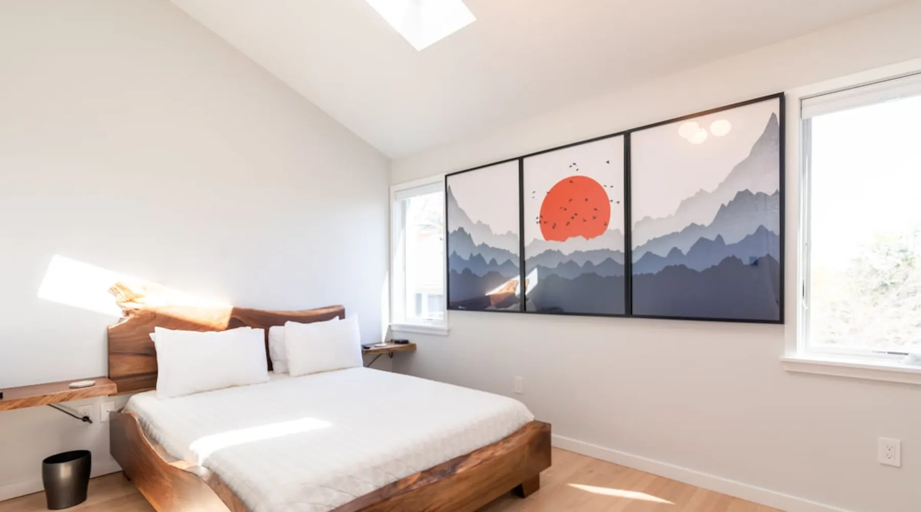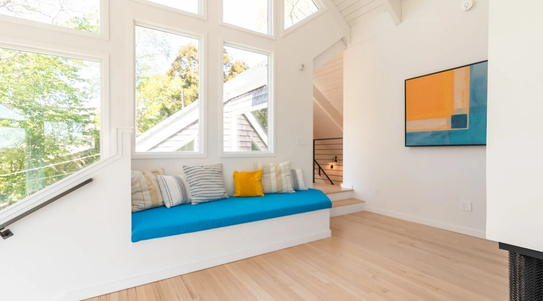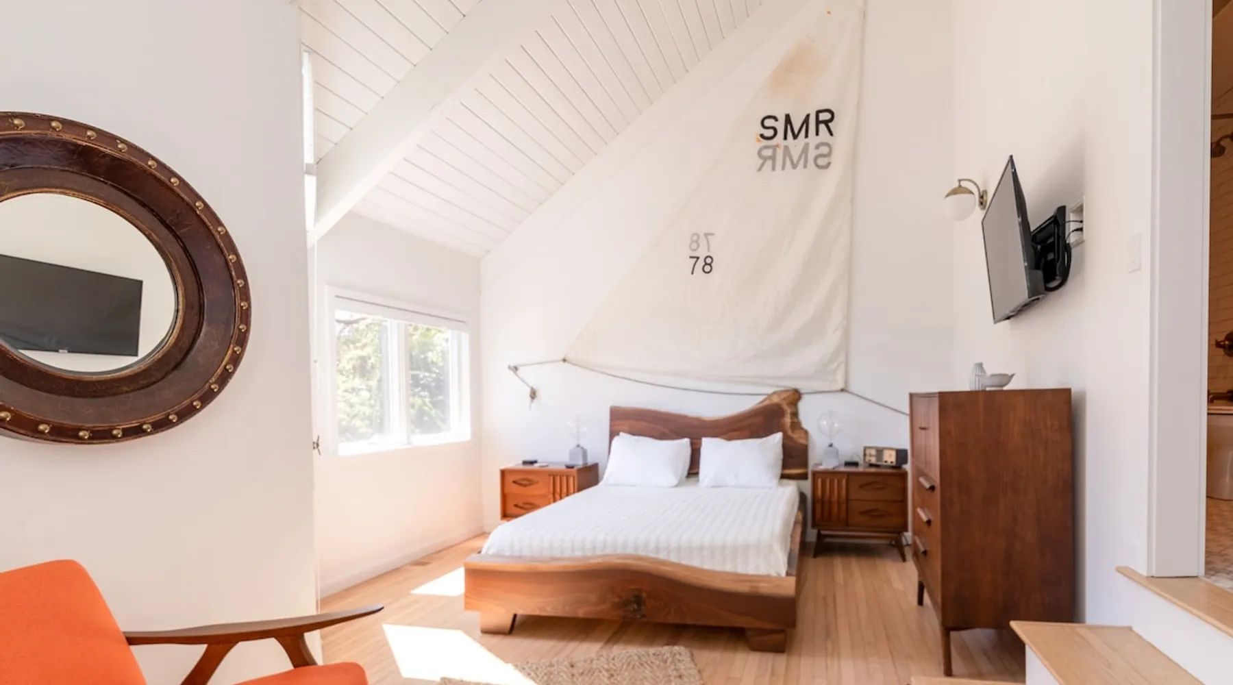 Beautiful modern masterpiece down a quiet street with quick access to Woods Hole, Shining Sea Bikeway, and the Vineyard ferry. This architecturally significant house was designed by the renowned postmodern architect Charles Moore and built in 1969. An addition providing ample entertaining space - including a dining room, den, loft, and roof deck - was completed in 2021, along with top to bottom refinishing of all rooms. This house has mid-century charm in spades with all the modern conveniences. The space The house offers 4 bedrooms each with a queen bed and private full bathroom, and each on its own level that provides ample privacy for those sharing this impressive house. The entrance opens into a foyer adjacent to an open concept kitchen with peninsula seating for 4. Continuing to the back of the house is a large dining room with a wet bar and custom designed dining table that comfortably seats 10, and can also function as a ping pong table (net, paddles, and balls provided!). Also on the main level is a full bathroom with shower stall, a laundry closet with washer and dryer, and the first bedroom. Adjacent to the main entrance, and three steps down, is a large bedroom with an en suite with shower/tub. Back in the kitchen, and past the coffee bar - complete with espresso machine, drip, and Keurig - is another bedroom that is down one flight and is adjacent to another full bath with shower stall. The master bedroom is found upstairs, part of a 4 room suite that includes a sitting room with desk and loveseat, designer bathroom, and a built-in twin sized day bed - perfect for younger ones. Three staircases lead to the second floor (also a catwalk away from the upstairs bedroom) which offers plenty of room for your group to spread out: whether it’s reading a book at the cozy living room window seat while listening to the console record player, catching up on your streaming in the den, playing a game in the breakfast room, finishing a puzzle in the loft which includes a futon couch (up a spiral stair), or enjoying the roof deck (accessible via ship’s ladder) with panoramic views of Martha’s vineyard and surrounding waters. Adjacent to the den are bookcases full of games and books for your enjoyment, and a powder room. Additional outdoor space is off the main entrance: a lit peastone patio with outdoor table seating for 4 and a pair of Adirondack chairs to relax in. An outdoor shower rounds out the exterior amenities. The house is equipped with three zone central air conditioning, 4K streaming Roku TVs in each bedroom, high speed internet, and a fully equipped kitchen that includes microwave, dishwasher, and 5 burner gas range. An outdoor 50 amp outlet is available for charging your electric vehicle. Guest access The neighborhood is quiet with minimal street traffic, but provides quick and easy access to all that you want from your Cape vacation: a 4 minute walk (0.2 miles) to the Shining Sea Bikeway, 10 minute walk (0.5 miles) to downtown Woods Hole, 12 minute walk (0.6 miles) to the Martha’s Vineyard Ferry, a 7 minute bike ride to Surf Drive beach via the Bikeway, and a 7 minute drive to downtown Falmouth. Other things to note The house, the common areas, and bedrooms are split on several levels with many stairs leading between, and may not be optimal for young children or those with limited mobility.
