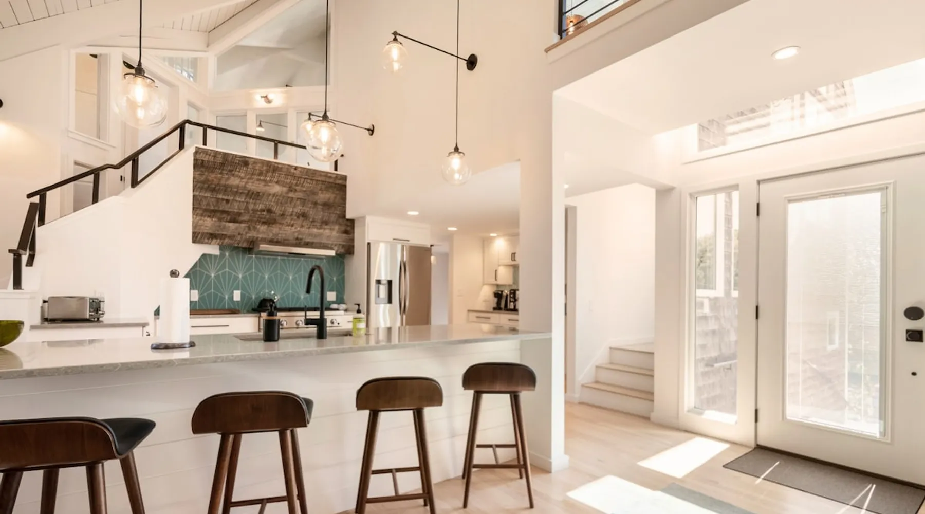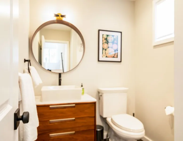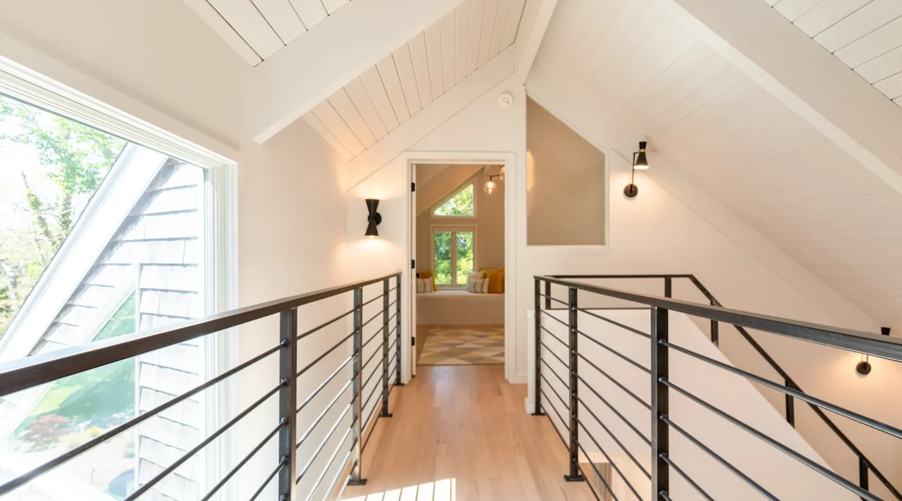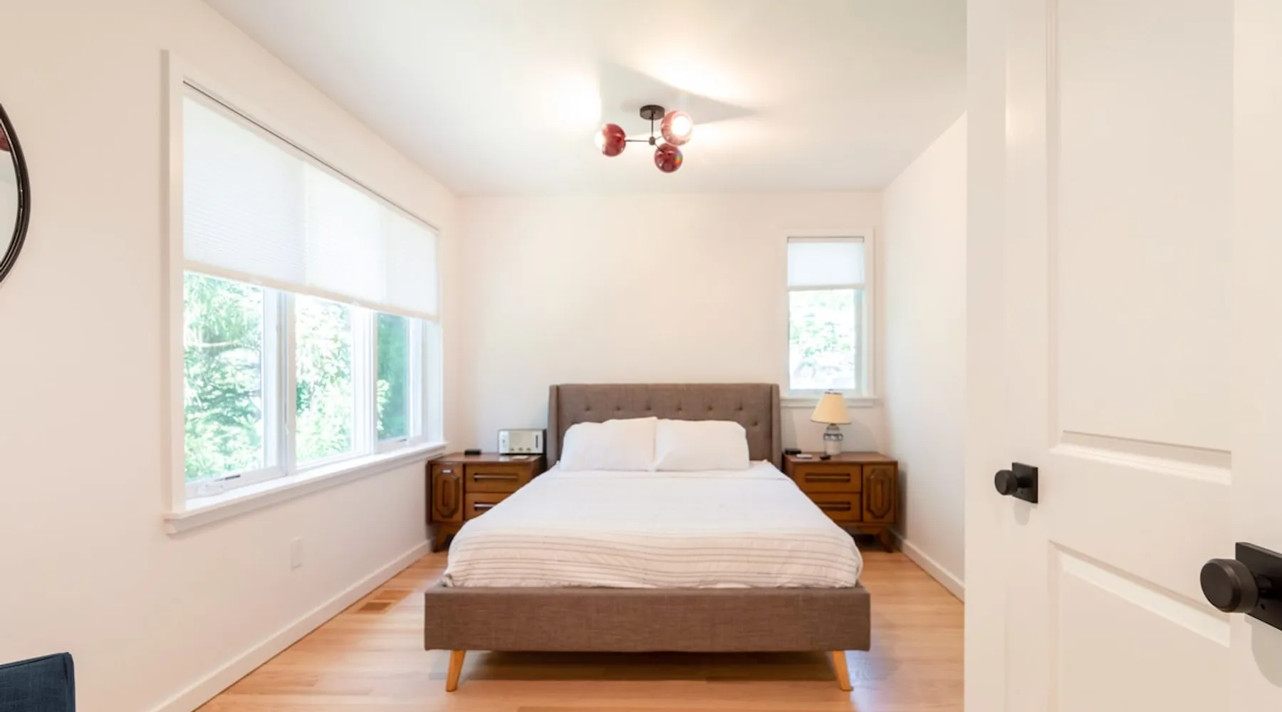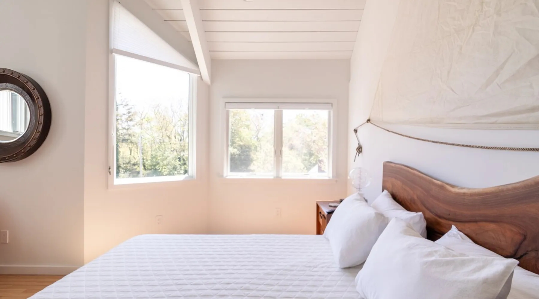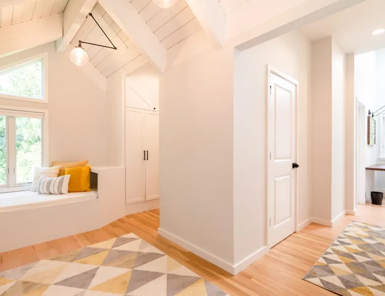 Beautiful modern masterpiece down a quiet street with quick access to Woods Hole, Shining Sea Bikeway, and the Vineyard ferry. This architecturally significant house was designed by the renowned postmodern architect Charles Moore and built in 1969. An addition providing ample entertaining space - including a dining room, den, loft, and roof deck - was completed in 2021, along with top to bottom refinishing of all rooms. This house has mid-century charm in spades with all the modern conveniences. The space The house offers 4 bedrooms each with a queen bed and private full bathroom, and each on its own level that provides ample privacy for those sharing this impressive house. The entrance opens into a foyer adjacent to an open concept kitchen with peninsula seating for 4. Continuing to the back of the house is a large dining room with a wet bar and custom designed dining table that comfortably seats 10, and can also function as a ping pong table (net, paddles, and balls provided!). Also on the main level is a full bathroom with shower stall, a laundry closet with washer and dryer, and the first bedroom. Adjacent to the main entrance, and three steps down, is a large bedroom with an en suite with shower/tub. Back in the kitchen, and past the coffee bar - complete with espresso machine, drip, and Keurig - is another bedroom that is down one flight and is adjacent to another full bath with shower stall. The master bedroom is found upstairs, part of a 4 room suite that includes a sitting room with desk and loveseat, designer bathroom, and a built-in twin sized day bed - perfect for younger ones. Three staircases lead to the second floor (also a catwalk away from the upstairs bedroom) which offers plenty of room for your group to spread out: whether it’s reading a book at the cozy living room window seat while listening to the console record player, catching up on your streaming in the den, playing a game in the breakfast room, finishing a puzzle in the loft which includes a futon couch (up a spiral stair), or enjoying the roof deck (accessible via ship’s ladder) with panoramic views of Martha’s vineyard and surrounding waters. Adjacent to the den are bookcases full of games and books for your enjoyment, and a powder room. Additional outdoor space is off the main entrance: a lit peastone patio with outdoor table seating for 4 and a pair of Adirondack chairs to relax in. An outdoor shower rounds out the exterior amenities. The house is equipped with three zone central air conditioning, 4K streaming Roku TVs in each bedroom, high speed internet, and a fully equipped kitchen that includes microwave, dishwasher, and 5 burner gas range. An outdoor 50 amp outlet is available for charging your electric vehicle. Guest access The neighborhood is quiet with minimal street traffic, but provides quick and easy access to all that you want from your Cape vacation: a 4 minute walk (0.2 miles) to the Shining Sea Bikeway, 10 minute walk (0.5 miles) to downtown Woods Hole, 12 minute walk (0.6 miles) to the Martha’s Vineyard Ferry, a 7 minute bike ride to Surf Drive beach via the Bikeway, and a 7 minute drive to downtown Falmouth. Other things to note The house, the common areas, and bedrooms are split on several levels with many stairs leading between, and may not be optimal for young children or those with limited mobility.