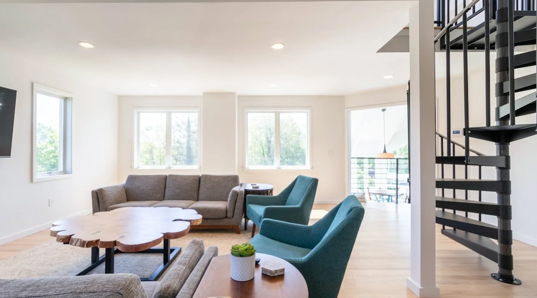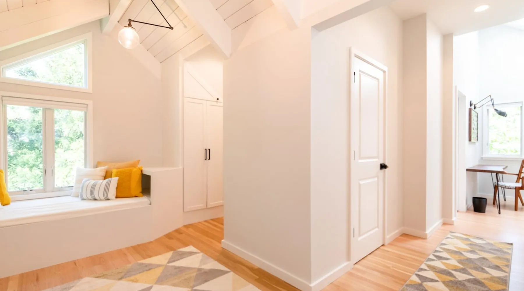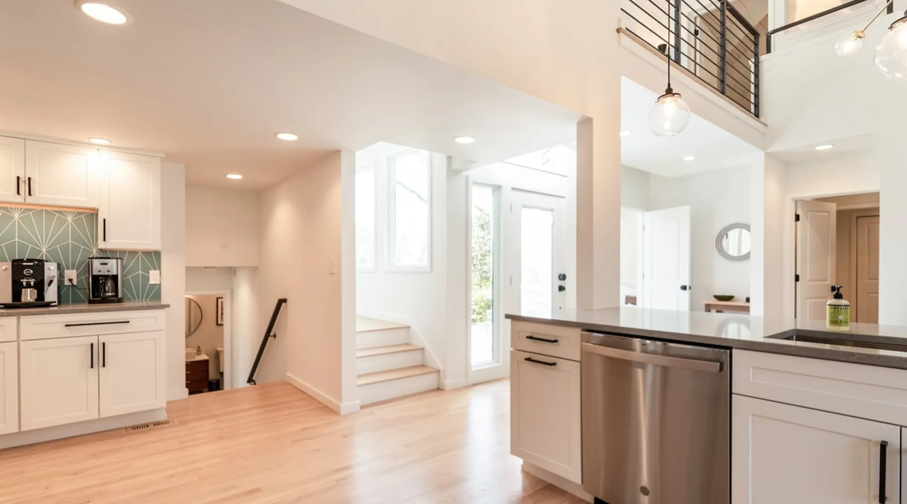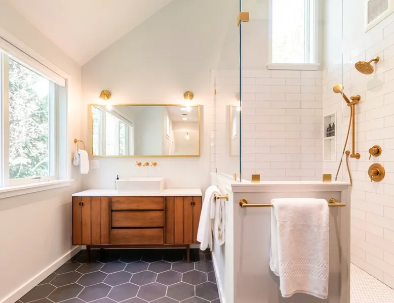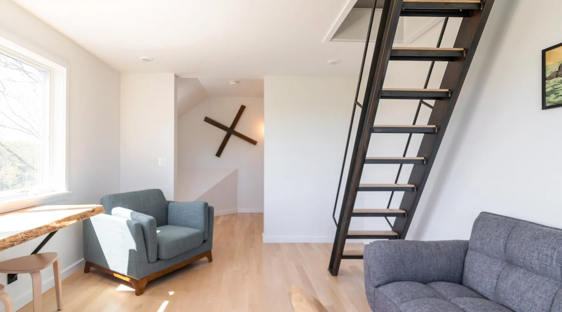 Beautiful modern masterpiece down a quiet street with quick access to Woods Hole, Shining Sea Bikeway, and the Vineyard ferry. This architecturally significant house was designed by the renowned postmodern architect Charles Moore and built in 1969. An addition providing ample entertaining space - including a dining room, den, loft, and roof deck - was completed in 2021, along with top to bottom refinishing of all rooms. This house has mid-century charm in spades with all the modern conveniences. The space The house offers 4 bedrooms each with a queen bed and private full bathroom, and each on its own level that provides ample privacy for those sharing this impressive house. The entrance opens into a foyer adjacent to an open concept kitchen with peninsula seating for 4. Continuing to the back of the house is a large dining room with a wet bar and custom designed dining table that comfortably seats 10, and can also function as a ping pong table (net, paddles, and balls provided!). Also on the main level is a full bathroom with shower stall, a laundry closet with washer and dryer, and the first bedroom. Adjacent to the main entrance, and three steps down, is a large bedroom with an en suite with shower/tub. Back in the kitchen, and past the coffee bar - complete with espresso machine, drip, and Keurig - is another bedroom that is down one flight and is adjacent to another full bath with shower stall. The master bedroom is found upstairs, part of a 4 room suite that includes a sitting room with desk and loveseat, designer bathroom, and a built-in twin sized day bed - perfect for younger ones. Three staircases lead to the second floor (also a catwalk away from the upstairs bedroom) which offers plenty of room for your group to spread out: whether it’s reading a book at the cozy living room window seat while listening to the console record player, catching up on your streaming in the den, playing a game in the breakfast room, finishing a puzzle in the loft which includes a futon couch (up a spiral stair), or enjoying the roof deck (accessible via ship’s ladder) with panoramic views of Martha’s vineyard and surrounding waters. Adjacent to the den are bookcases full of games and books for your enjoyment, and a powder room. Additional outdoor space is off the main entrance: a lit peastone patio with outdoor table seating for 4 and a pair of Adirondack chairs to relax in. An outdoor shower rounds out the exterior amenities. The house is equipped with three zone central air conditioning, 4K streaming Roku TVs in each bedroom, high speed internet, and a fully equipped kitchen that includes microwave, dishwasher, and 5 burner gas range. An outdoor 50 amp outlet is available for charging your electric vehicle. Guest access The neighborhood is quiet with minimal street traffic, but provides quick and easy access to all that you want from your Cape vacation: a 4 minute walk (0.2 miles) to the Shining Sea Bikeway, 10 minute walk (0.5 miles) to downtown Woods Hole, 12 minute walk (0.6 miles) to the Martha’s Vineyard Ferry, a 7 minute bike ride to Surf Drive beach via the Bikeway, and a 7 minute drive to downtown Falmouth. Other things to note The house, the common areas, and bedrooms are split on several levels with many stairs leading between, and may not be optimal for young children or those with limited mobility.