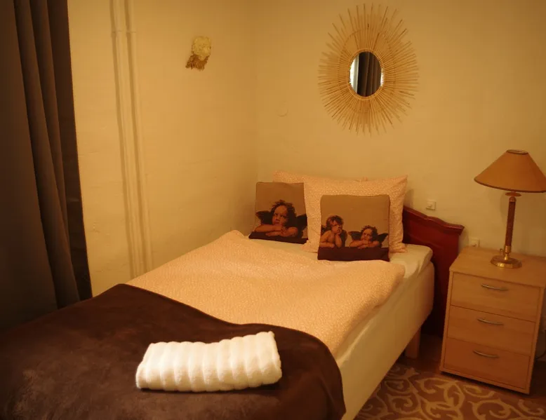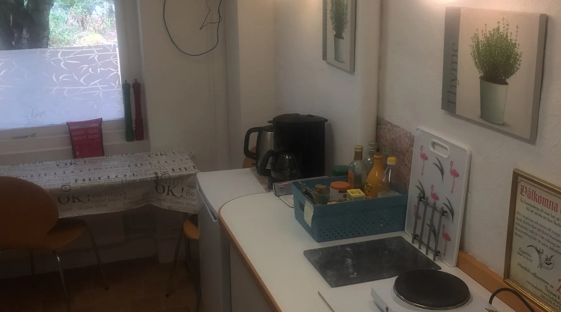 All guests have their own room. Kitchen, living room, 2 wc and 2 showers as well as a patio are shared. Single room has 1 x 90 x 200 bed, double room has 2 x 90 x 200 beds The space Private room, shared kitchen, living room with TV, large patio in the garden, 2 shared shower/WC Guest access Guests have a large patio in the garden, the rest of the garden is private During your stay We clean all rooms once per week. If the guest needs to reach us, we will be at tel no. 0708140160 between 9am - 9pm