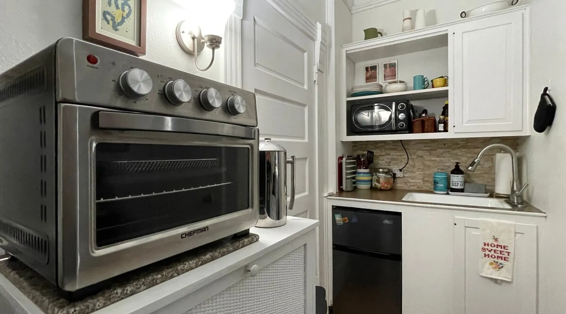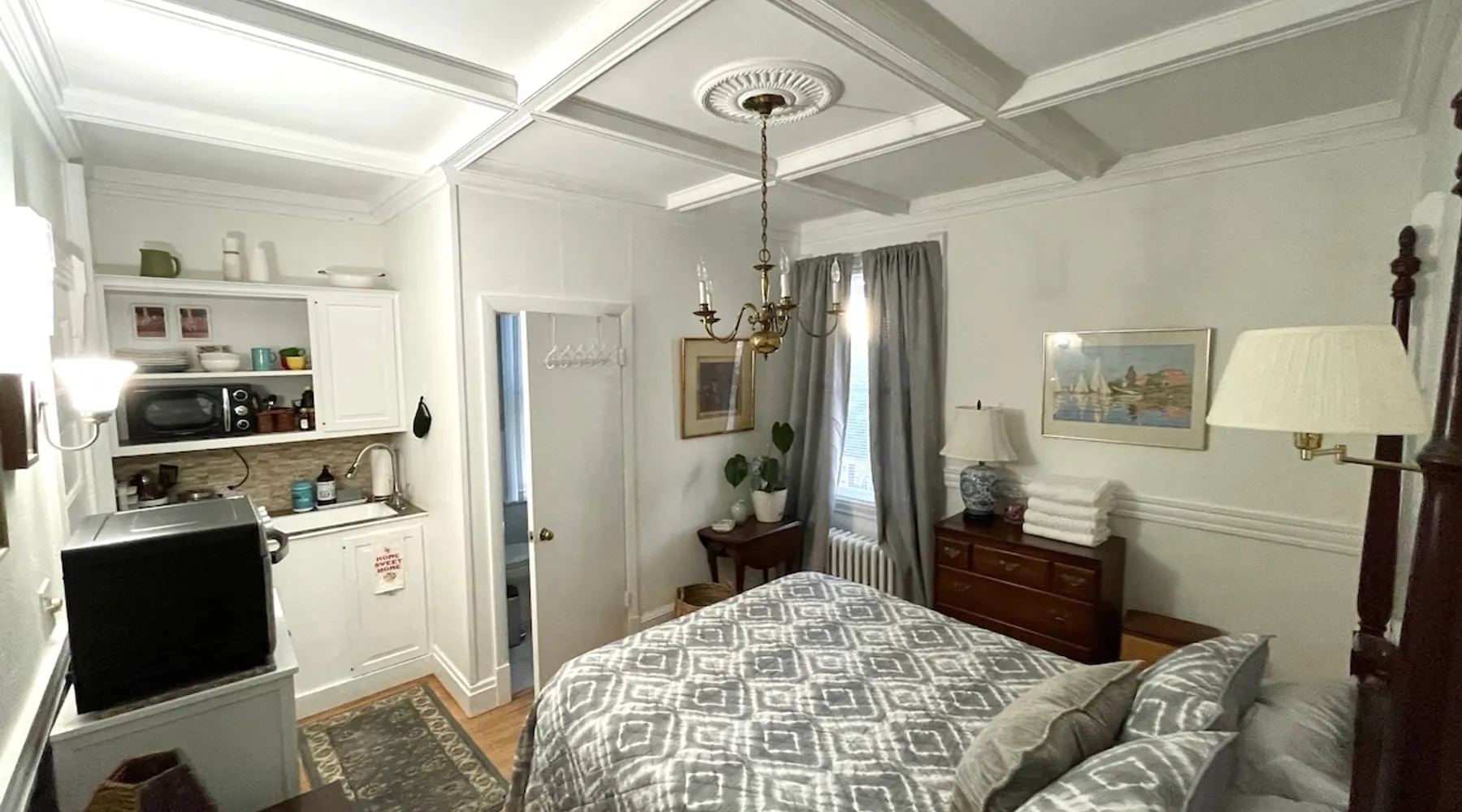 +PLEASE READ ENTIRE LISTING before booking and ALL pre/post check in/out info after. Thank you. Hello! This is a perfect little weekend getaway spot for two adults. You will be in walking distance to downtown, the Wednesday Farmer's Market, Salve, Cliff Walk, Mansions, Easton's Beach, a grocery store, coffee shops, and a pharmacy. We are an owner-occupied multi-generational Newporter (+ 1 dog from Tennessee) home. LGBTQ+ friendly. We know the vegan spots if you need them. All are welcome! The space Small Bedroom, 1/2 Bathroom, Kitchenette, and den with private entry from our front porch. The rental is 2 rooms in total, not the entire house. This was an efficiency apartment when my grandparents bought the place in 1959. My Nana has always called that little bathroom "The Lavette." <3 There are basic kitchen supplies (salt, pepper, utensils, but nothing for actually cooking, as it's just not ideal in this small space) Air conditioner in the bedroom only *Please note that the bedroom & kitchen area are in the same room. Some folks have somehow been unable to see this in the very clear photographs we've posted. Guest access There is free, on-street parking, although we are on a through street & it can get a little dicey in the summer. PLEASE tuck your side view mirror in. It's a mostly quiet neighborhood (again, summer=congested). If you enjoy walking, you won't have to use your car much if at all during your stay. We are close to so many things. We ask that you be respectful of our neighbors. Other things to note ACCOMMODATIONS: Let us know if you plan to use the sofa bed so we can be sure to have it made up for you. GUESTS: We ask that you do not have guests other than yourself and/or travel partner. Children *can be accommodated but this is a small space and I don't recommend it. SMOKING: This is a non-smoking household. There is no smoking in the rental. NOISE: Music flows RIGHT THROUGH this house, and I have very early work hours, so please keep music at a reasonable volume. We try to be as quiet as possible while hosting guests but we do live in the house. It's possible you might hear the washing machine or the dog, or teen laughter. I dunno. If you are here during the weekdays M/Tue: you will likely hear the children and I getting ready for school/work in the morning. TV: The TV we have is a new-fangled smart tv with sign in access ONLY (Netflix, Hulu, etc.). It doesn't pick-up any local channels, so if TV is a big deal to you and you have no sign-in access to anything, maybe book elsewhere. I dunno, we got a negative review for not having cable so now I feel like I have to mention this ultimately stupid detail. Registration Details RE.04435-STR, expiry date: 2025-05-30