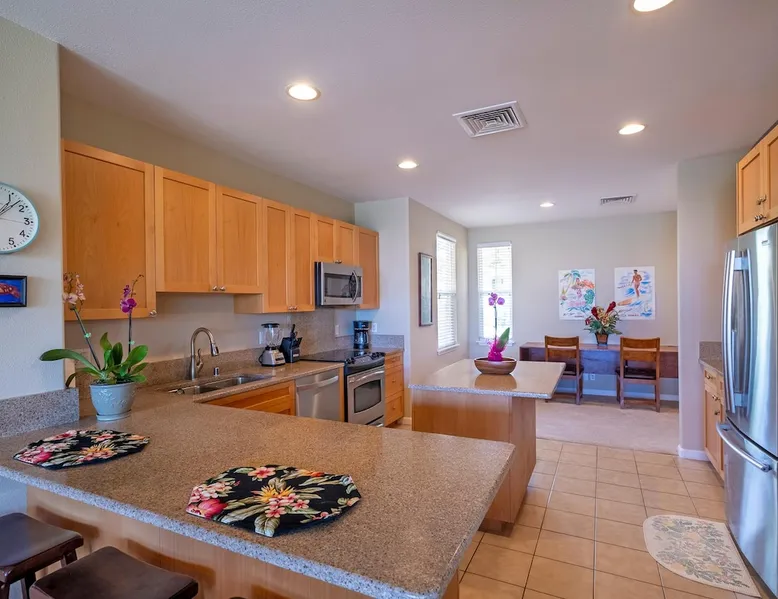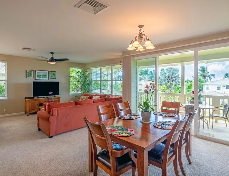 Nihilani 9C -This single level 2nd floor townhome is tastefully decorated with terrific artwork. Encompassing nearly 2000 sqft of living space, there is plenty of room for everyone to be together as well as have privacy. The space This single level (upper floor- "2nd floor") townhome is tastefully decorated and has terrific artwork as well. With nearly 2000 square feet of living space, there is plenty of room for everyone to be together as well as have privacy for quiet time. There are two lanais. Central air conditioning for those hot summer nights and a tropical oasis pool to help you unwind and relax on the north shore of the beautiful island of Kauai. There is a large flat screen television in the living room with Digital Cable and DVR player/recorder (and DVD) and one television in the Queen bedroom. One of the most important elements of a vacation rental is the bed ...these beds are of highest quality and comfort. Hi Speed Wireless internet provided. Non smoking unit. Come enjoy beautiful Kauai. Hawaii Life Rentals is a locally owned, licensed real estate company with rentals on Kauai, Maui, Oahu, and Hawaii. We offer on-island personal assistance and Concierge services. Rates do not include taxes, cleaning and applicable fees. Hawaii Life/VRBO bookings: Guests must sign a rental contract within 48 hours of booking to confirm the reservation. TA-060-324-2496-01 TMK-540050240027 Registration Details 540050240027, TA-209-359-5136-01