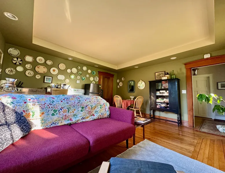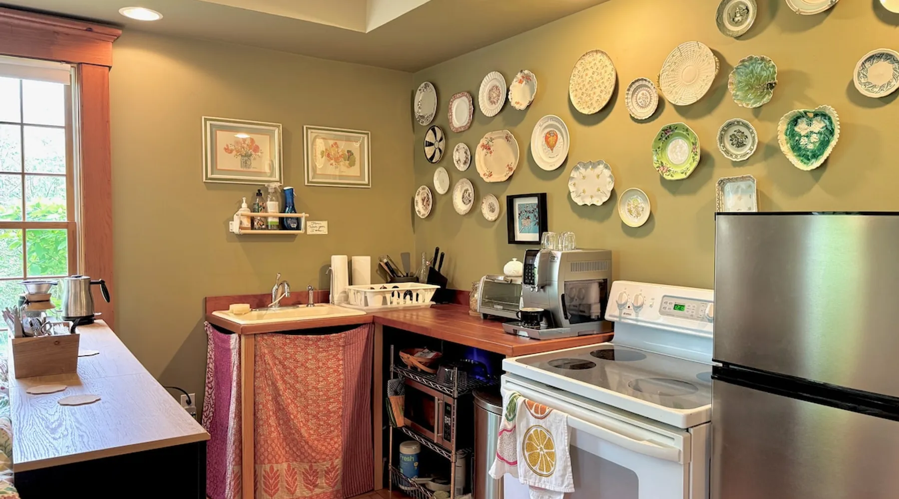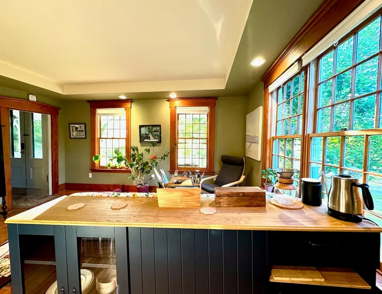 The Spooner House – your retreat in the Upper Valley. This spacious suite features a cozy fireplace, mountain views, and a private bathroom with a clawfoot tub and shower. Enjoy the luxurious king-sized bed and serene ambiance. Located just 15 minutes from Quechee, Norwich, Hanover, and Lebanon, and close to Woodstock (25 min) and Killington (39 min). Your stay includes a self-serve breakfast with granola, yogurt, fruit, espresso drinks, and tea. You'll also have access to the guest kitchen. The space The Spooner House, built in the 1780s by Paul Spooner, then Lieutenant Governor of the Vermont Republic, and his wife Asenath Wright, is rich in history. Over the years, it has served as a tourist house, working dairy farm, and private residence. The Atwater Room, named in honor of Heather Atwater who saved the building from demolition in the 1990s, is a spacious suite. Heather dedicated years to restoring the house and its outbuildings to their former glory. This charming suite features a cozy fireplace, a private bathroom with a clawfoot tub and shower, a luxurious king-sized bed, and a vintage record player for your enjoyment. We provide all the essentials for a comfortable stay, including towels, shampoo, conditioner, and soap. Downstairs, you'll find the shared shared guest kitchen. The kitchen is equipped with a mini-fridge, electric cooktop and oven, toaster oven, coffee maker, and all necessary cooking and dining essentials. Guest access The roadside facing door is dedicated for guests to come and go. The Atwater room is located upstairs and to the right. Please note that walking up a full flight of stairs is needed to reach the room. During your stay We live in a separate part of the house and will be present to receive guests. The house is divided in two and guests are afforded as much privacy as they desire. Denise and Jason love meeting and chatting with travelers from all over the world! Other things to note The room is located up a full flight of stairs.