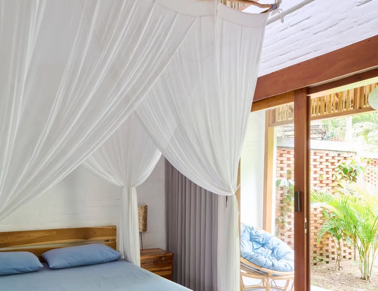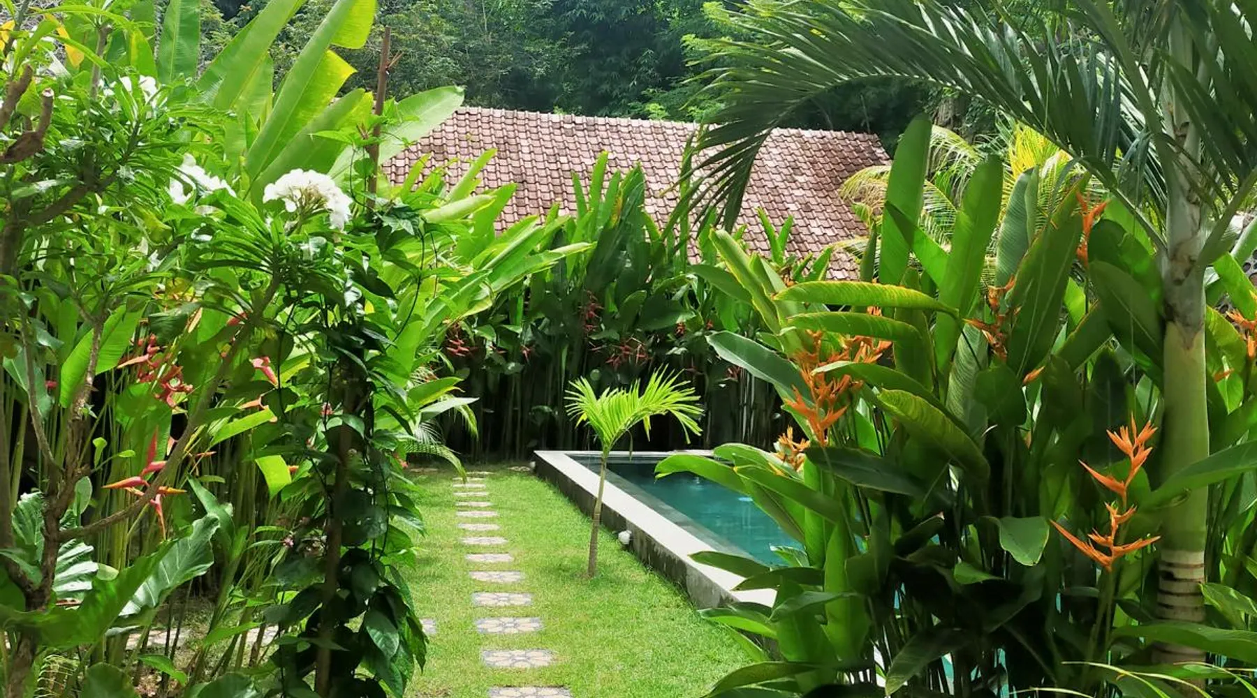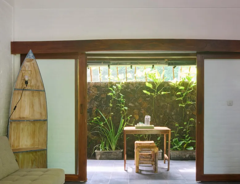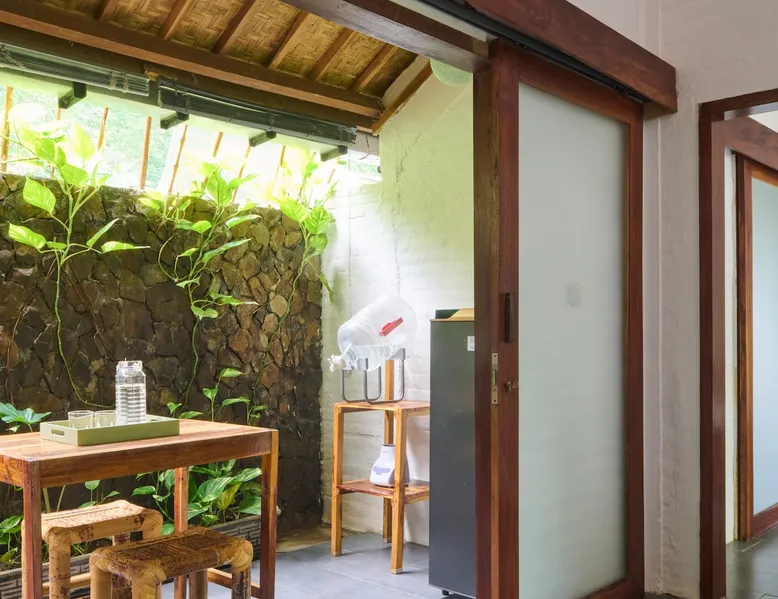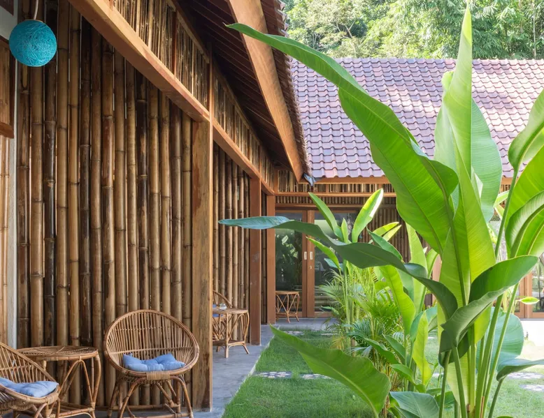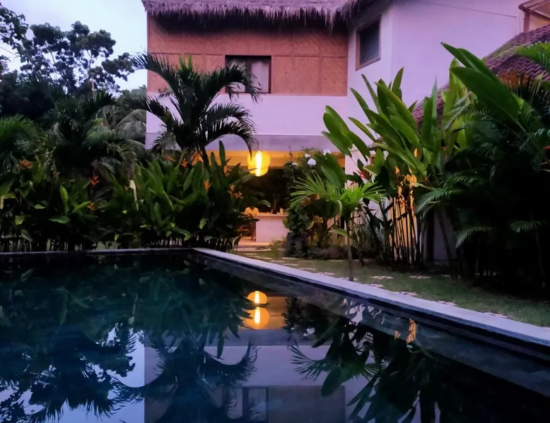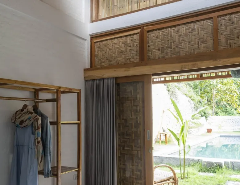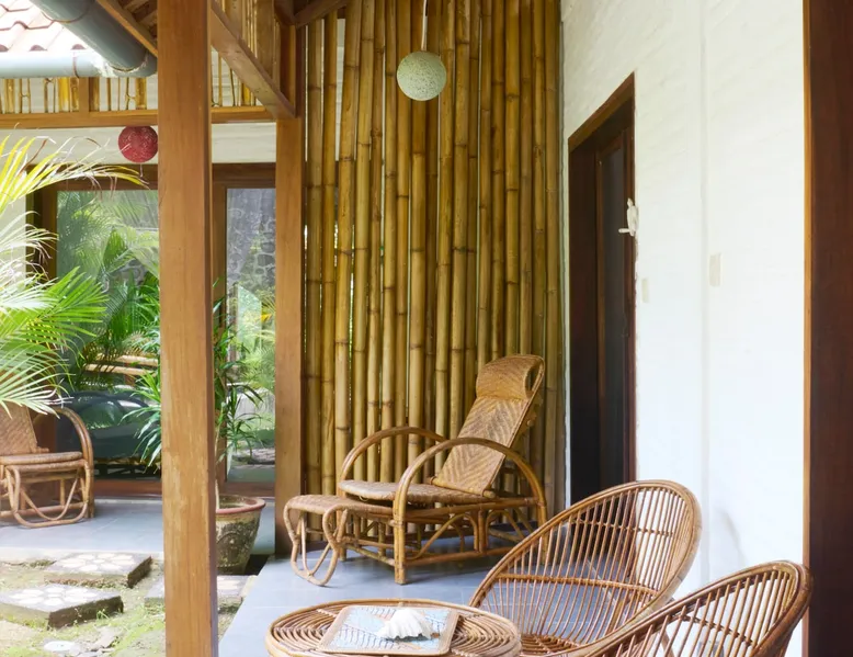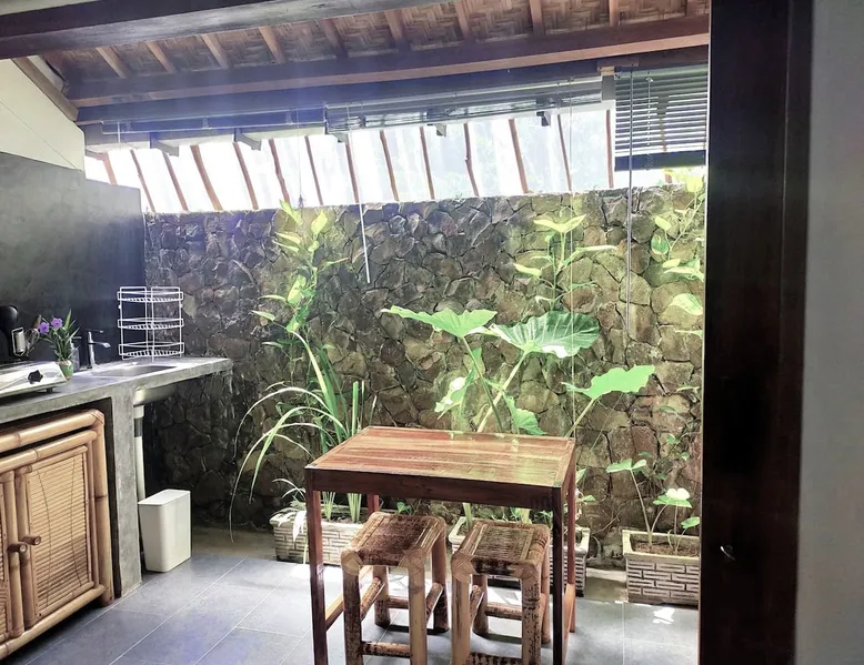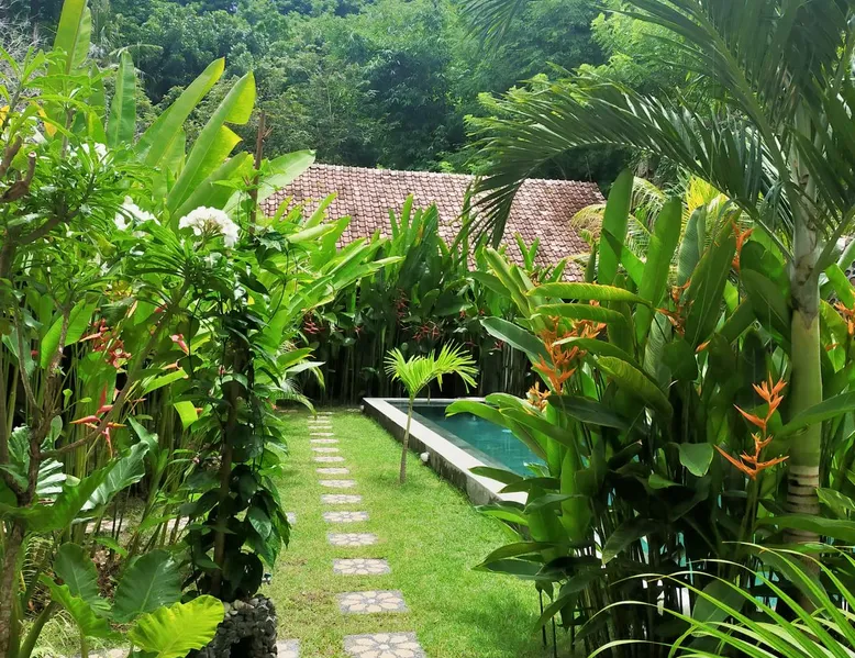 Self-catering accommodation: Enjoy a relaxing atmosphere at our homestay, a tranquil, familiar place, located outside of central Kuta in a small quiet forest. Our studio, for a maximum of 2 people, features a bedroom, sitting room, private bathroom and a well equipped private kitchenette. The space Spacious self-catering studio; a 10-m shared swimming pool in a quiet garden Guest access Pool, garden and common eating area are shared with other guests. Other things to note Please be aware that you should be able to drive a scooter or car as we are outside of Kuta's centre. Weekly room cleaning including change of bed sheets and towels included in the rate.