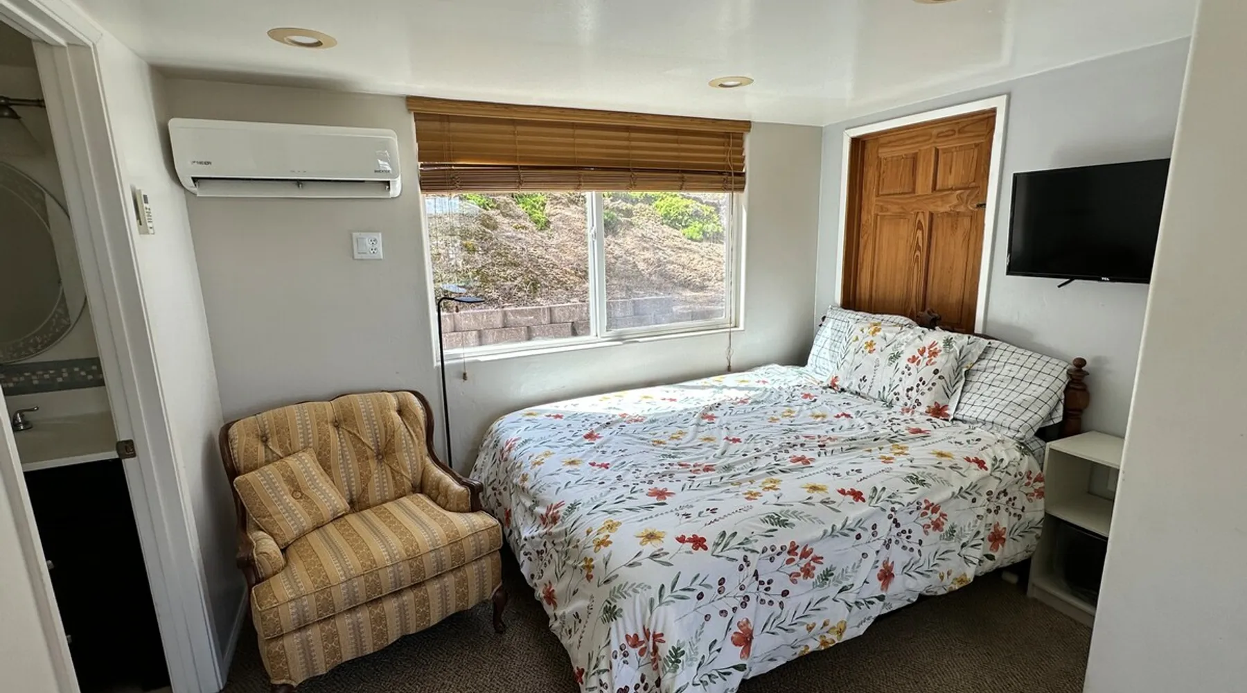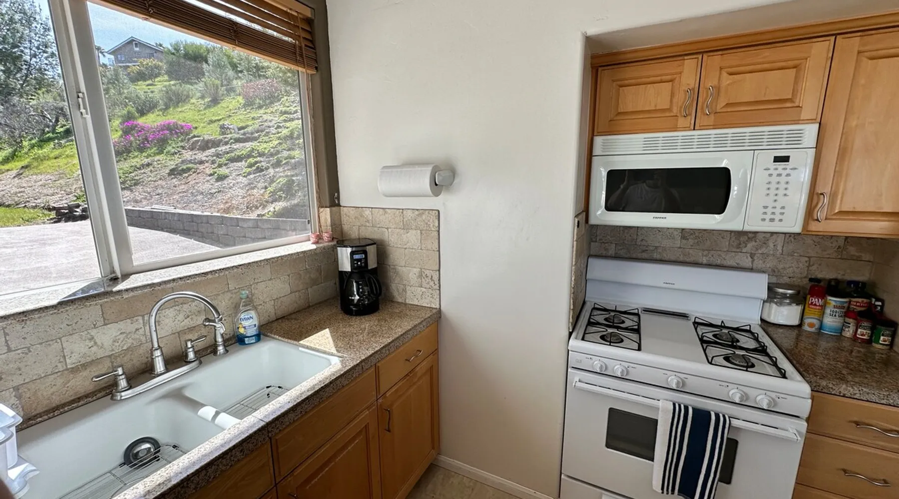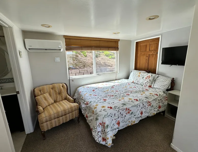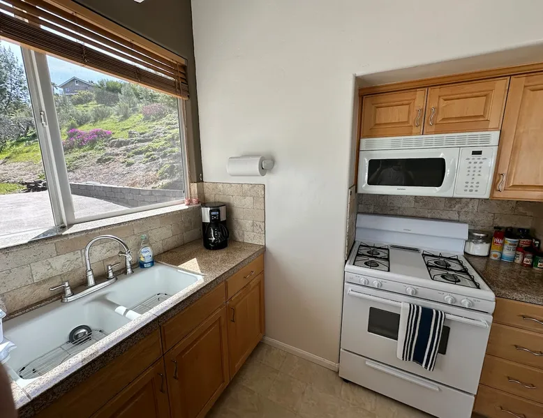 Cottage, own BBQ and beautiful view of the El Capitan Mtns. Quiet & has its own driveway on gated property. We only allow one guest. Extremely clean, quiet & secure. 2 areas to sleep, 1 in the loft (low ceiling though so you have to bend over if tall) (double bed) & one on a queen-size bed downstairs. We ask all guests to keep the unit clean & quiet. Check out our other Airbnb properties too! The house is for private use. The space This flat has a loft and as such gives a very open feeling. There is a wonderful view with privacy Close to freeways and great restaurants. 20 minutes from Mission Valley and Qualcomm Stadium. There is a HD TV that you can watch Amazon Videos on. Also GoogleTV. Large shower for after your morning jog! The house is very clean and newly constructed. There is a separate patio area with a bbq for your use. Charcoal not included. Guest access You will have access to the pool in warm months and enjoy the 1.25-acre yard and view. If you are in a wheelchair, it is NOT ADA but will work. Please ask before you book to see if it will work for you. Other things to note This is a quiet place and meant to be kept that way. It is fully gated, so it is very safe. We do not allow pets. If you are looking for a long-term rental and this is not available, our place in Julian (40 minutes away) might be available. Please also take a look at our other listed properties on Airbnb. We do not allow overnight guests or guests after 9 p.m. The area is for quiet guests only. No smoking is permitted. There is a place to do laundry about 2 miles away. You are welcome to use our pool during daylight hours. Also, there is a BBQ that you can use.