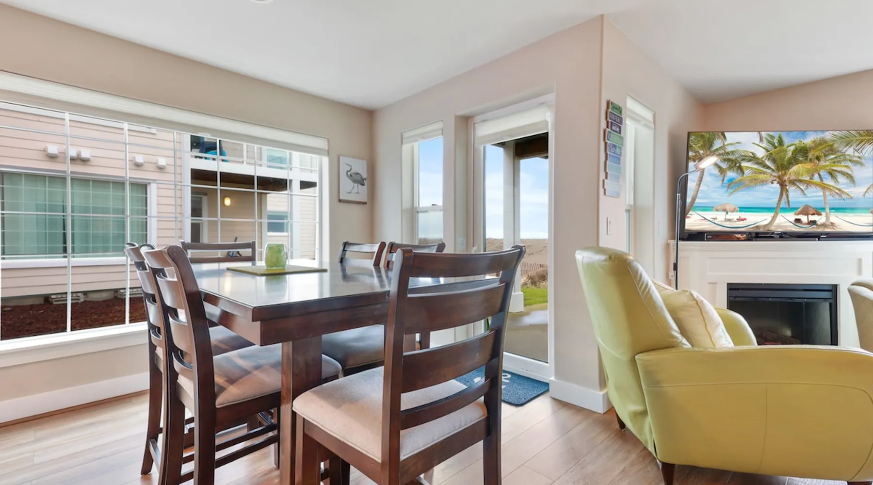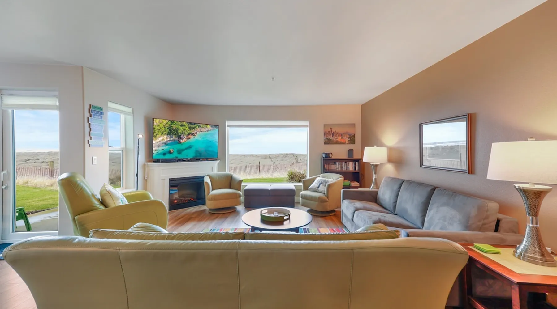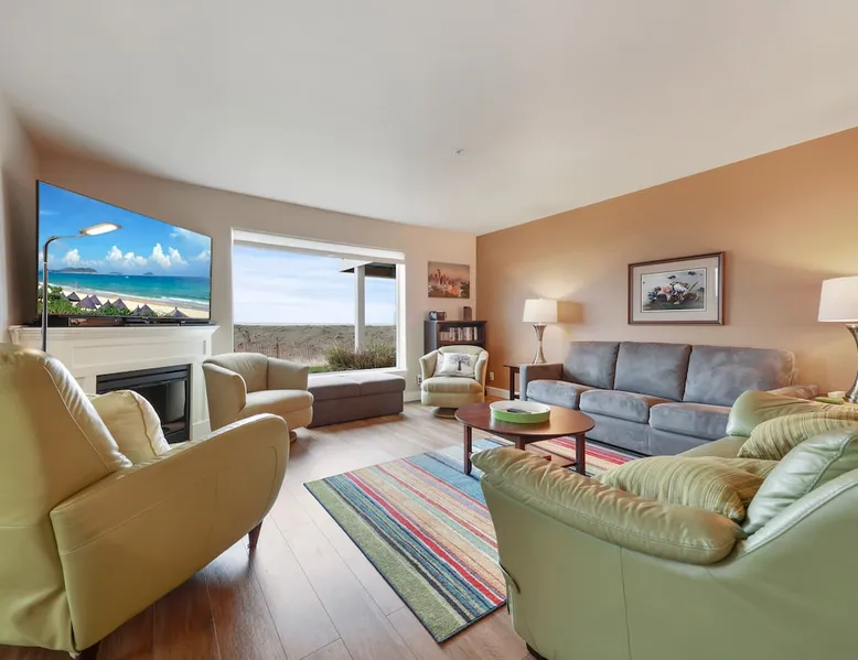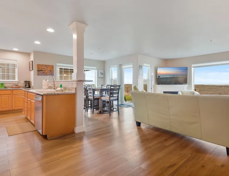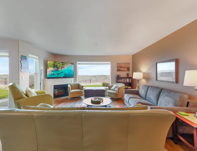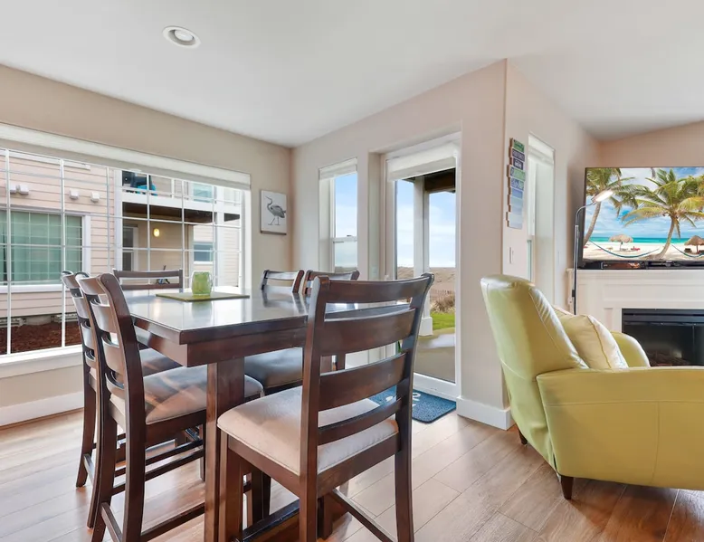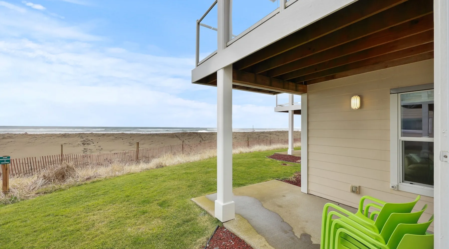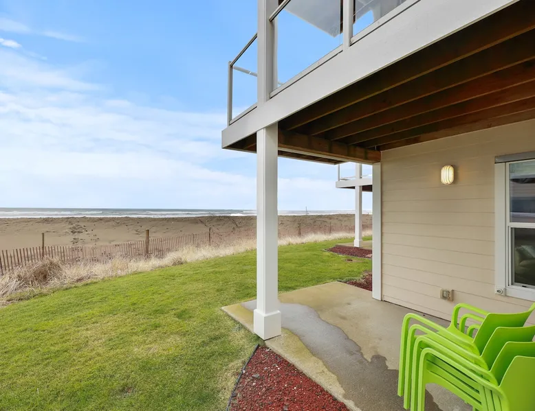You will find the Pacific Ocean just steps away from your patio door in this well apointed vacation home. Lovingly decorated with many new upgrades, you'll enjoy lounging in the living room with a good novel while watching the waves through the windows. The space One of our best ground floor homes, you will find the Pacific Ocean just steps away from your patio door. Decorated with attractive colors and Pacific Northwest art, this home is both stylish and inviting. Enjoy the tranquility of the patio and enjoy a perfect sunset at the beach. The beach trail is just a few steps from your door and leads you through the dune grass trail to overlook the majestic Pacific. There are miles of walking and biking trails through the adjoining state park. The town of Westport offers wonderful casual dining choices from pizzas to the freshest seafoods. Even in mid-winter you can bundle up and dash out for a quick taste of the wind and waves or explore the town without freezing. The coast is a dynamic place with the changing views and dunes from season to season. You’ll appreciate this bright end unit, no stairs access, and walking out to grass beyond your patio. There’s plenty of seating and bright picture windows here, a desk if you need to spend some time working, and all the TV channels you’ll want for viewing sports and movies. Following a dip in the ocean, warm up with quiet time in your soaking tub. The well-equipped kitchen has updated stainless appliances, and is open to the living room letting you enjoy the company of friends and family. This unit is a wonderful vacation spot for families – including games, puzzles, books, movies, plus a pack n play for infant and toddler guests. In addition to all the comforts of home in your beach vacation condo, your stay with us includes total access to all the amenities our property has to offer. This includes a large hot tub, heated seasonal swimming pool, barbeque grills, and well equipped exercise center at the clubhouse. There is also a large grassy playfield perfect for the kids, a basketball court, putting green, horseshoe pits, and playground for the little ones. Soak up the sunshine and relax on one of the many park benches and watch the activities. No worries, its time to have fun at the beach! Other things to note ***NOTICE: BUILDING 8 ROOF REPLACEMENT 9/8/25-10/15/25*** Please be aware the roof and associated trimwork is scheduled to be replaced on building 8 from September 8th – October 15th, 2025. We do not know the extent of the disturbance this work will cause our guests. Work will be performed between 8am- 5pm, Monday through Friday until complete. Guests who are sensitive to noise or activity happening outside the condo windows may like to choose alternative condos during this period. We apologize that the situation may impact full enjoyment of the condo during working hours, but want to be transparent about conditions which may be present during the day. Discounts or moving to alternate condos can’t be accommodated after arrival.
