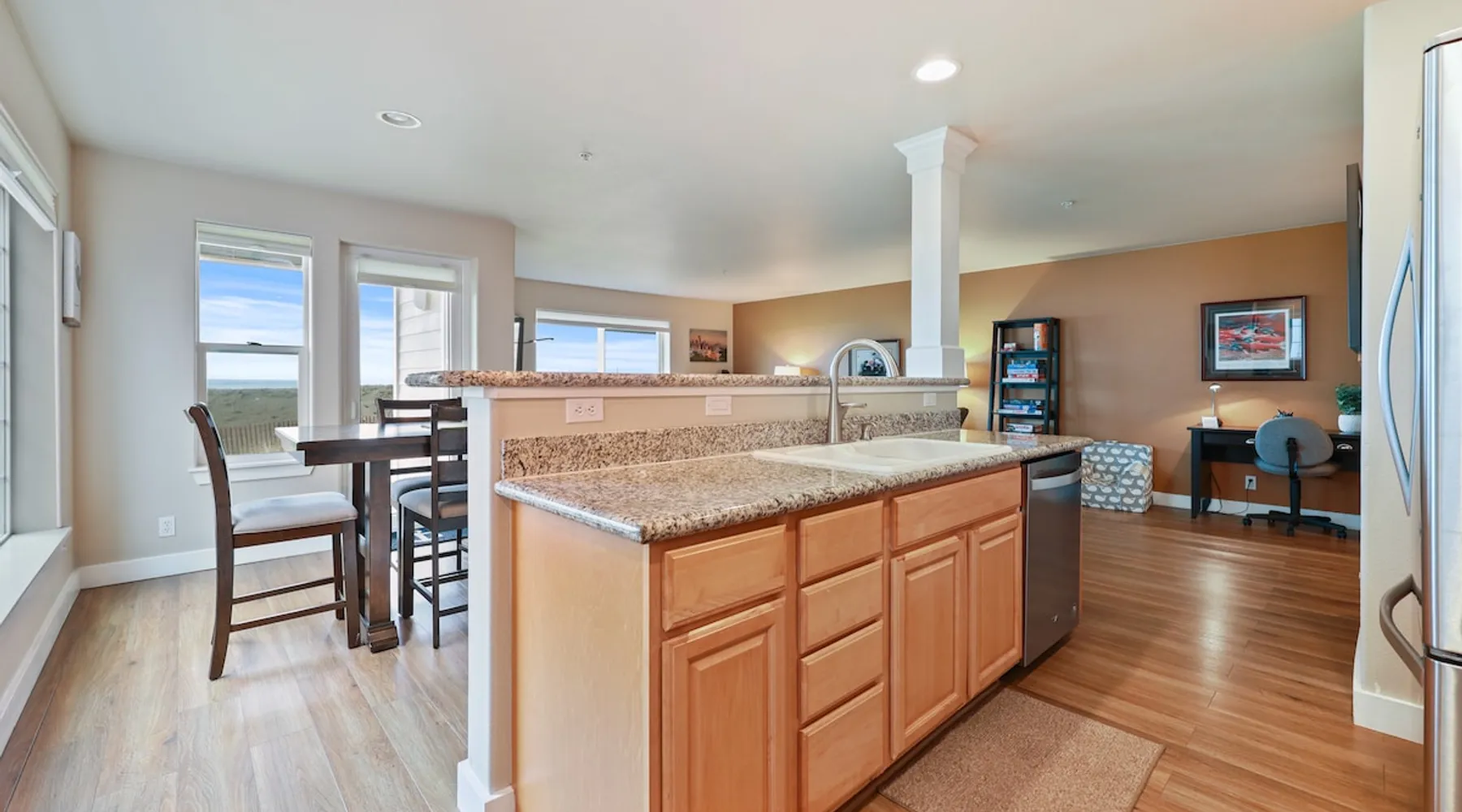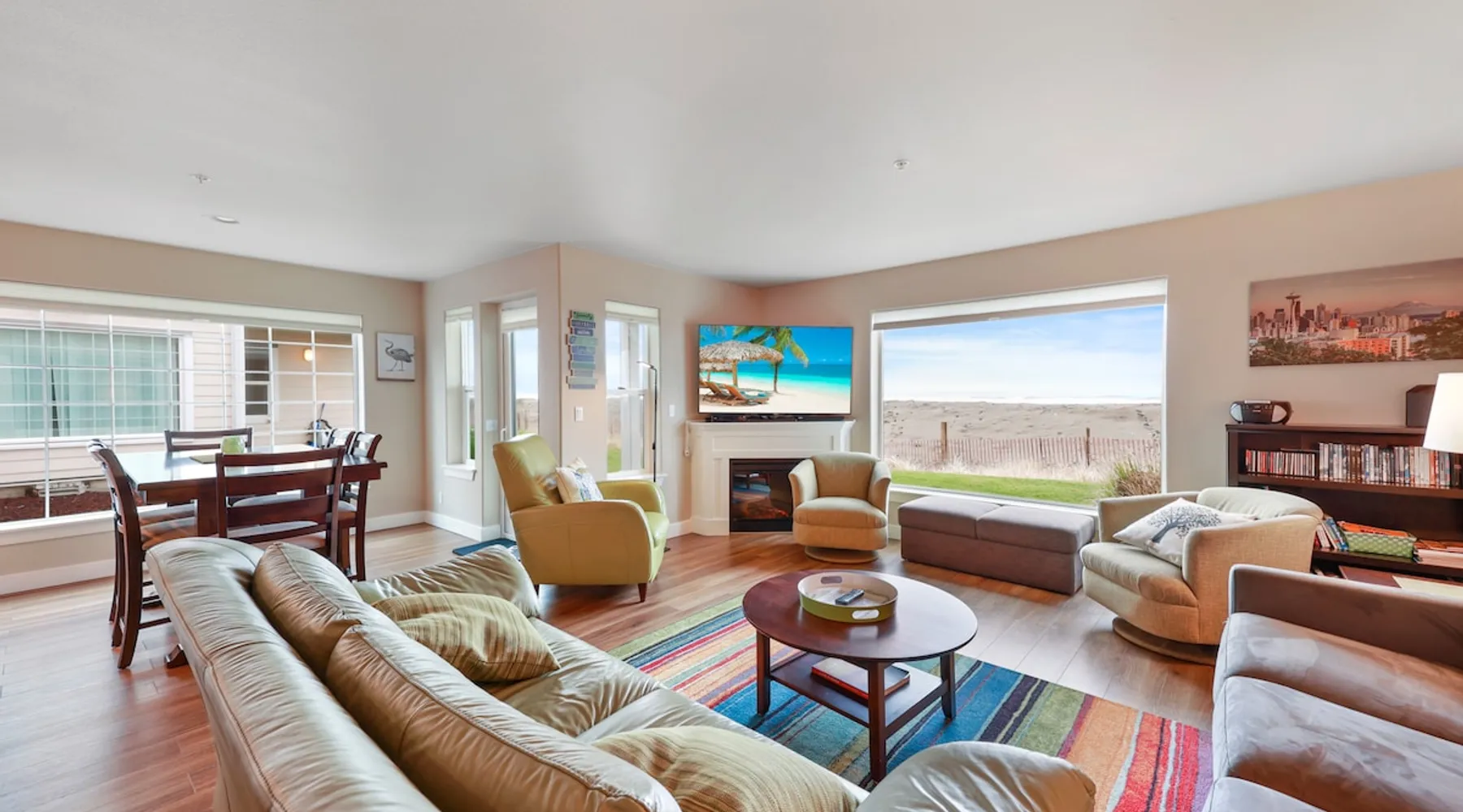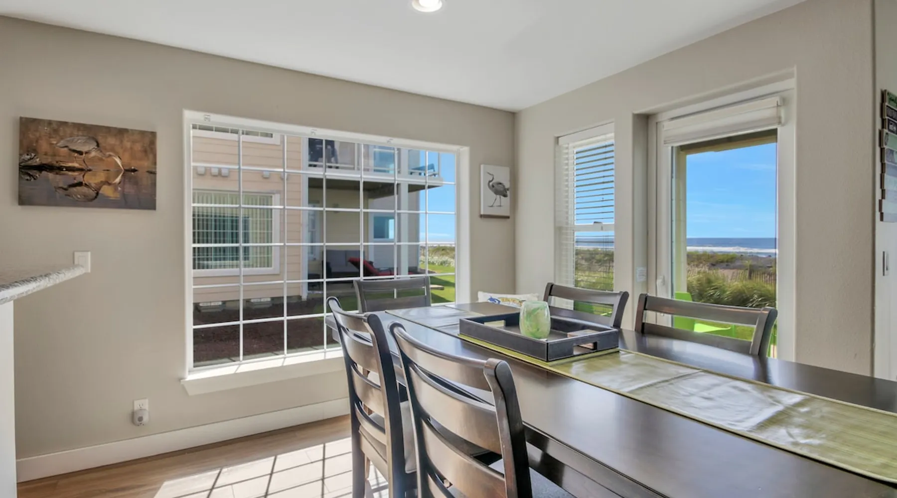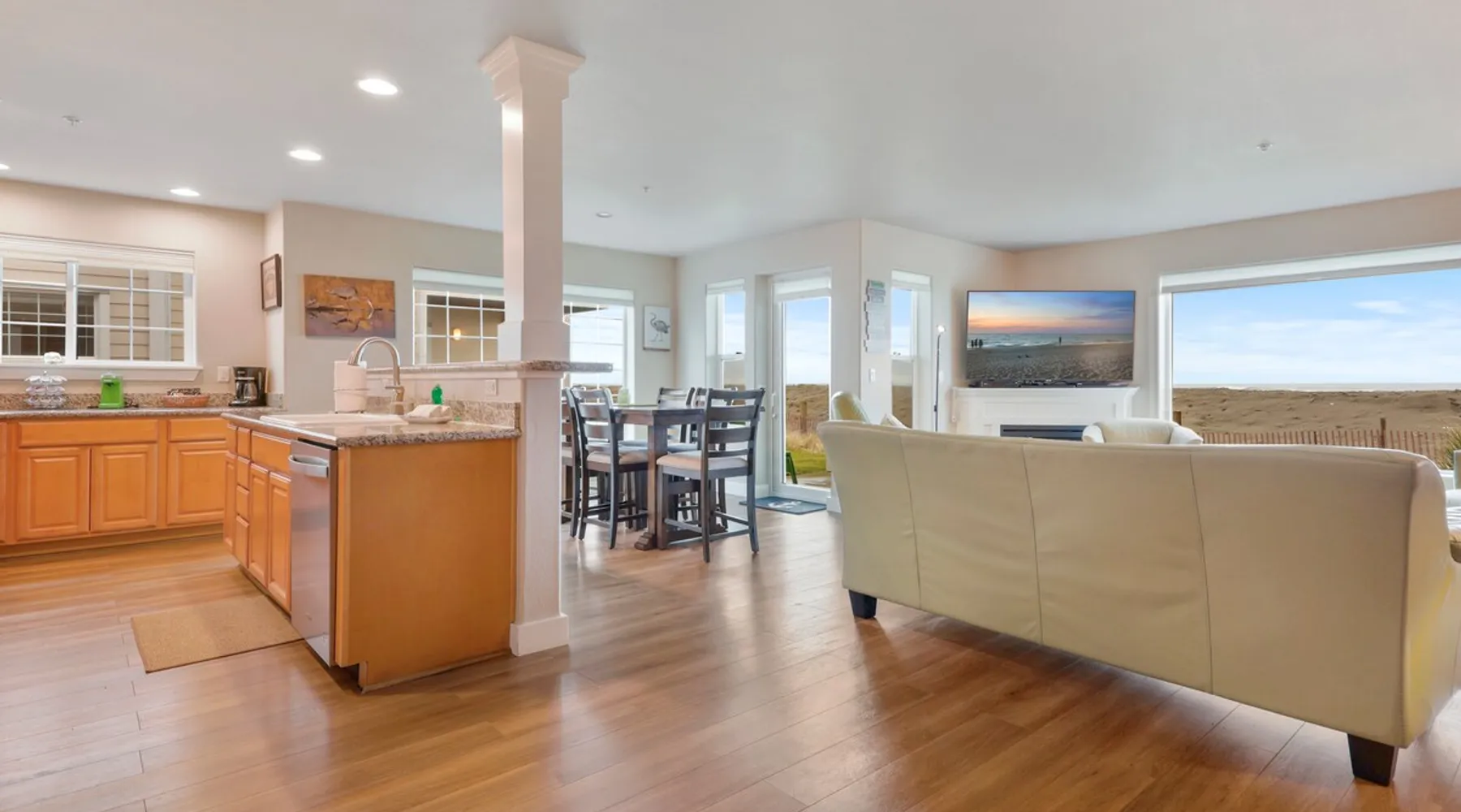 You will find the Pacific Ocean just steps away from your patio door in this well apointed vacation home. Lovingly decorated with many new upgrades, you'll enjoy lounging in the living room with a good novel while watching the waves through the windows. The space One of our best ground floor homes, you will find the Pacific Ocean just steps away from your patio door. Decorated with attractive colors and Pacific Northwest art, this home is both stylish and inviting. Enjoy the tranquility of the patio and enjoy a perfect sunset at the beach. The beach trail is just a few steps from your door and leads you through the dune grass trail to overlook the majestic Pacific. There are miles of walking and biking trails through the adjoining state park. The town of Westport offers wonderful casual dining choices from pizzas to the freshest seafoods. Even in mid-winter you can bundle up and dash out for a quick taste of the wind and waves or explore the town without freezing. The coast is a dynamic place with the changing views and dunes from season to season. You’ll appreciate this bright end unit, no stairs access, and walking out to grass beyond your patio. There’s plenty of seating and bright picture windows here, a desk if you need to spend some time working, and all the TV channels you’ll want for viewing sports and movies. Following a dip in the ocean, warm up with quiet time in your soaking tub. The well-equipped kitchen has updated stainless appliances, and is open to the living room letting you enjoy the company of friends and family. This unit is a wonderful vacation spot for families – including games, puzzles, books, movies, plus a pack n play for infant and toddler guests. In addition to all the comforts of home in your beach vacation condo, your stay with us includes total access to all the amenities our property has to offer. This includes a large hot tub, heated seasonal swimming pool, barbeque grills, and well equipped exercise center at the clubhouse. There is also a large grassy playfield perfect for the kids, a basketball court, putting green, horseshoe pits, and playground for the little ones. Soak up the sunshine and relax on one of the many park benches and watch the activities. No worries, its time to have fun at the beach! Other things to note ***NOTICE: BUILDING 8 ROOF REPLACEMENT 9/8/25-10/15/25*** Please be aware the roof and associated trimwork is scheduled to be replaced on building 8 from September 8th – October 15th, 2025. We do not know the extent of the disturbance this work will cause our guests. Work will be performed between 8am- 5pm, Monday through Friday until complete. Guests who are sensitive to noise or activity happening outside the condo windows may like to choose alternative condos during this period. We apologize that the situation may impact full enjoyment of the condo during working hours, but want to be transparent about conditions which may be present during the day. Discounts or moving to alternate condos can’t be accommodated after arrival.