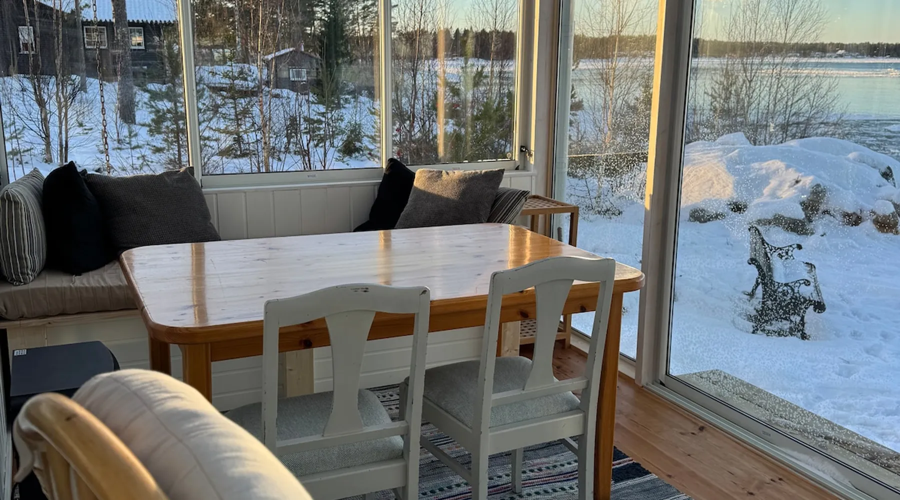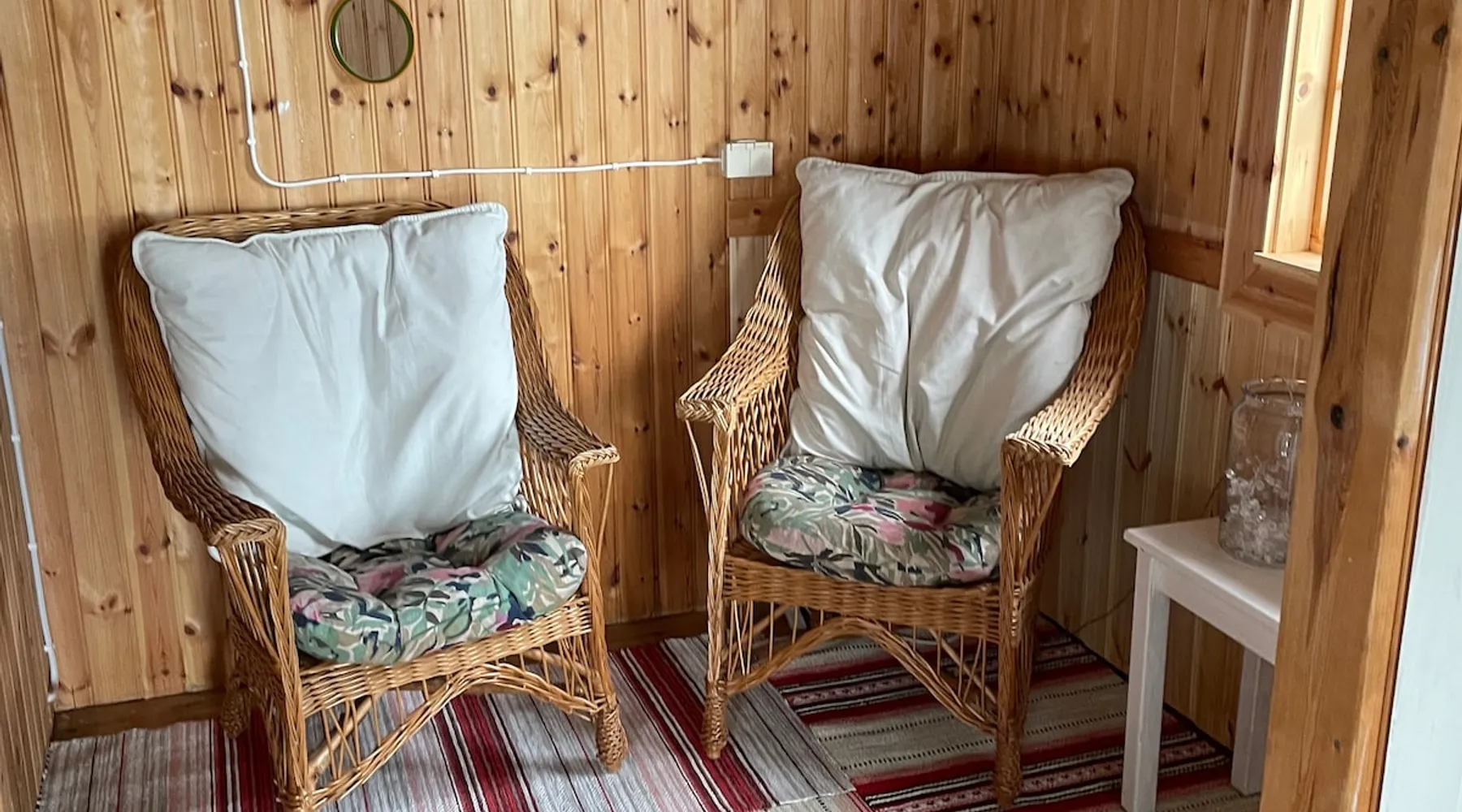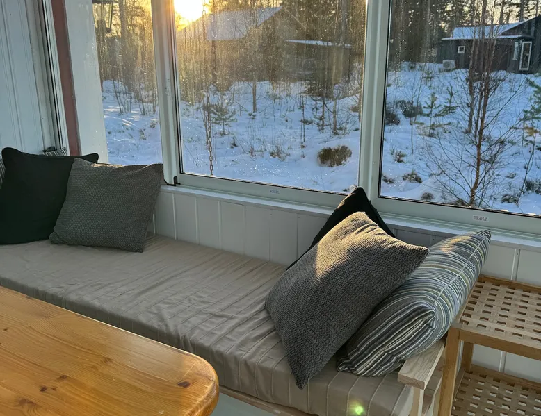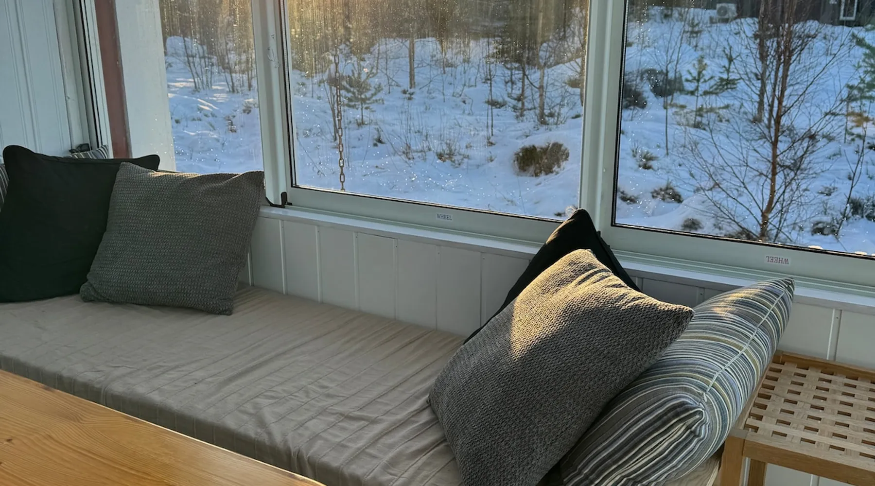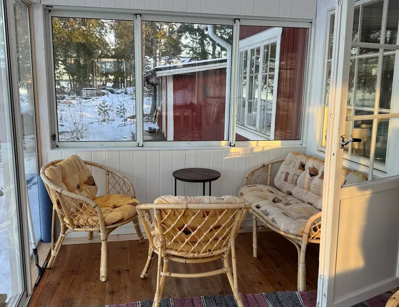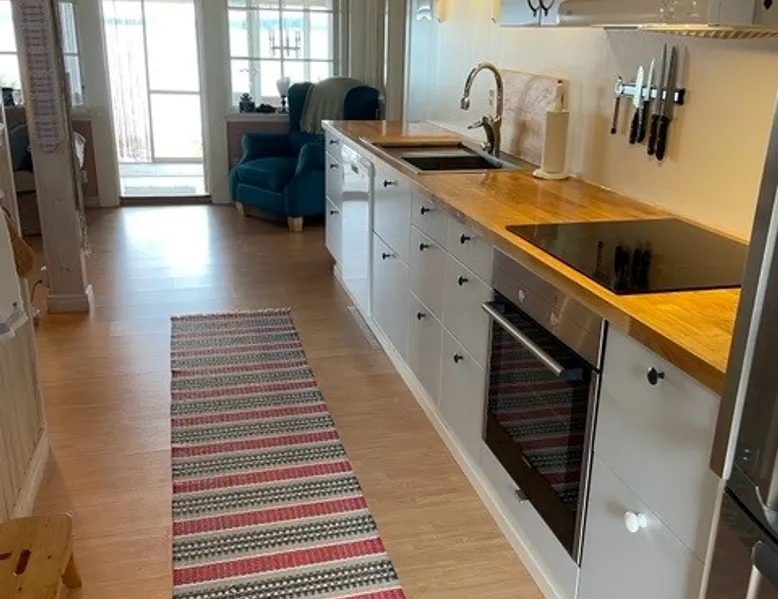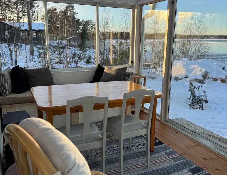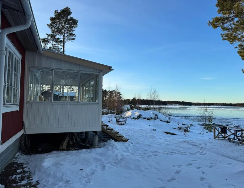 Relax in this unique and tranquil home right by the sea. The cottage has a villa standard with all amenities such as electricity, heating, water, shower and toilet as well as washing machine. The kitchen is fully equipped with dishwasher, microwave, convection oven and stove with induction stove etc. Enjoy the view, sunset and maybe some northern lights. Take a forest walk and cozy up in front of the fire. There is the possibility of a sauna and then a refreshing sea bath. Canoe, and 2 SUP boards are available to borrow. The space The house has four beds divided into two double rooms. An adult and child can also sleep on the sofas in the living room. During the warmer part of the year, it is also possible to sleep in a 120 cm wide bed in a private room in the small house where the sauna is also located. Other things to note The tenant cleans up after themselves before check-out. Cleaning instructions and equipment are available in the cottage.
