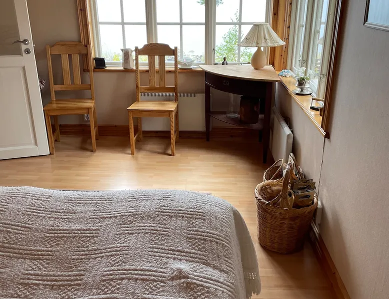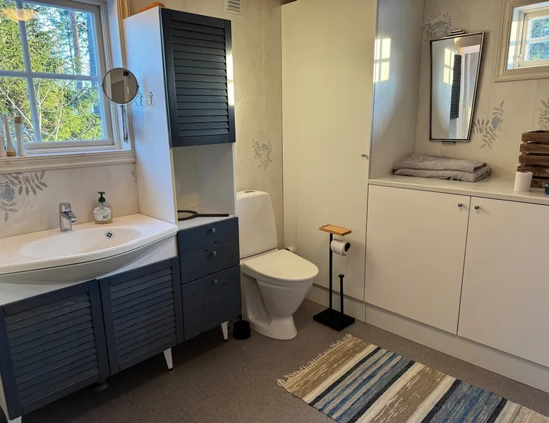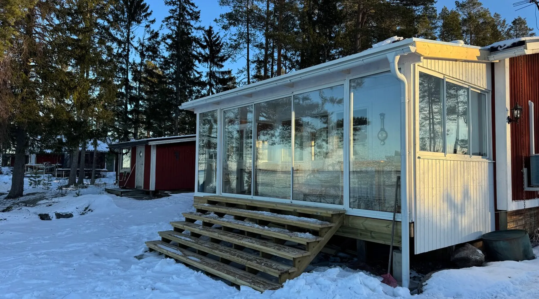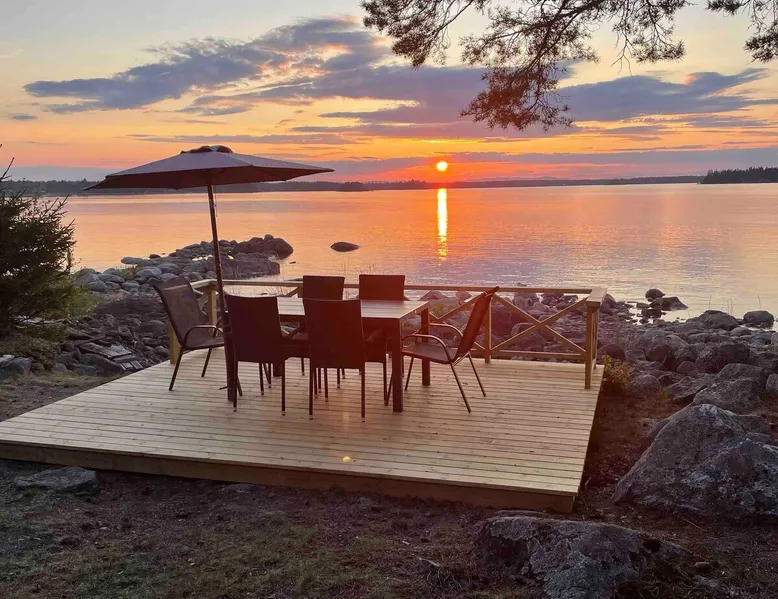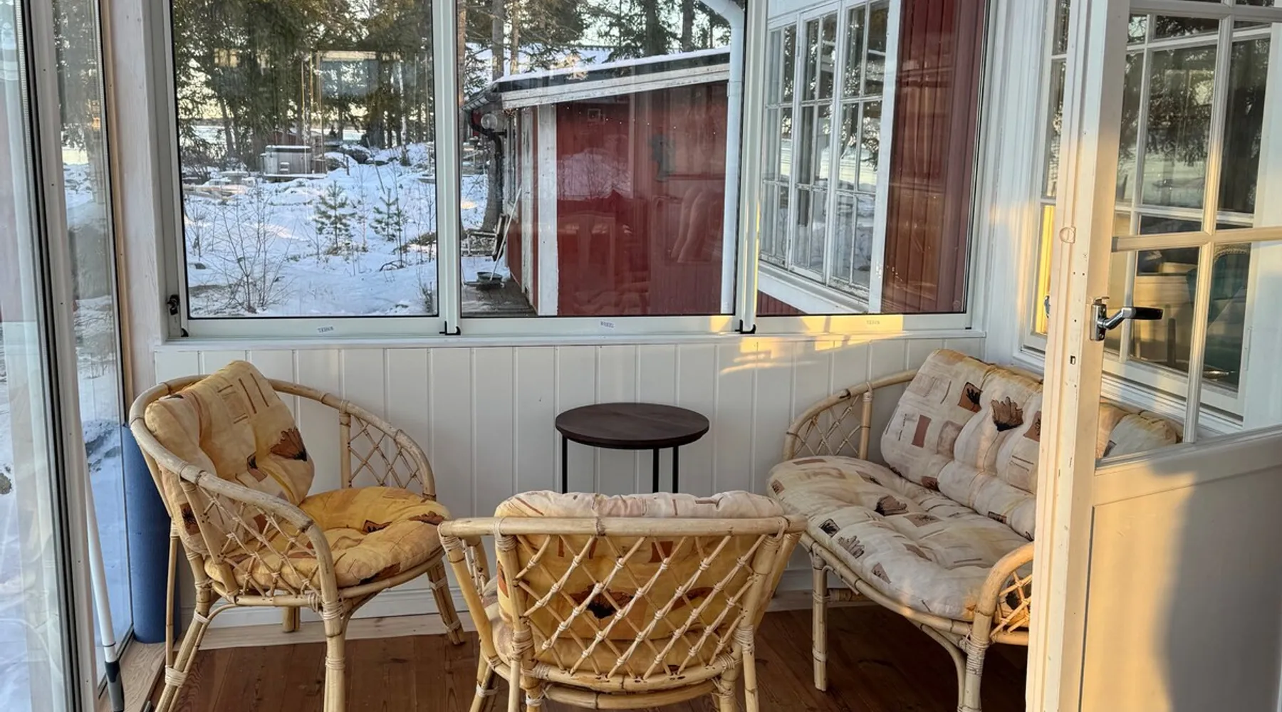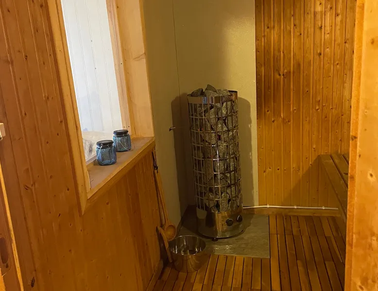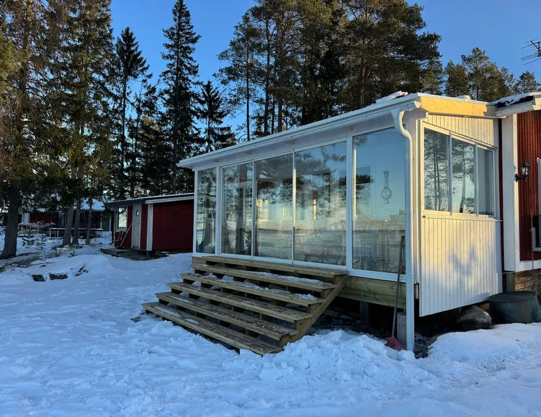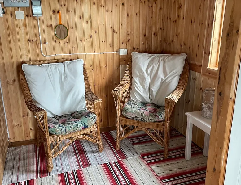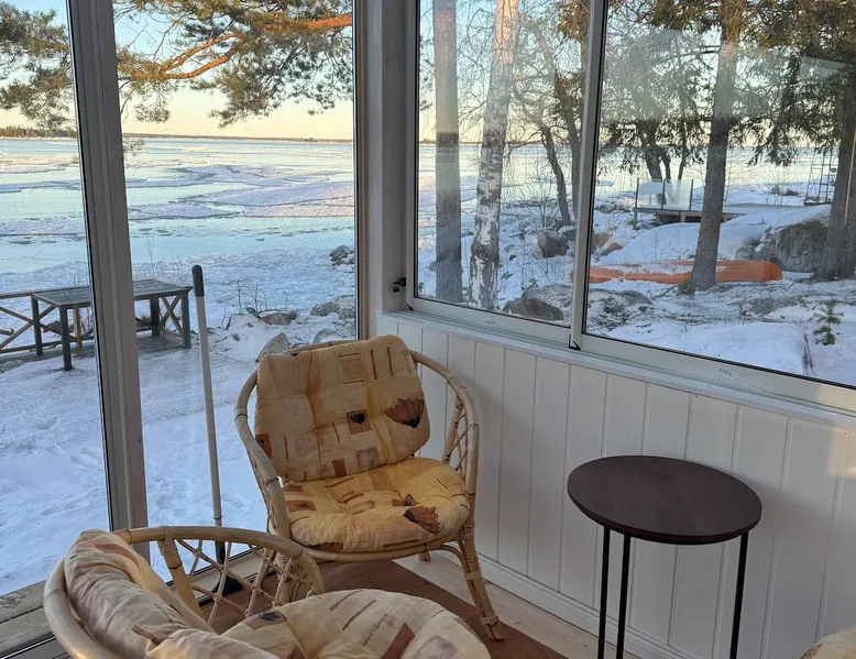 Relax in this unique and tranquil home right by the sea. The cottage has a villa standard with all amenities such as electricity, heating, water, shower and toilet as well as washing machine. The kitchen is fully equipped with dishwasher, microwave, convection oven and stove with induction stove etc. Enjoy the view, sunset and maybe some northern lights. Take a forest walk and cozy up in front of the fire. There is the possibility of a sauna and then a refreshing sea bath. Canoe, and 2 SUP boards are available to borrow. The space The house has four beds divided into two double rooms. An adult and child can also sleep on the sofas in the living room. During the warmer part of the year, it is also possible to sleep in a 120 cm wide bed in a private room in the small house where the sauna is also located. Other things to note The tenant cleans up after themselves before check-out. Cleaning instructions and equipment are available in the cottage.