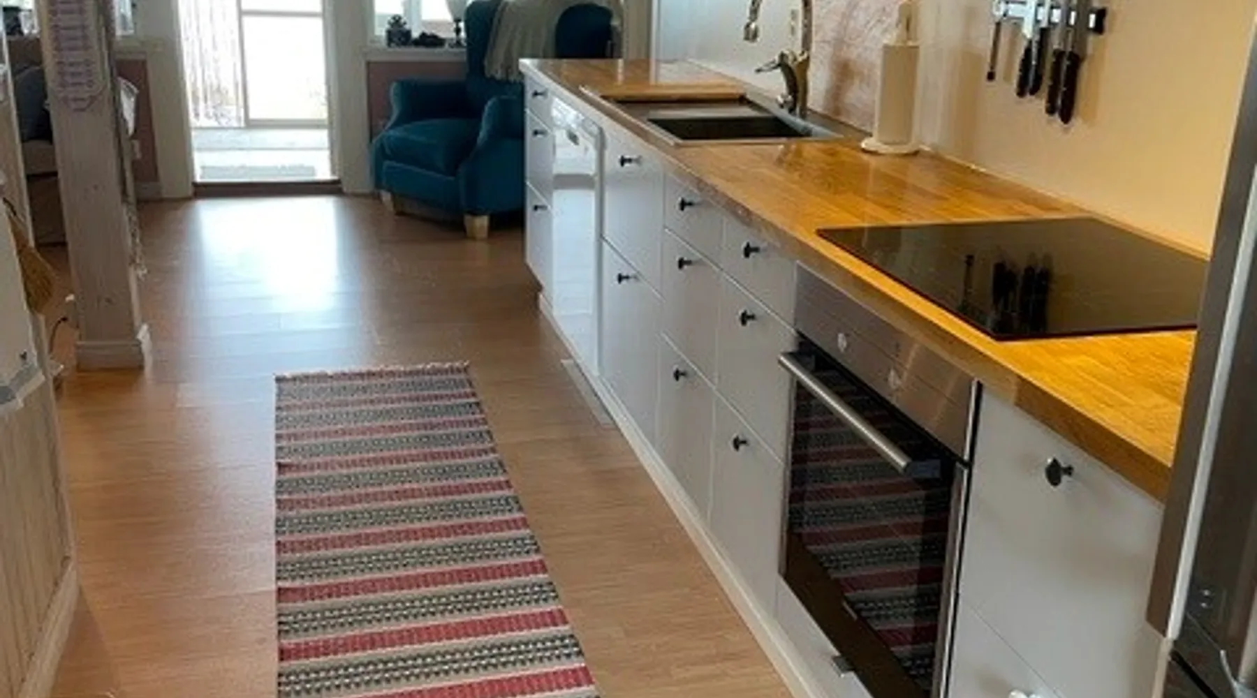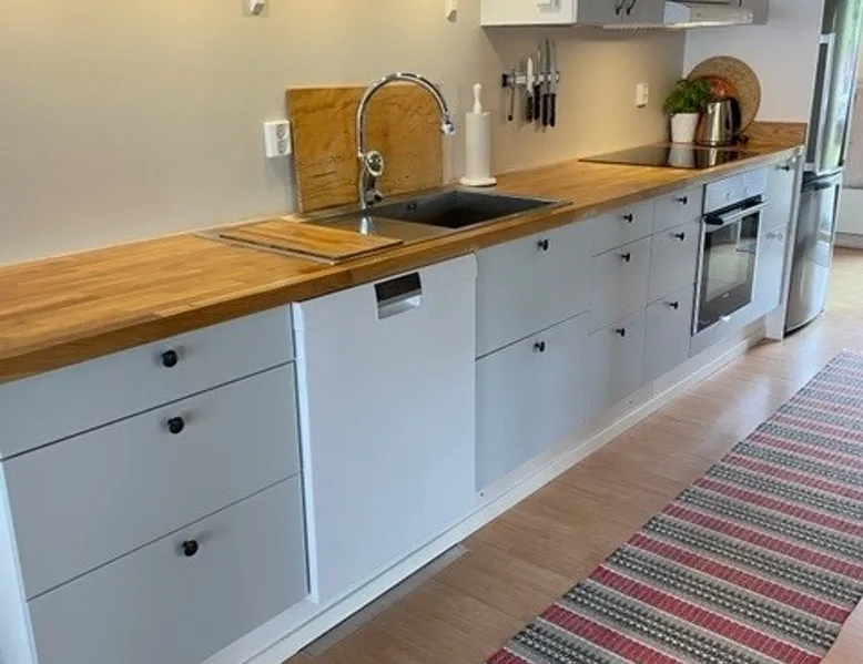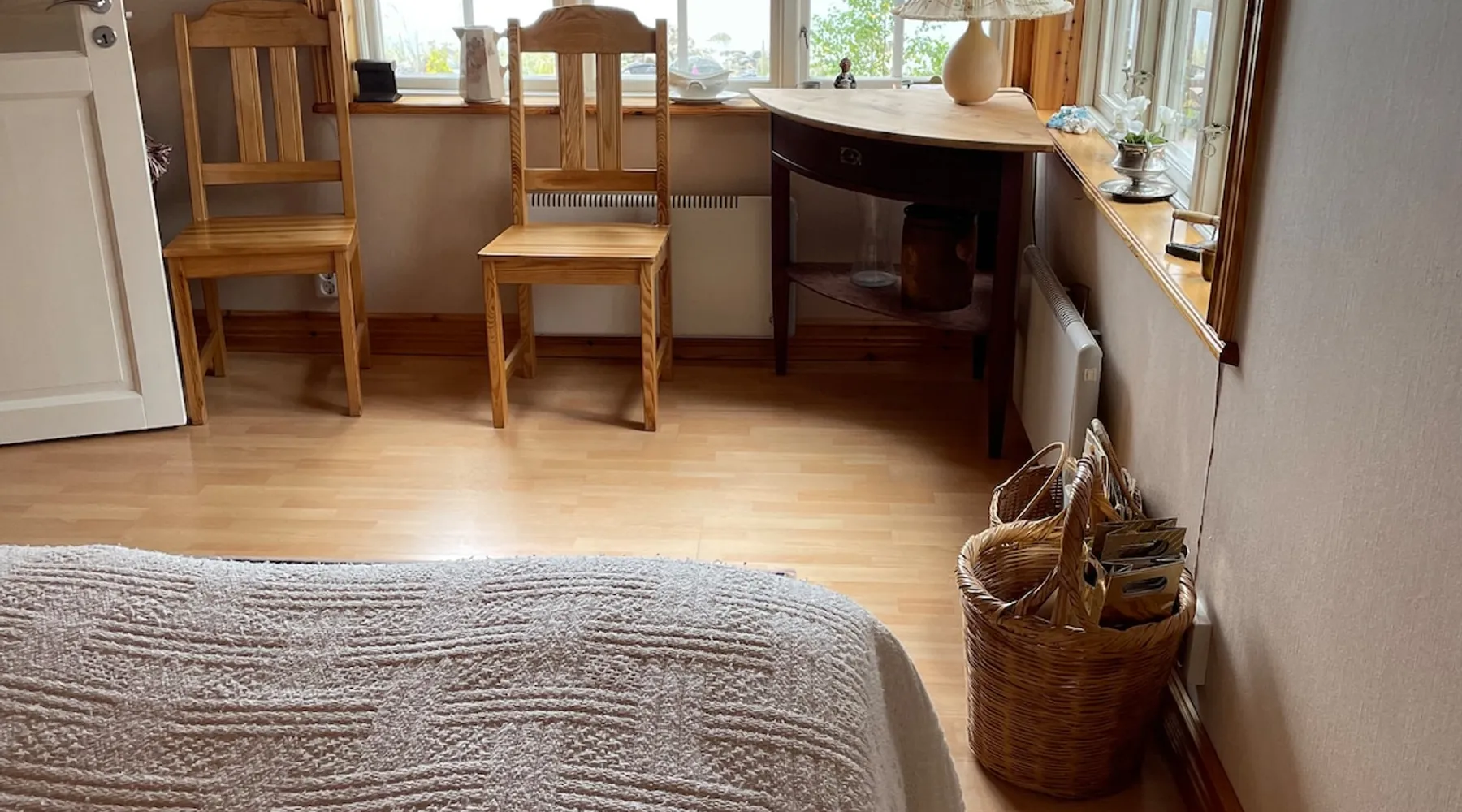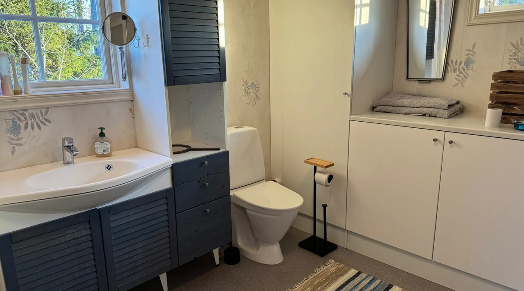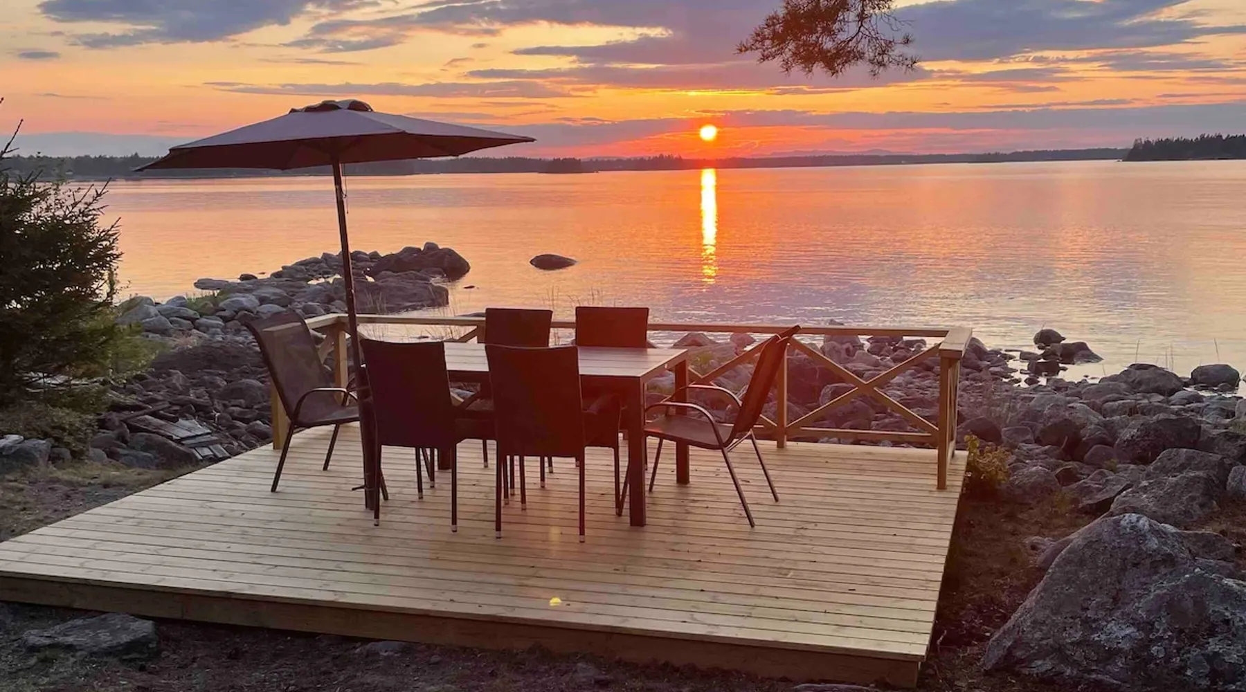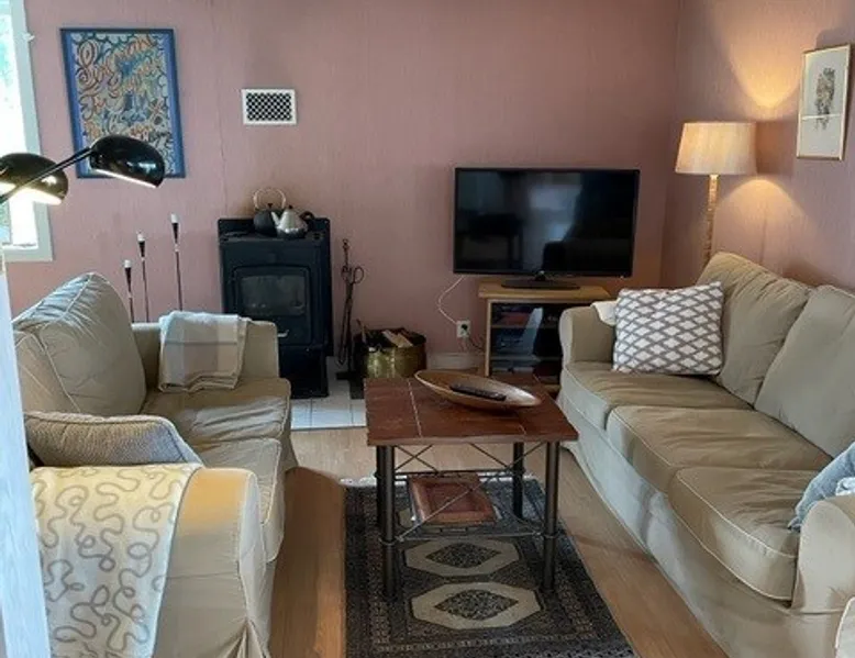Relax in this unique and tranquil home right by the sea. The cottage has a villa standard with all amenities such as electricity, heating, water, shower and toilet as well as washing machine. The kitchen is fully equipped with dishwasher, microwave, convection oven and stove with induction stove etc. Enjoy the view, sunset and maybe some northern lights. Take a forest walk and cozy up in front of the fire. There is the possibility of a sauna and then a refreshing sea bath. Canoe, and 2 SUP boards are available to borrow. The space The house has four beds divided into two double rooms. An adult and child can also sleep on the sofas in the living room. During the warmer part of the year, it is also possible to sleep in a 120 cm wide bed in a private room in the small house where the sauna is also located. Other things to note The tenant cleans up after themselves before check-out. Cleaning instructions and equipment are available in the cottage.