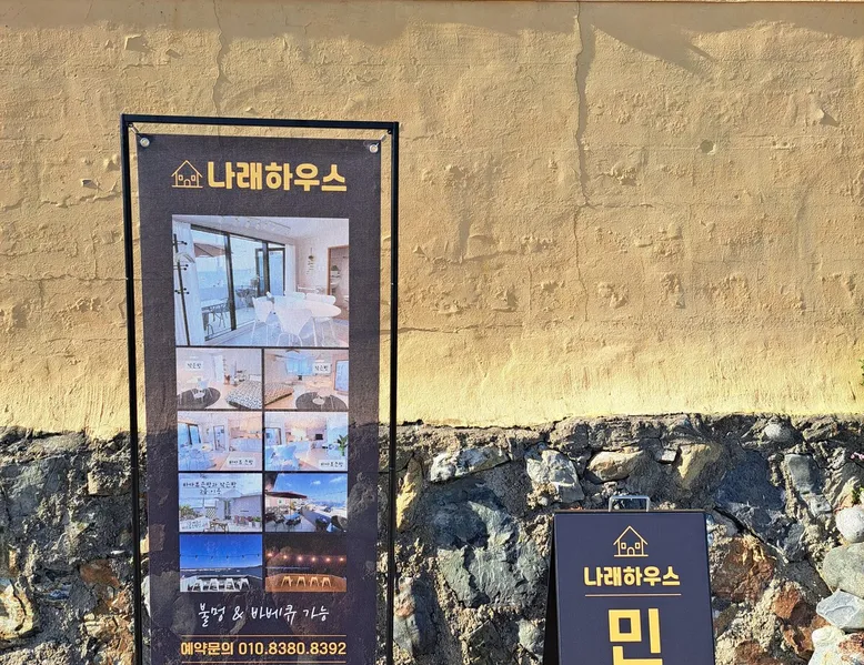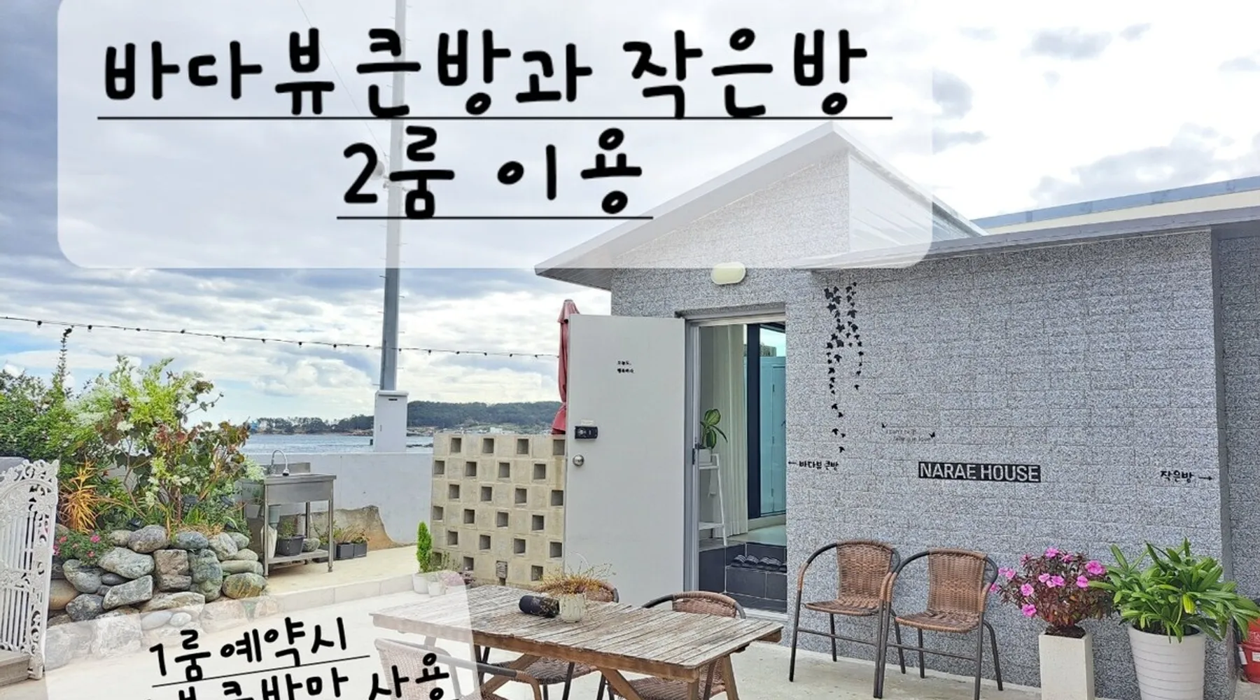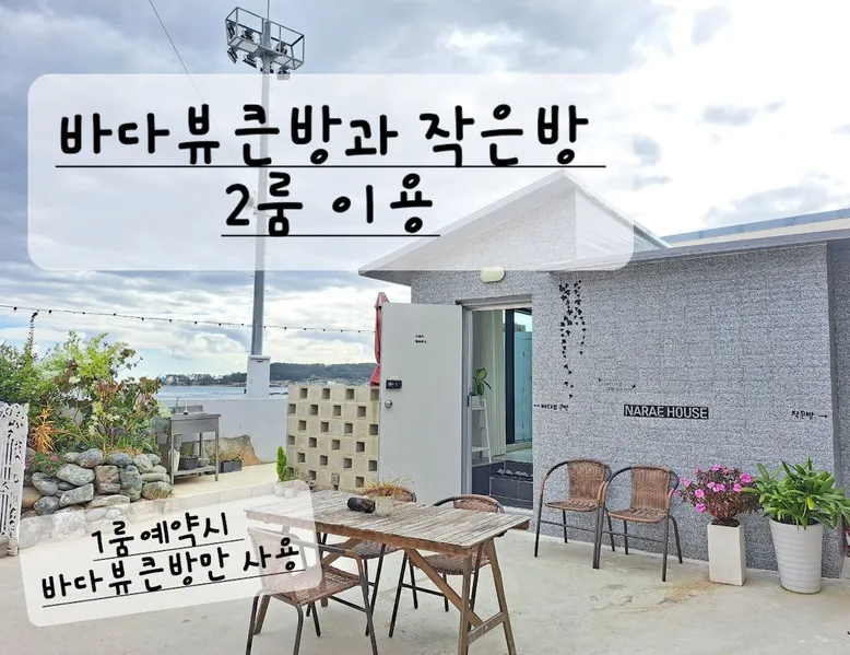 Narae House Free ☆ Netflix (50 inch) ☆ When booking, use the large room with sea view and the small room ☆ Each room has a separate entrance, queen bed, sink, toilet, table, and air conditioner, and is connected by a middle door. This is a☆ 2-room studio space for 4 people, and additional reservations are available for up to 6 people.(2 queen size alzimats available) ☆ 1 room available for 2 people 120,000 won on weekdays, 150,000 won on Fridays Public holiday Saturday discount X You don't use the entire☆ house. Only the left building is a guesthouse, and the gate and yard are are shared and the entrance door is separated. Admission: after 15: 00 PM Check-out: before 11: 00 AM * When using consecutive nights We provide plenty of towels Cleaning is not provided (barbecue service) * Up to 2 dogs under 10kg can be accompanied (2 stool pads, shampoo, towel, dog bowl provided) * There is a large parking space right in front of the property, which is convenient. The space 1 person additional: 20,000 KRW Barbecue extra: 30,000 KRW Addition of fire pit: 20,000 KRW Infants under 24 months: Free For consecutive stays: Barbecue service 1 pet: 20,000 KRW (Only dogs under 10kg, up to 2 dogs allowed) (20,000 KRW per animal.) It is a quiet fishing village where you can fully enjoy the sea view. In the big room with an ocean view You can enjoy a barbecue with a panoramic sea view and a terrace, and you can enjoy the sunrise and sunset while lying in bed. The small room is a cozy place. Fishing is also possible in the sea in front of the property. (Fishing gear available near the property) Guest access * Sink We have prepared pots, pans, bowls, trays, wine glasses, soju glasses and seasonings, paper towels, disposable rinse, pong pong, disposable sponge, pack, tea, cotton swab, toothpick, etc. * Toilet Towel, shampoo, conditioner, body shower, shower towel, soap, toothpaste, tissue paper * dressing table Disposable toothbrush, 1 disposable razor, canoe coffee, mask, cosmetics Medicines, Coffee Boats, Café Syrup * TV cabinet Rice cooker, blanket, electric, fire, card * Other A water purifier, Bluetooth 2, a mobile phone charger, a comb, a humidifier, and 2 dryers are prepared in the small room. Other things to note Precautions before entering the room There is ● also a table on the rooftop. You can use it until 11pm. There is a risk of falling Please be aware (be careful with the last stairs) Water purifier available in● small room (hot water, cold water) Be sure to wipe down the transparent pad on the ● table before the main weapon. Leave stains that are not wiped Please close the ● front door by pressing it until it makes a sound. (When the door doesn't close properly, Take away the batteries and put them back in) The terrace, etc●., can be operated in the boiler room. When you sleep, please turn off the lights including the yard. ● Seasoning is down the right side of the sink ● The rice cooker has a TV cabinet. When you don●'t use the big room shot door, Be sure to raise the handle up to close it (lockable) If you have a lot of ● food waste, it's on the terrace Use the red barrel ● Non-smoking in the property. Do not throw away cigarette butts If you use hot water ● at the same time, cold water It comes out. (shower + shower, dishwashing + shower) When taking a ● shower, the large bed wall Boiler actuator indoors - > hot water The door lock inside the ● entrance door is broken when it rains. Please keep the entrance door closed at all times in case of rain. ● No singing with wireless microphones. Damage or damage to ● blankets, wallpaper, floorboards, fixtures, etc. If there is, we will charge you for damages. There are complaints about excessive noise until late in the ● morning, so if it continues after the second warning, we will inevitably be forced to leave. Precautions when checking out After ● washing dishes, bowls, pots, cups, spoons and chopsticks, etc. Do not put it back in the sink (check for broken bowls, etc.) ● When checking out, the boiler is' Going out ' Garbage, such as bottles and boxes, is at the bottom of the rooftop stairs. Please separate the garbage. Please gather ● used towels in one place Please ● move the moved items such as egg mat into place. Please turn off all ● air conditioners and accommodations, etc. ● Please check again to make sure you don't leave any belongings behind. Registration Details Region of Issuance: 부산광역시, 기장군 License Type: 농어촌민박사업 License Number: 02기장20230013