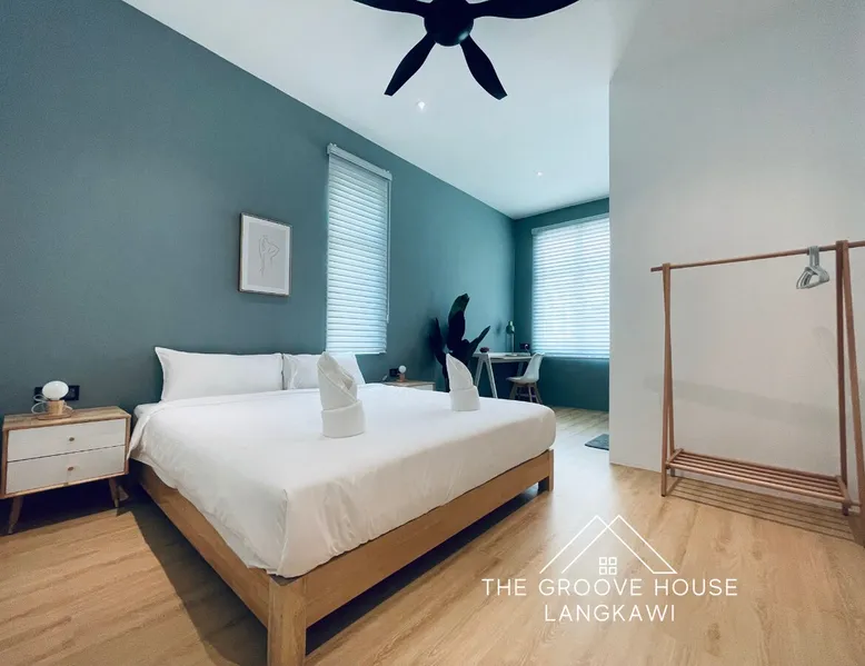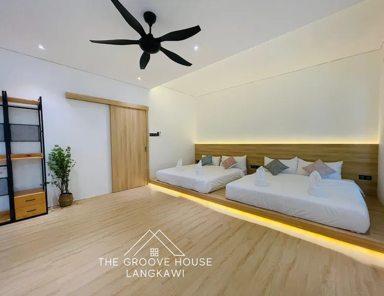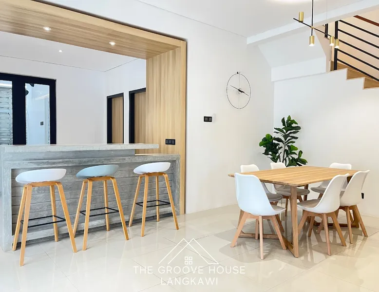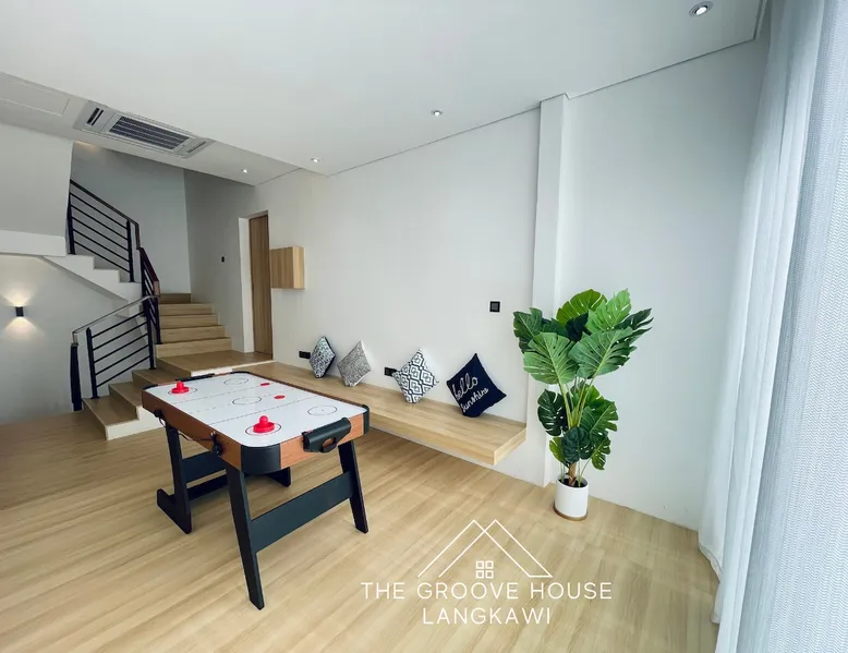 Welcome to THE GROOVE HOUSE—your ultimate luxury home away from home! Once you step inside, you might find it hard to leave. Designed with contemporary minimalism in mind, this exclusive 2.5-storey corner house redefines the homestay experience, offering unmatched comfort and style. Conveniently located in the heart of Kuah town, the house boasts premium furniture and fittings, luxurious hotel-grade mattresses, most importantly, a stress-free private pool for your enjoyment. The space The Groove House is perfect for groups of up to 16 guests, offering a luxurious and exclusive homestay experience. The default price is for 14 guests, additional charges apply beyond 14 guest. Please include the total number of guests when booking, and we will prepare extra beds for additional guests. Bedroom Arrangement: • 🌟 Bedroom 1 (Ground Floor): 1 King bed with private bathroom • 🌟 Bedroom 2 (1st Floor): 2 King beds with private bathroom • 🌟 Bedroom 3 (1st Floor): 1 King bed with private bathroom • 🌟 Bedroom 4 (1st Floor): 1 King bed with private bathroom • 🌟 Bedroom 5 (2nd Floor): 2 King beds (no private bathroom, partitioned with curtains, no door) ✨ All bedrooms are equipped with air-conditioning. ✨ Additional guest fee (beyond 14): RM100/guest/night. Amenities: • 🌟 65” Smart TV • 🌟 Wi-Fi • 🌟 Arcade Games • 🌟 Mahjong • 🌟 Karaoke System • 🌟 Coway Water Dispenser (Hot & Cold) • 🌟 Washing Machine (Free to use) • 🌟 Fully equipped kitchen: • 🌟 Stove, pots & pans, utensils • 🌟 Microwave, refrigerator, kettle • 🌟 BBQ Grill: Includes 1 pack of charcoal, fire starter, and basic BBQ tools • 🌟 Towels, shampoo & body gel provided (‼️Please bring your own toothbrush & toothpaste) • 🌟 Hair Dryer Convenient Location (By Driving): • 🚗 2–5 mins to nearby convenience stores & supermarkets • 🚗 12 mins to Kuah Duty-Free Shops • 🚗 15 mins to Ferry Terminal & Eagle Square • ✈️ 20 mins to Langkawi International Airport • 🚗 28 mins to Cenang Beach • 🚗 40 mins to Cable Car & Sky Bridge Parking: • The parking area can accommodate up to 2 mini-vans. Mode of Transport: • Traveling by car is required for convenience. Other things to note House Rules & Policies • ❗️ Guest Limit: Please do not exceed the number of guests stated in your booking. • ❗️ Security Deposit: A deposit of RM1000 (cash/equivalent currency/bank transfer) will be collected upon arrival and refunded after check-out, provided there is no damage or missing items. • ❗️ Noise Policy: No loud music or noise after 10 PM, as we are located in a quiet residential area. Please respect our neighbors. • ❗️ No Smoking: Smoking is strictly prohibited inside the property. • ❗️ No Parties or Events: Parties and events are not allowed. • ❗️ Pool Usage: Please keep the pool clean. Any misuse may result in forfeiture of the security deposit. Extended Check-Out Time • 🌟 11 AM - 1 PM: Free (subject to availability) • 🌟 After 1 PM: RM100/hour (subject to availability) Additional Cleaning Services • 🌟 Half Cleaning: RM100/day (excludes changing bedsheets & towels) • 🌟 Full Cleaning: RM200/day (includes changing bedsheets & towels)