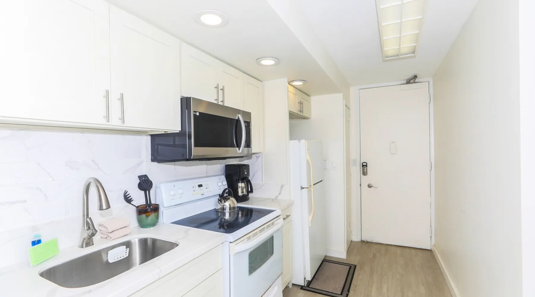 This cozy studio boasts new vinyl flooring and a fully renovated kitchen (completed in October 2022), offering a fresh, modern feel. The updated bathroom adds to the stylish and functional space. The well-equipped kitchen includes a refrigerator, stove, microwave, coffee maker, and all essentials for home-cooked meals. Registration Details 260100020098, 1091, TA-035-535-2576-01