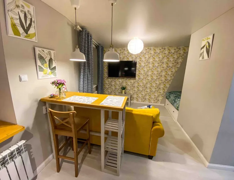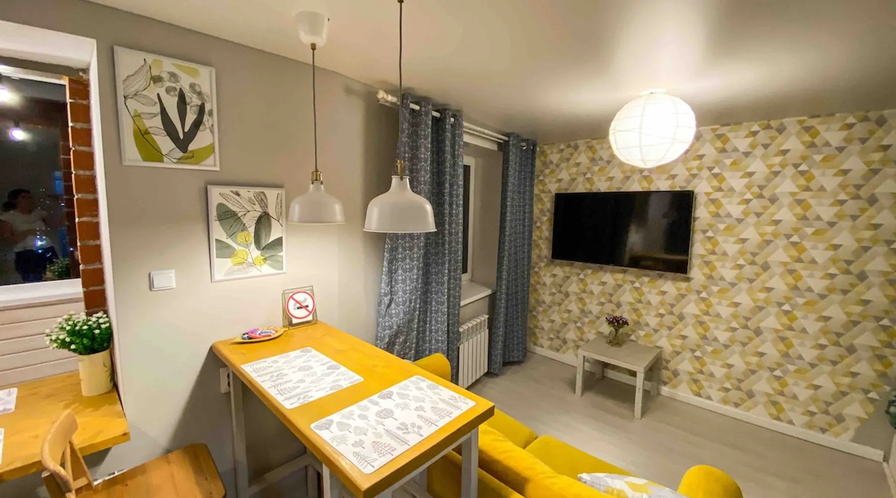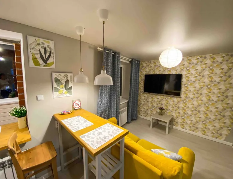 👌A great option for those who want to stay in the developed area of Vologda The space The apartment has a✅ double bed - 140 cm wide. Filled with clean fresh linen ✅Comfortable bright 💛 sofa (not foldable) ✅Clean bed linen + set of towels for each guest ✅Set of dishes, tableware, and cooking utensils per guest ✅TV LCD ✅CoEvented appliances (refrigerator ,induction stove, oven, microwave, microwave, iron, iron, iron, ironing board, hairdryer ) Cleanliness ✅guarantee - cleaning with disinfectants after each guest ✅The car can be parked near the house