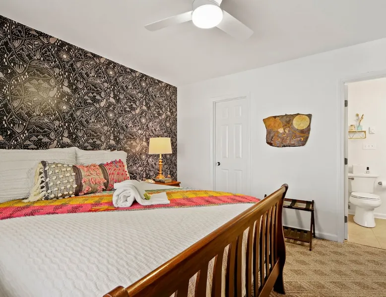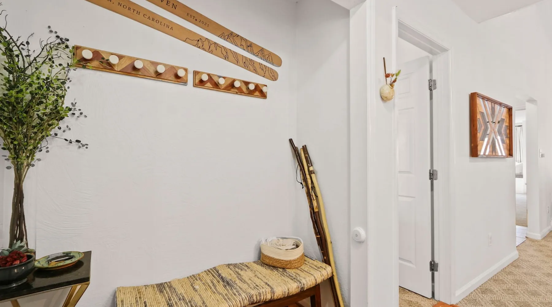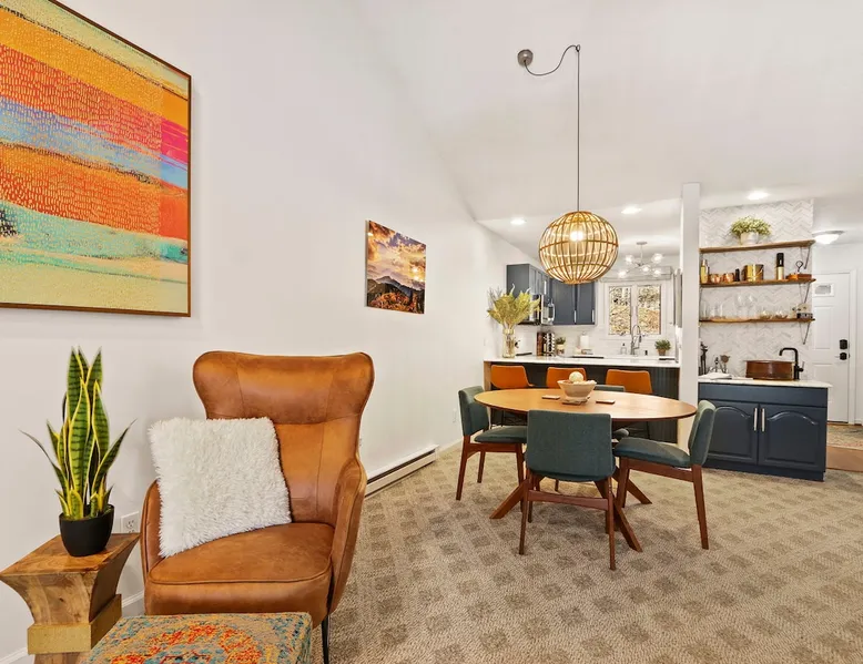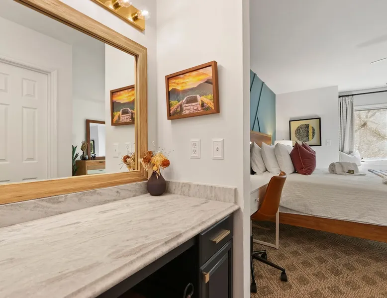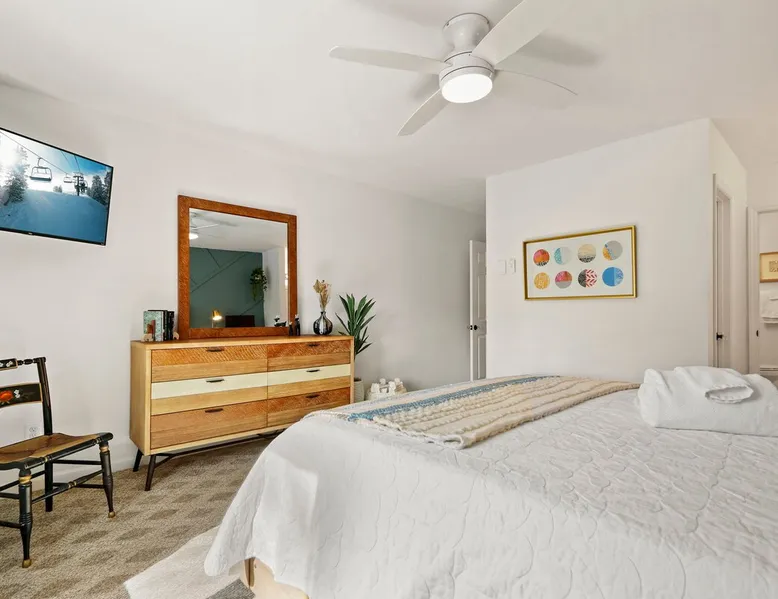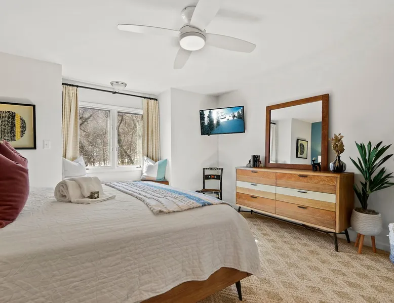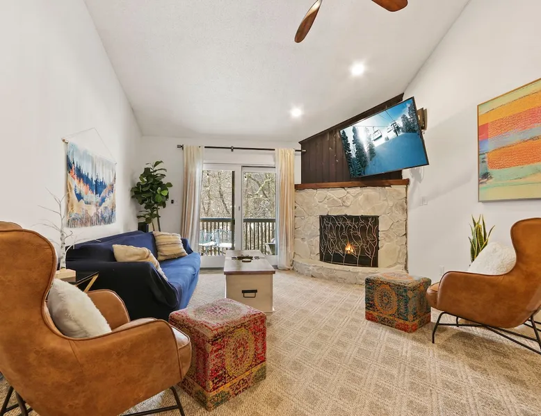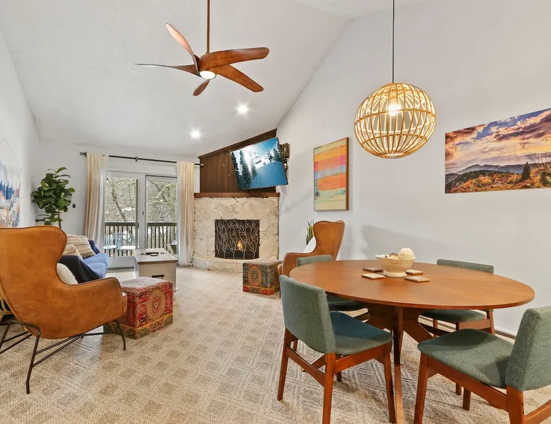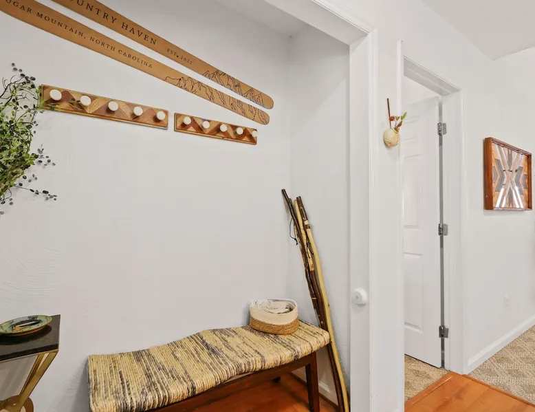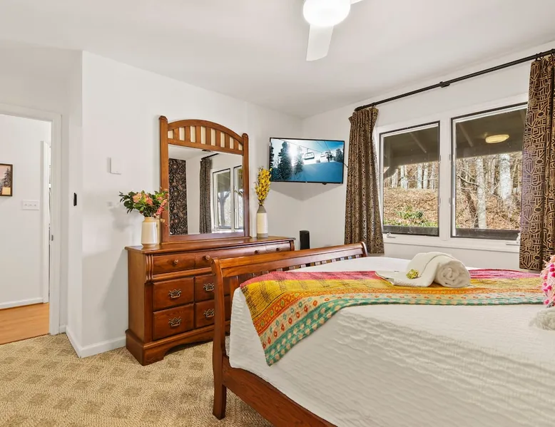 Welcome to High Country Haven, an upscale mountain retreat styled with unique modern boho and rustic glam decor. Located on a ski resort with slope views, it sits in a prime location in the middle of North Carolina High Country on Sugar Mountain. The space Enjoy the spacious top floor, vaulted ceiling unit to yourselves with contactless check in. Located in The Branches Community 🏔 Tons of amazing hiking trails nearby ⛷ Walking proximity to ski slopes + biking trails (you can watch friends and family go down the slopes from the back patio!) 💦 Soothing babbling brook that can be enjoyed nearly year round by opening the screened doors and windows 🛏 2 queen bedrooms 🛁 En-suite baths for both bedrooms 📺 Smart TVs in every room, including a 60” TV in the living room with cable and streaming services includes (Netflix, Disney+, HBO, Amazon Prime) 🍽 Enjoy preparing a meal in the gourmet kitchen & eating at the dining table for 4 with extra seating at kitchen bar Other things to note Free WiFi Full gourmet kitchen Gas fireplace 4WD/traction may be required during winter Private, stacked washer/dryer